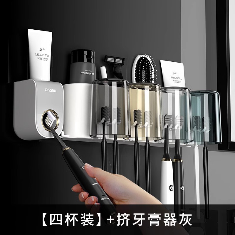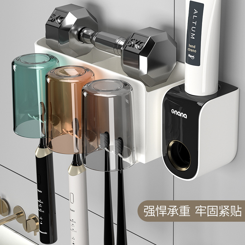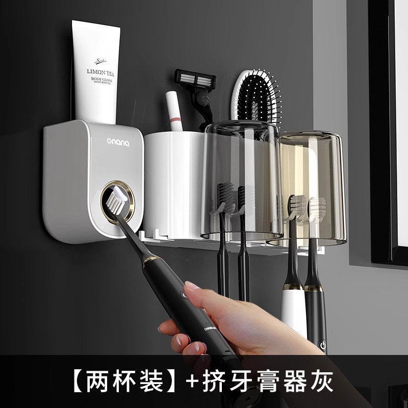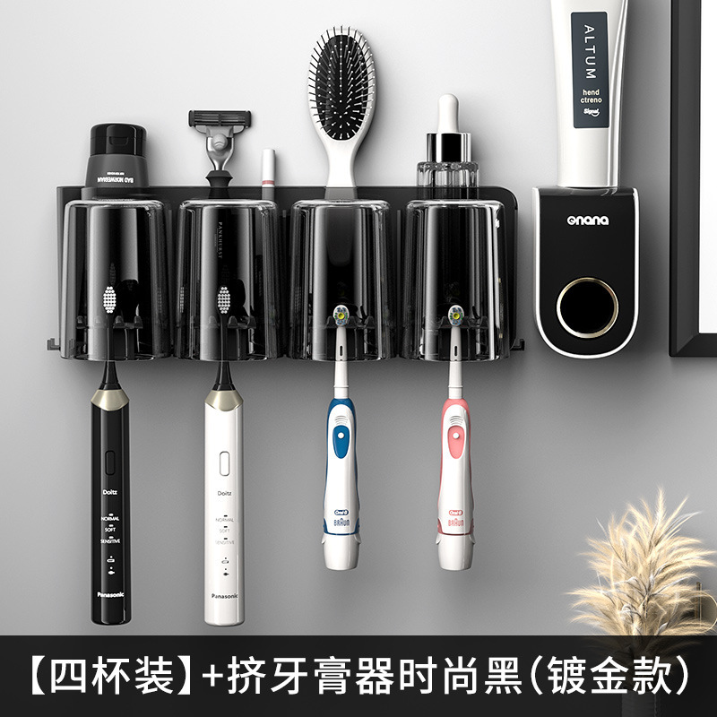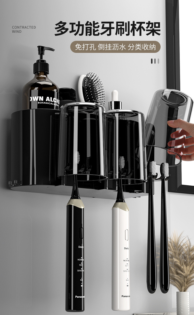 牙刷置物架卫生间一套免打孔漱口杯挂墙式收纳架刷牙杯牙膏架子