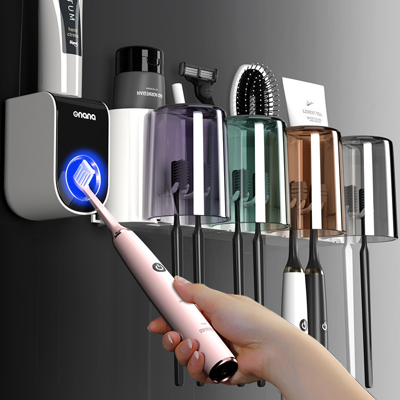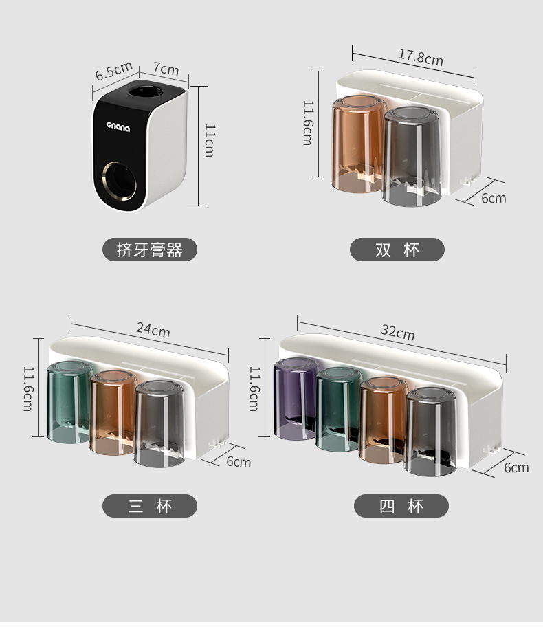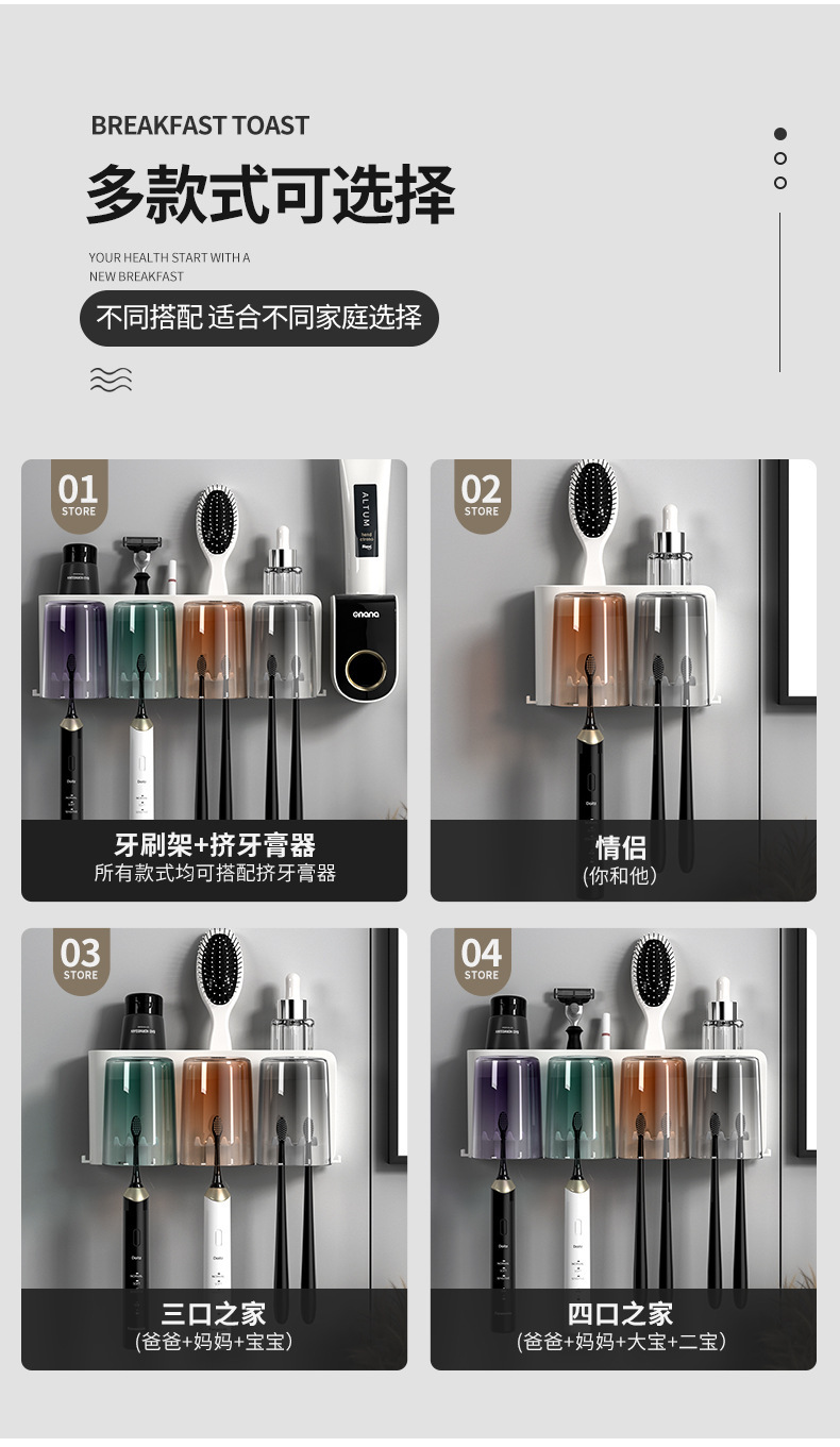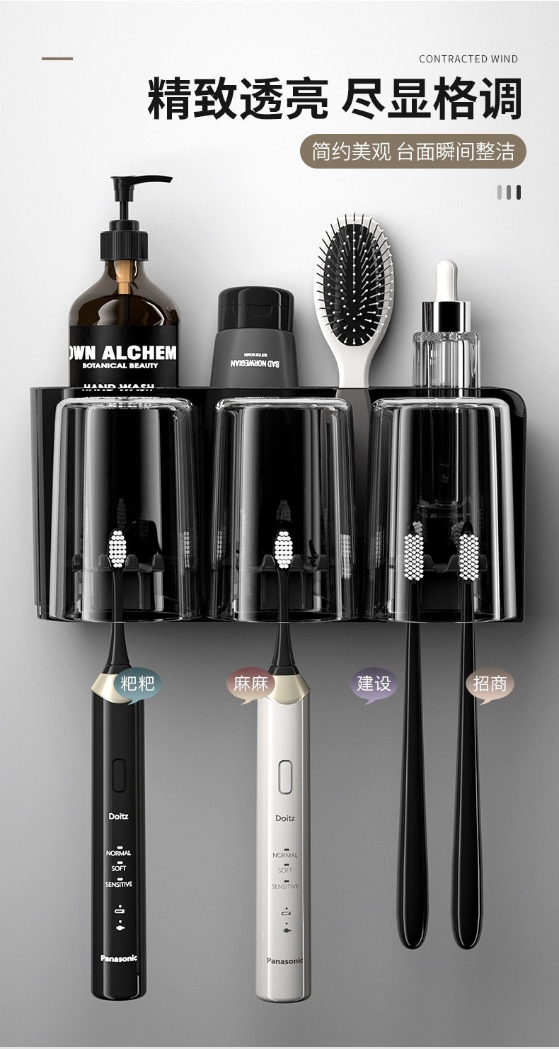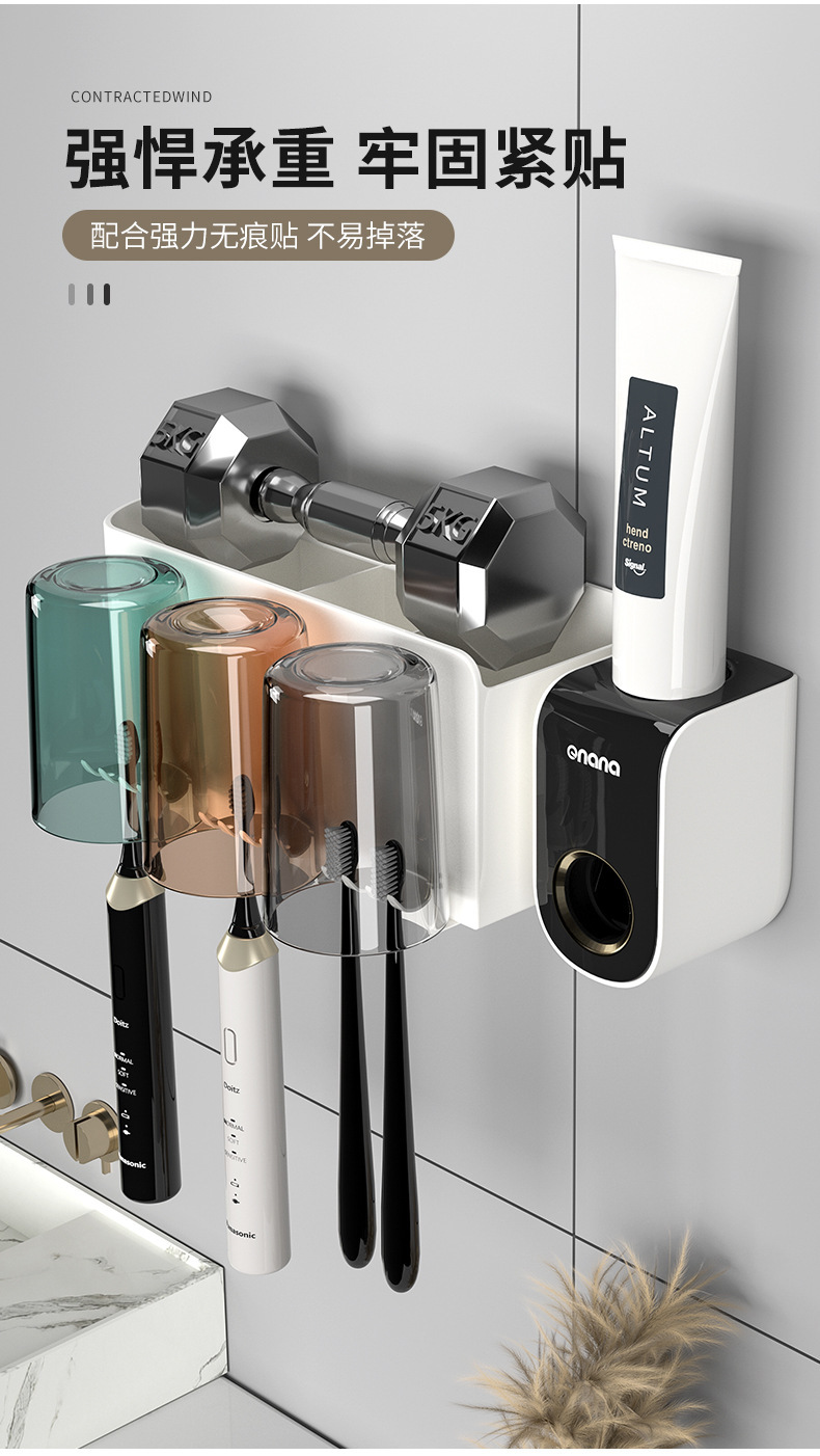 牙刷置物架卫生间一套免打孔漱口杯挂墙式收纳架刷牙杯牙膏架子