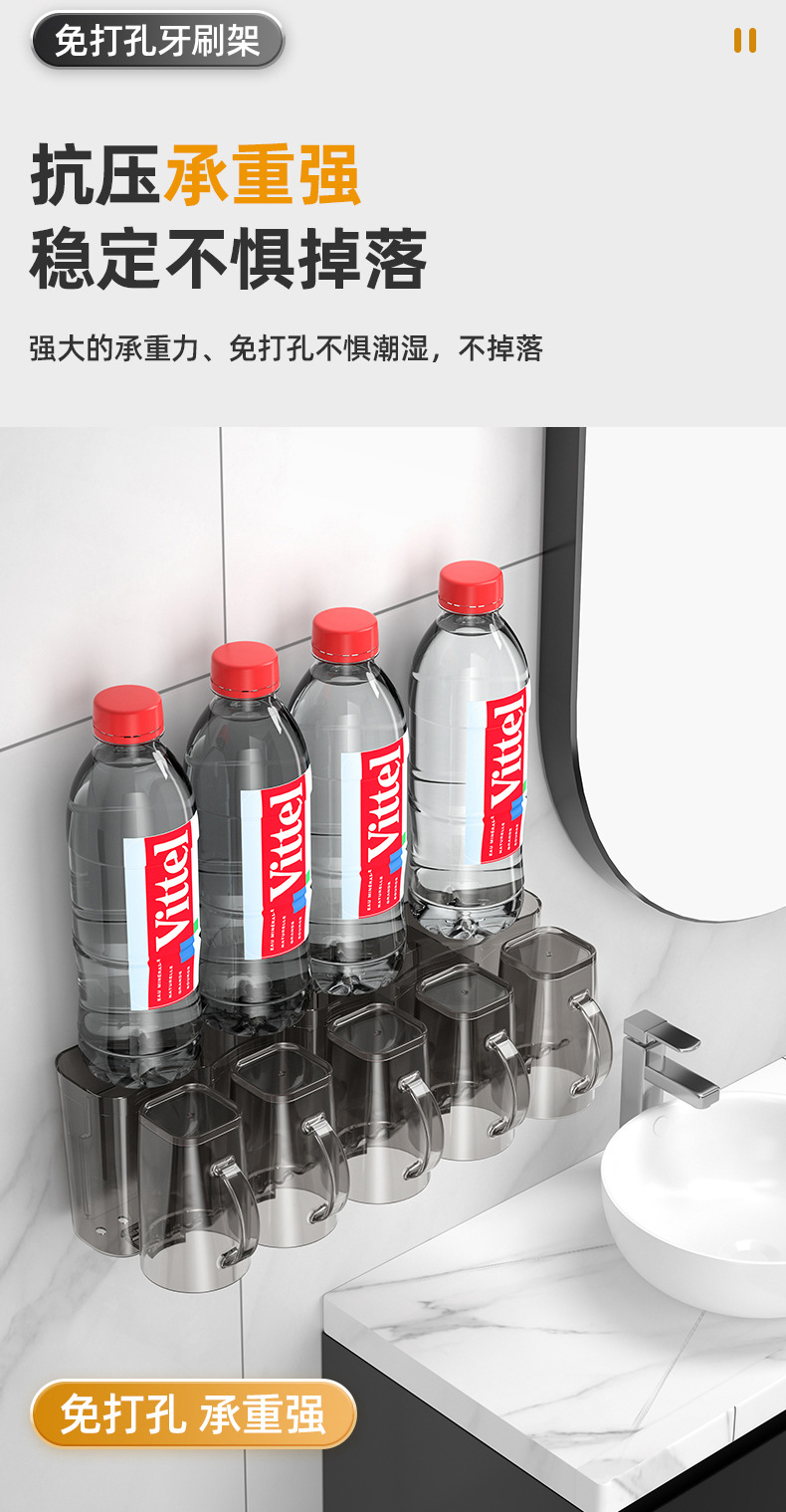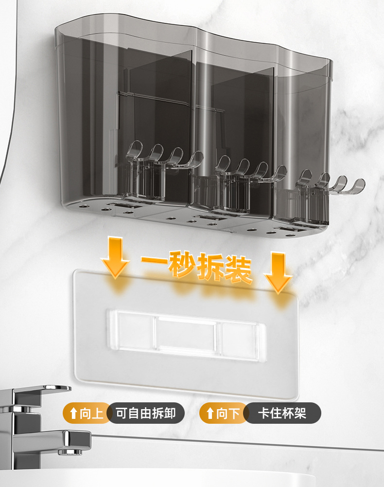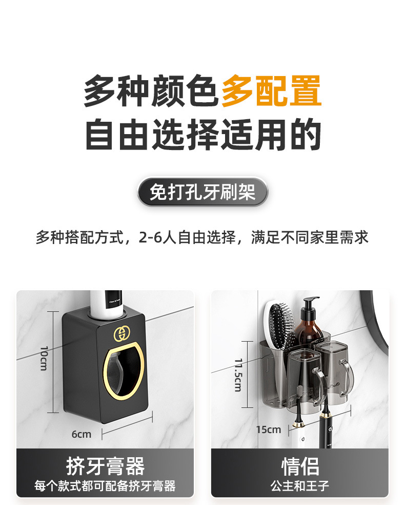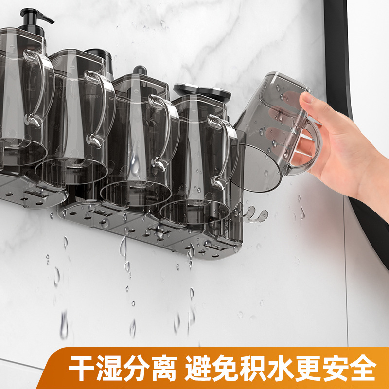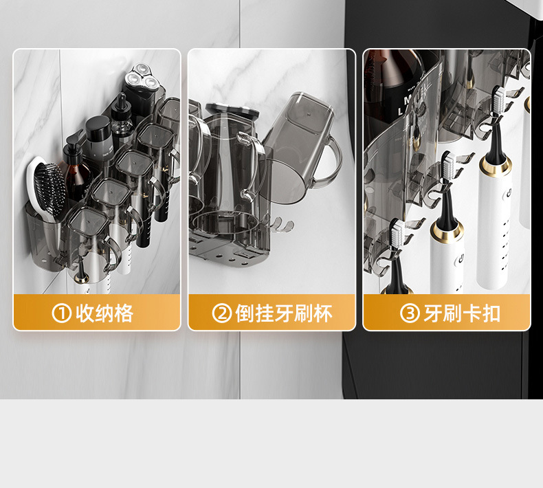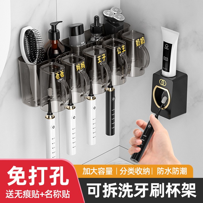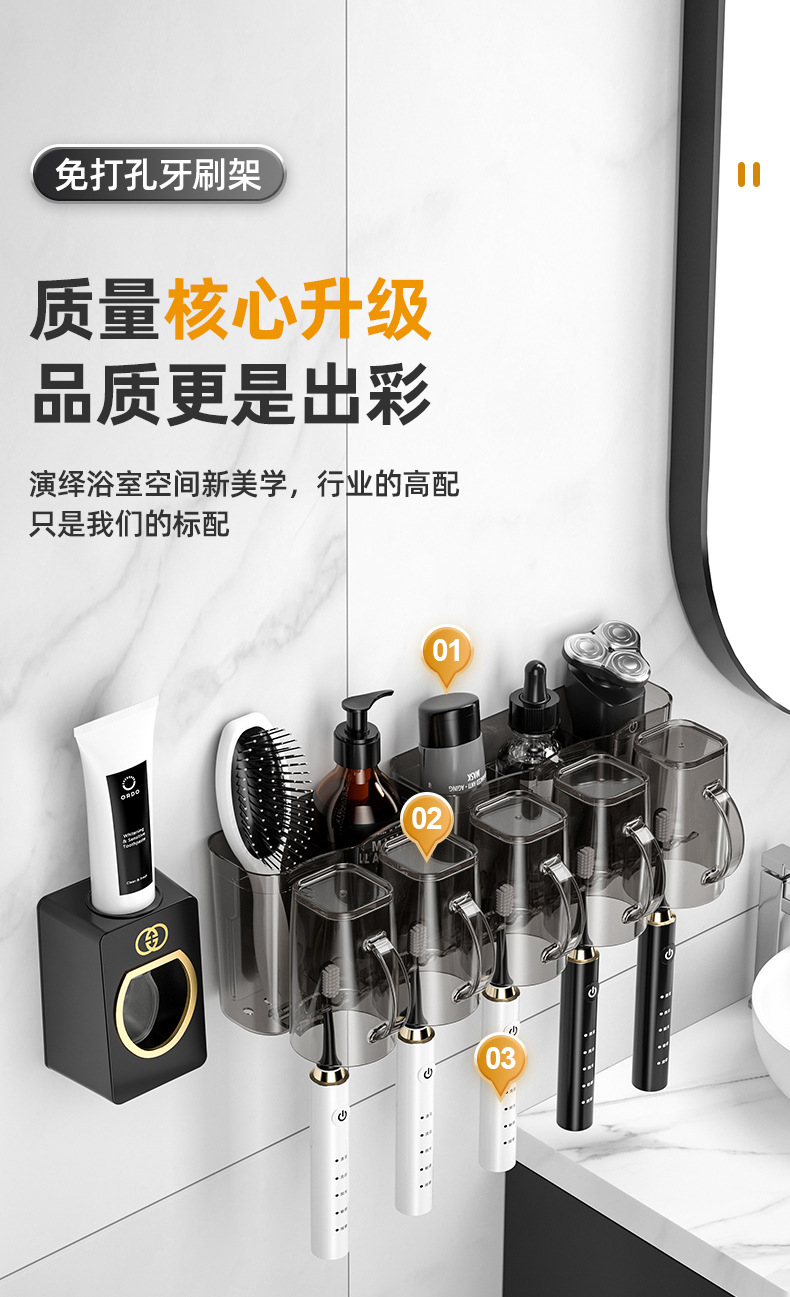 浴室免打孔牙刷架壁挂牙刷杯洗手间多功能置物架牙膏刷牙漱口杯架