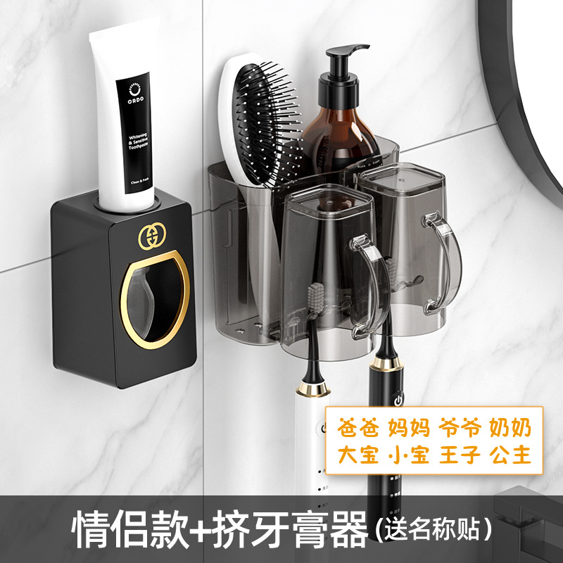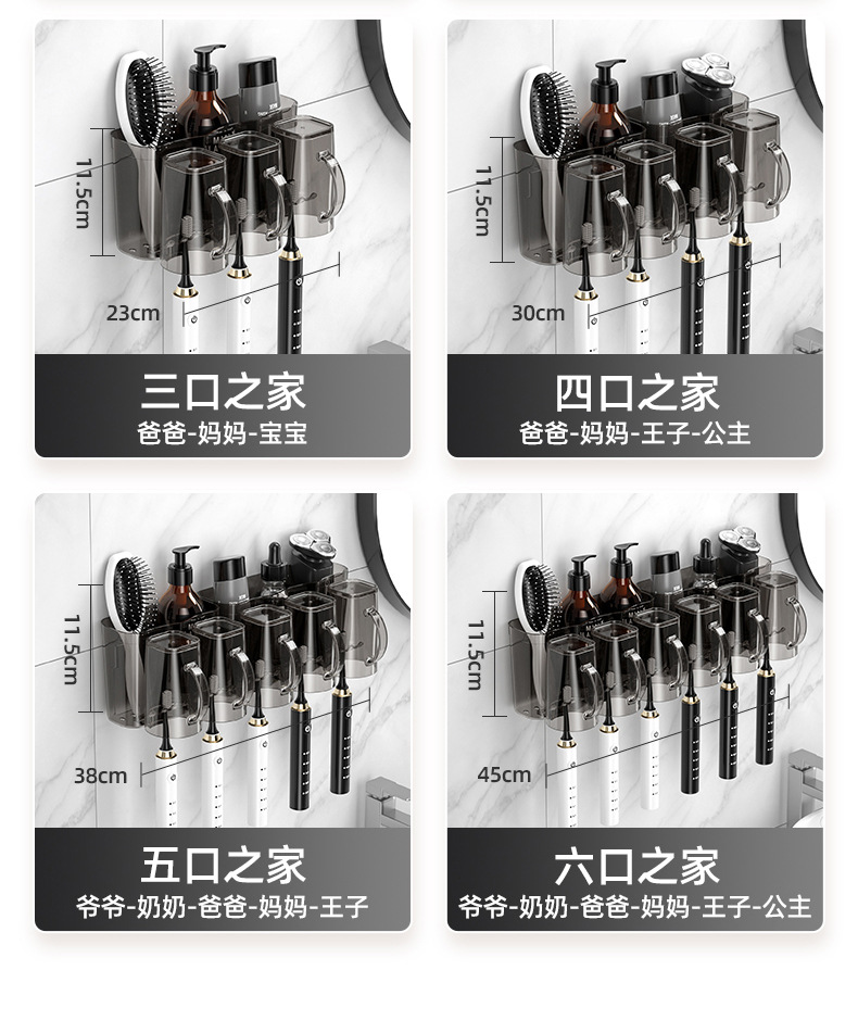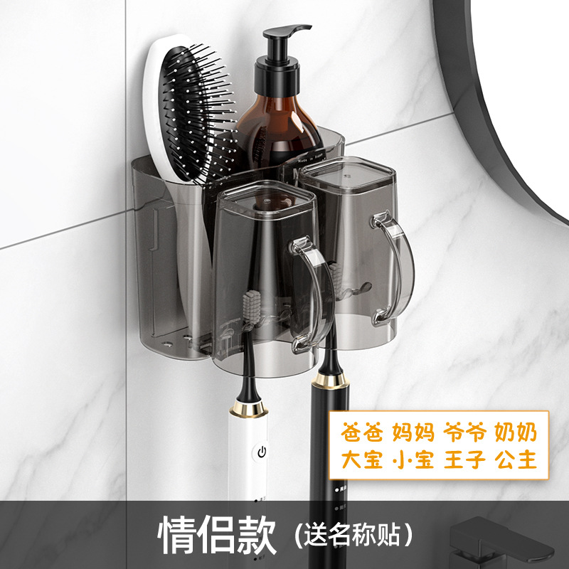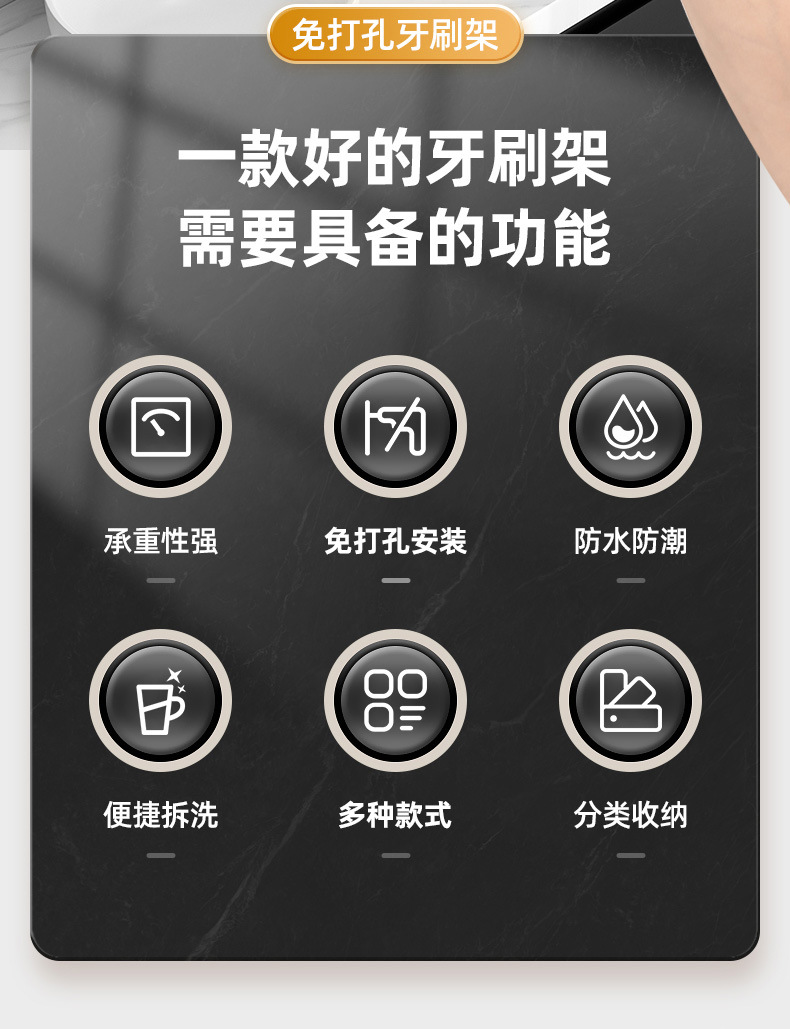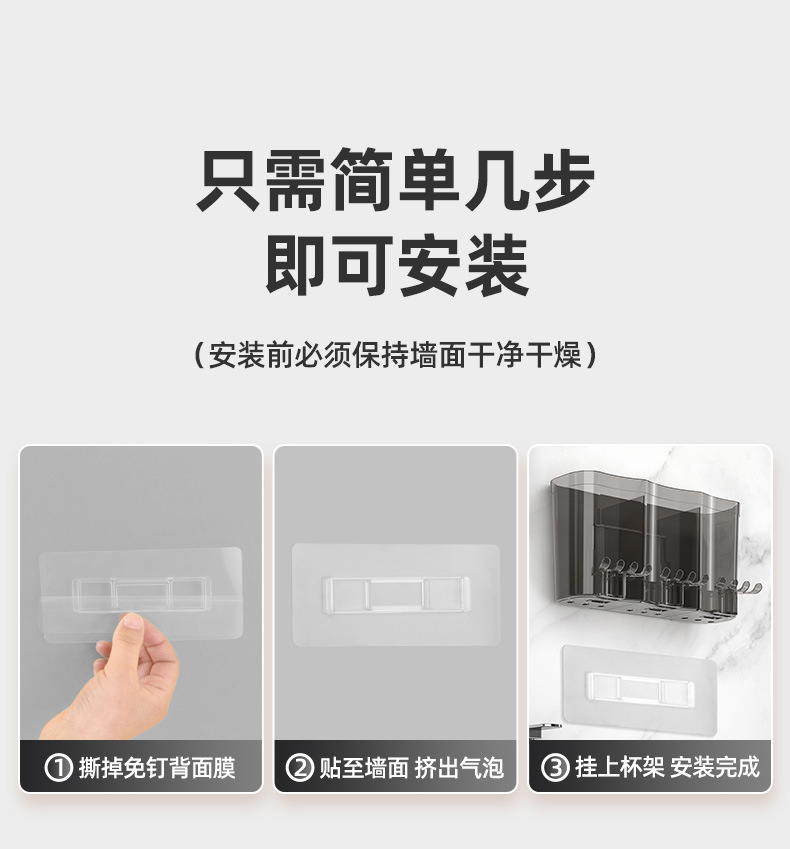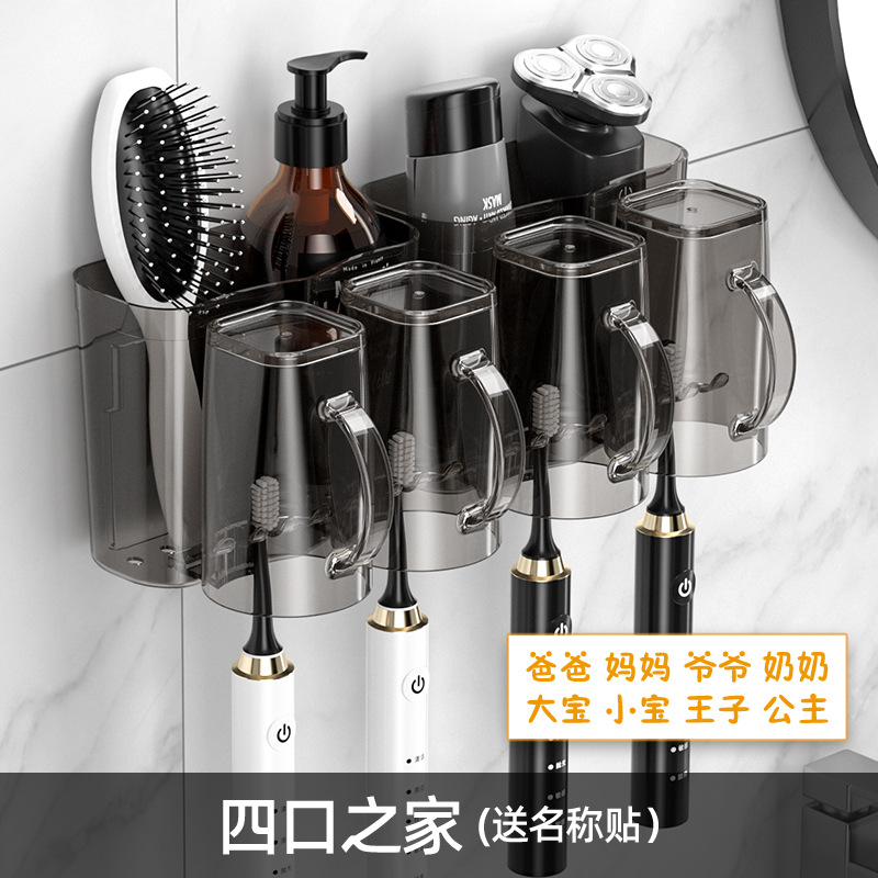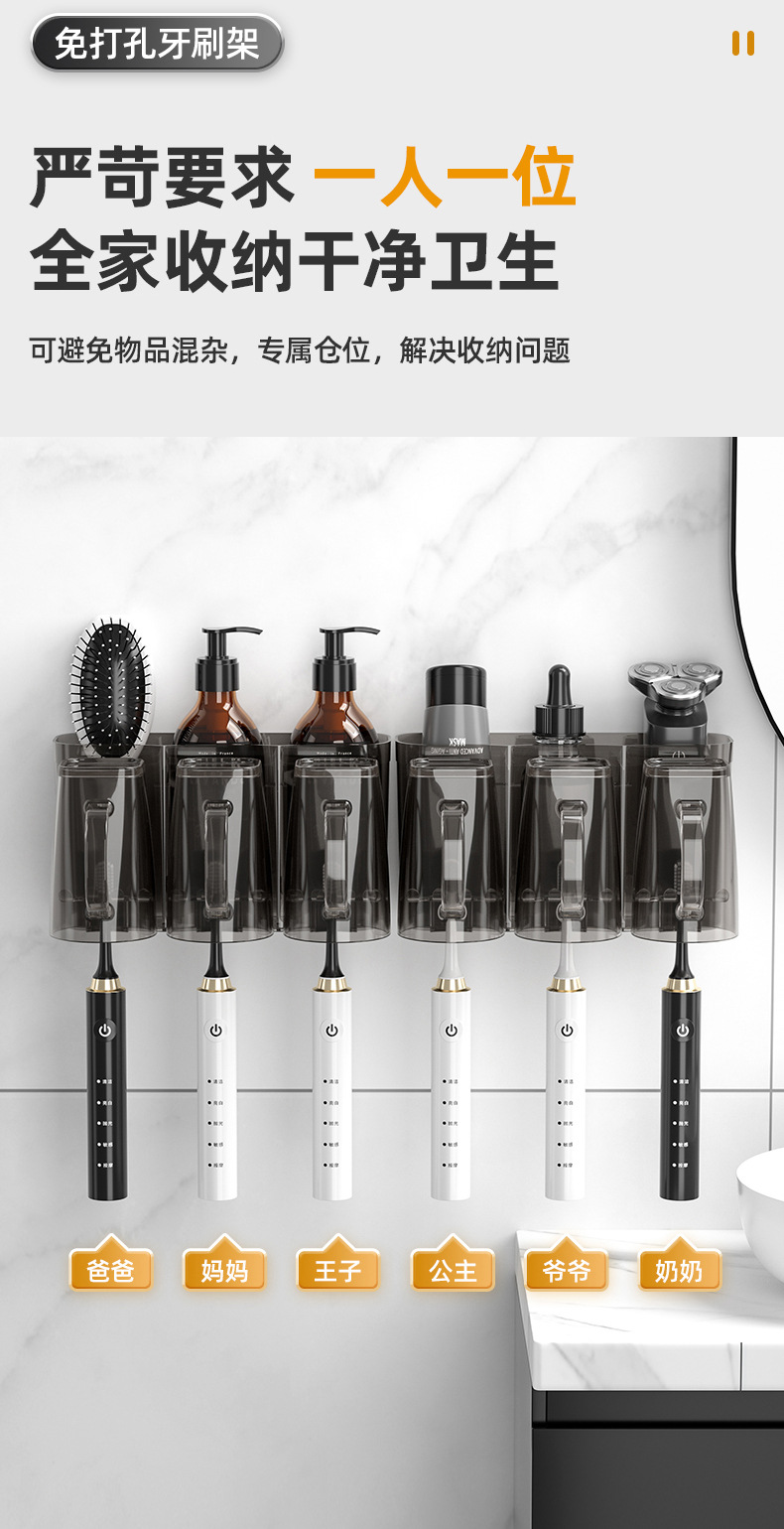浴室免打孔牙刷架壁挂牙刷杯洗手间多功能置物架牙膏刷牙漱口杯架