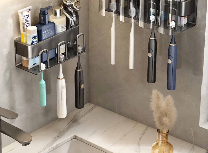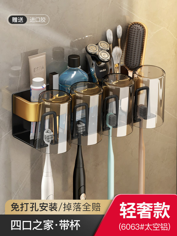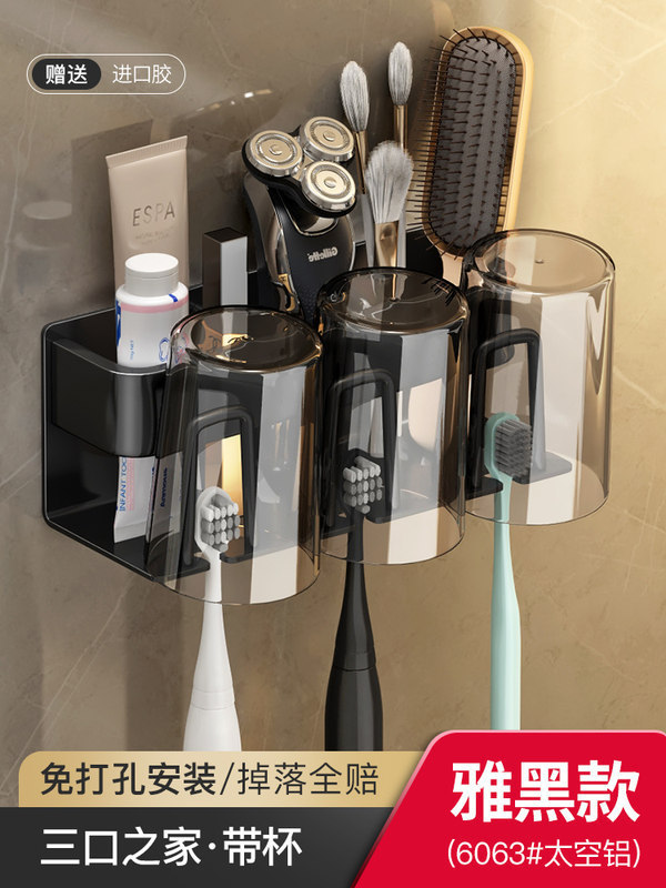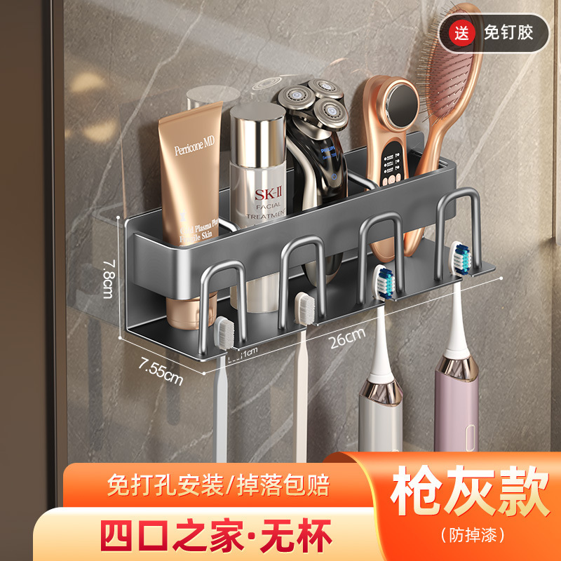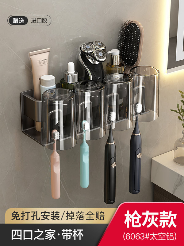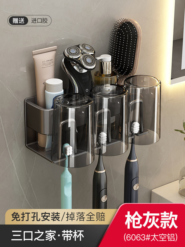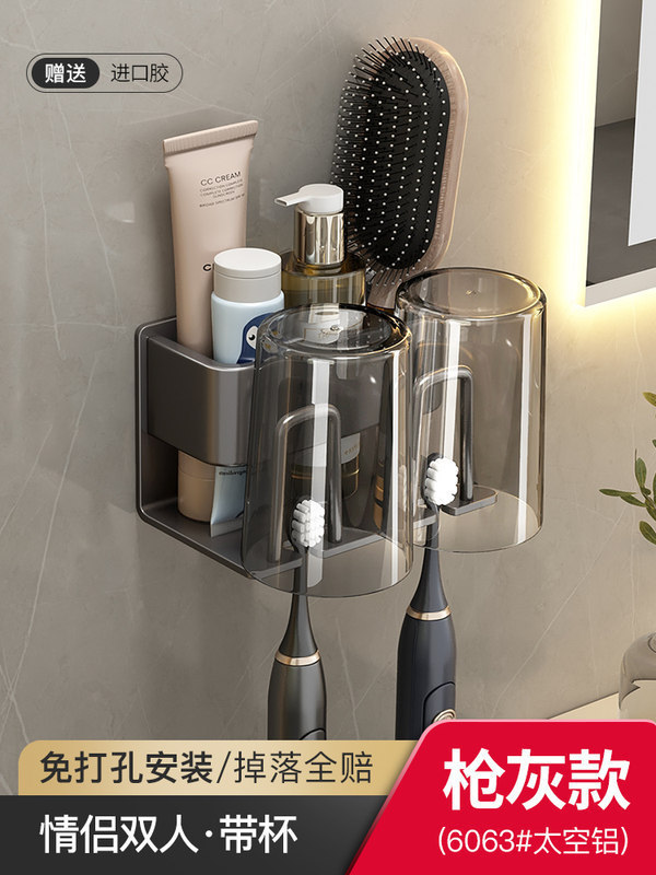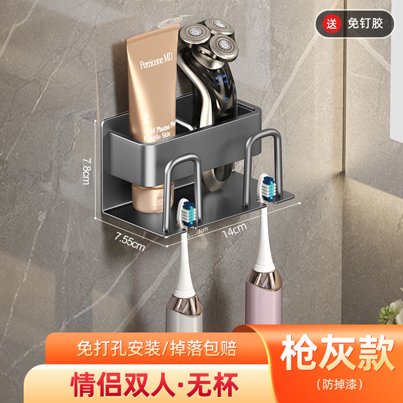 枪灰牙刷置物架卫生间免打孔漱口杯牙杯壁挂式收纳架电动牙刷架子