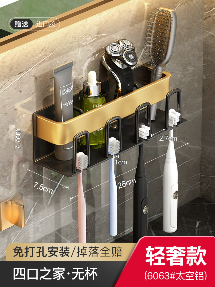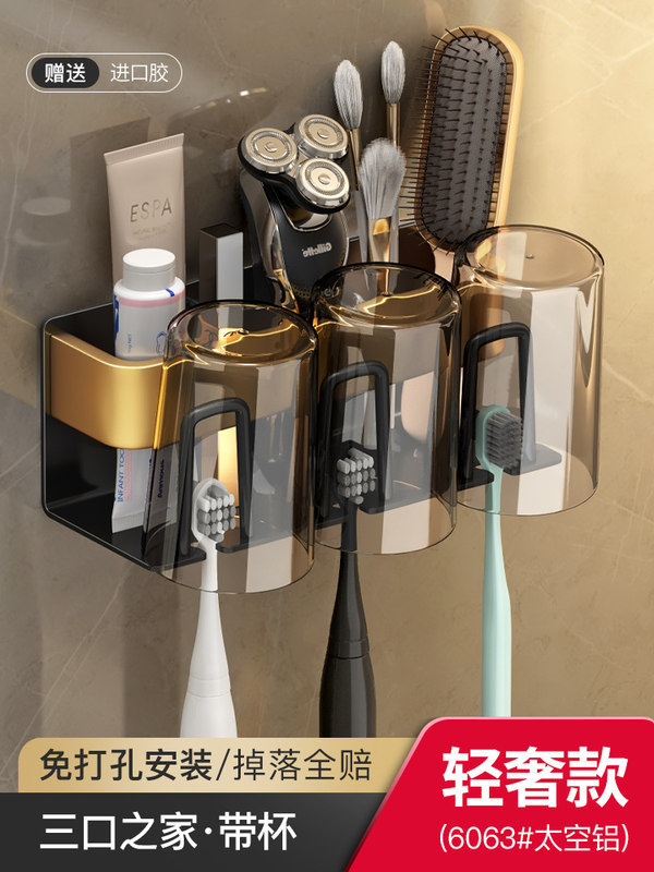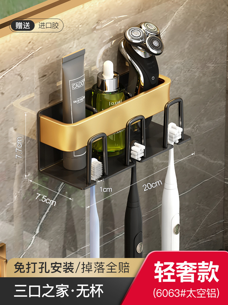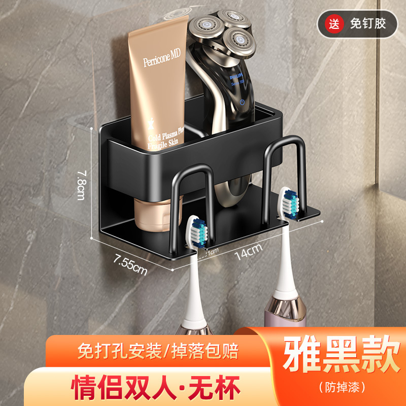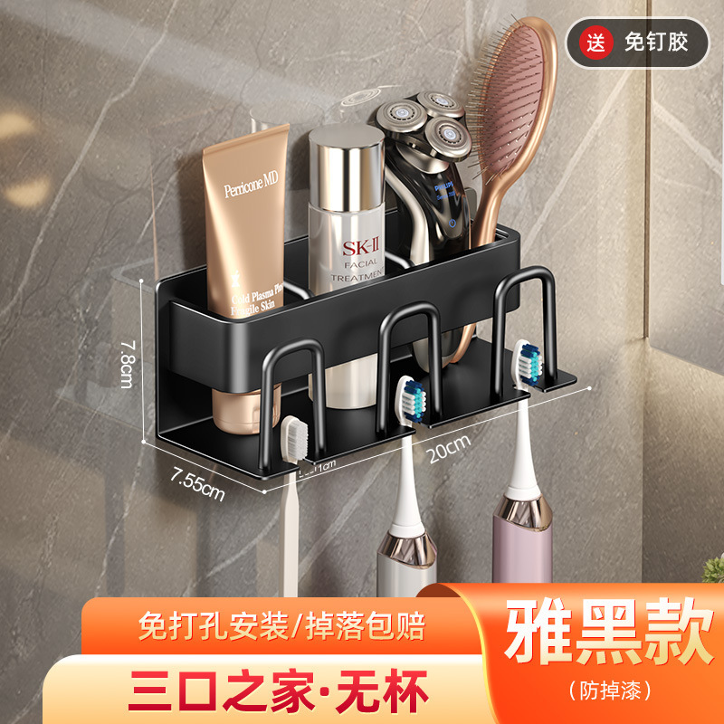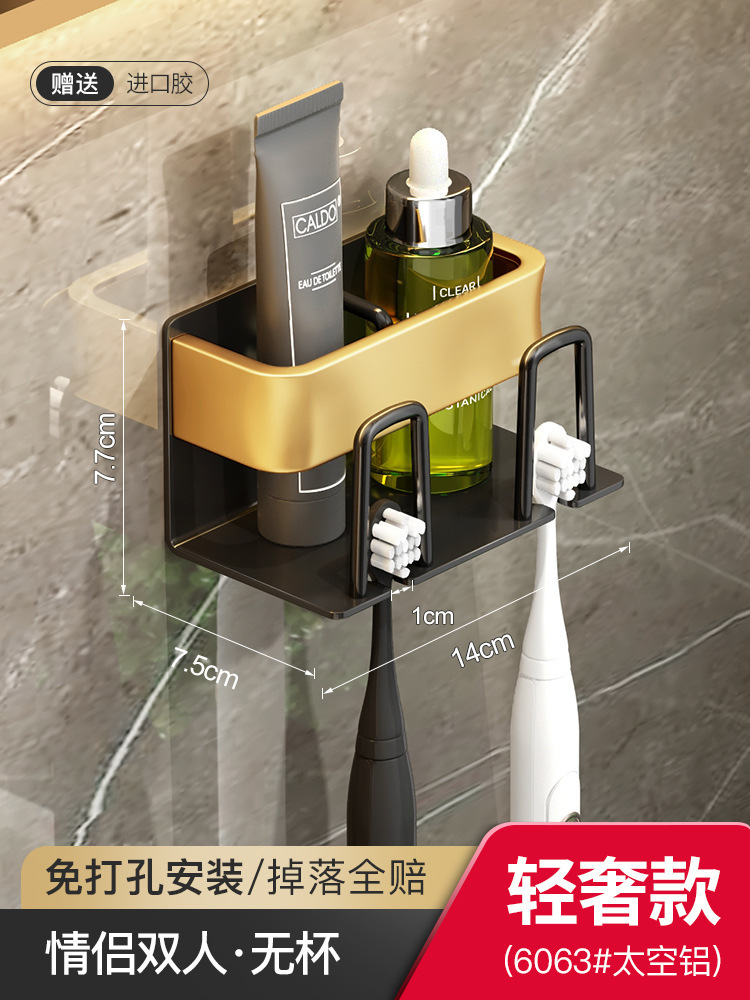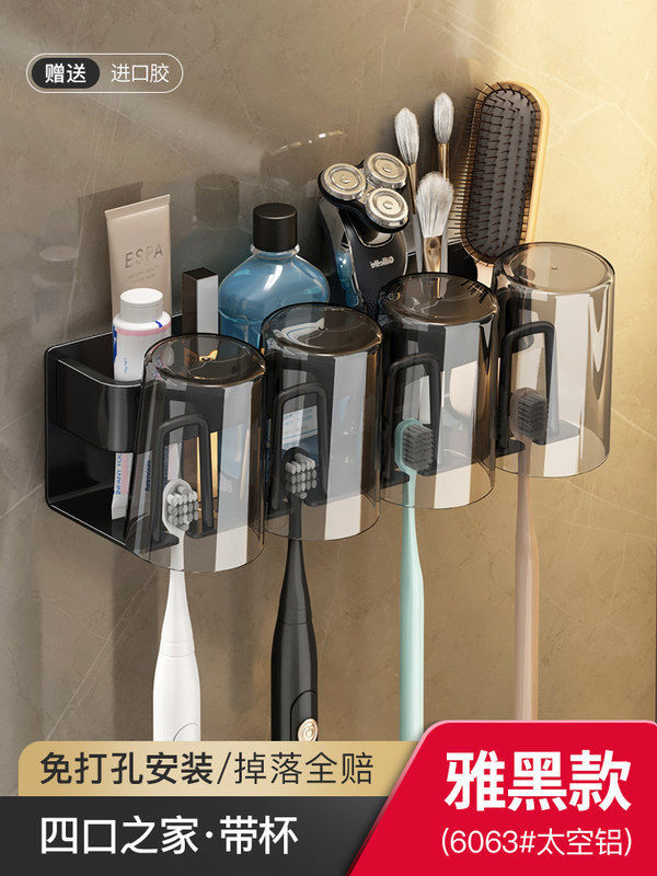 枪灰牙刷置物架卫生间免打孔漱口杯牙杯壁挂式收纳架电动牙刷架子