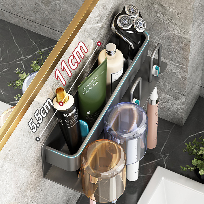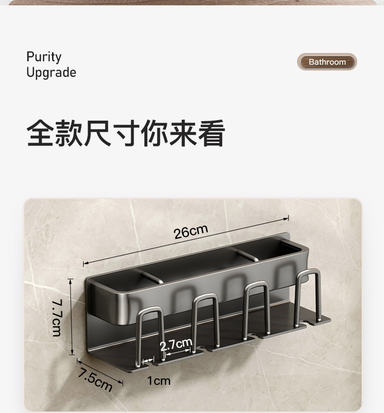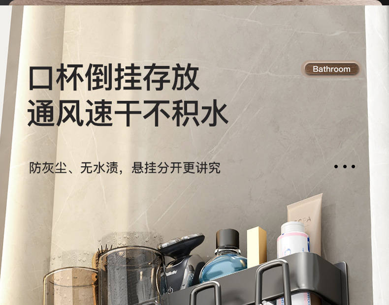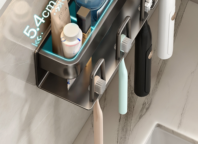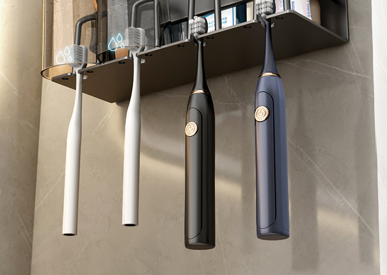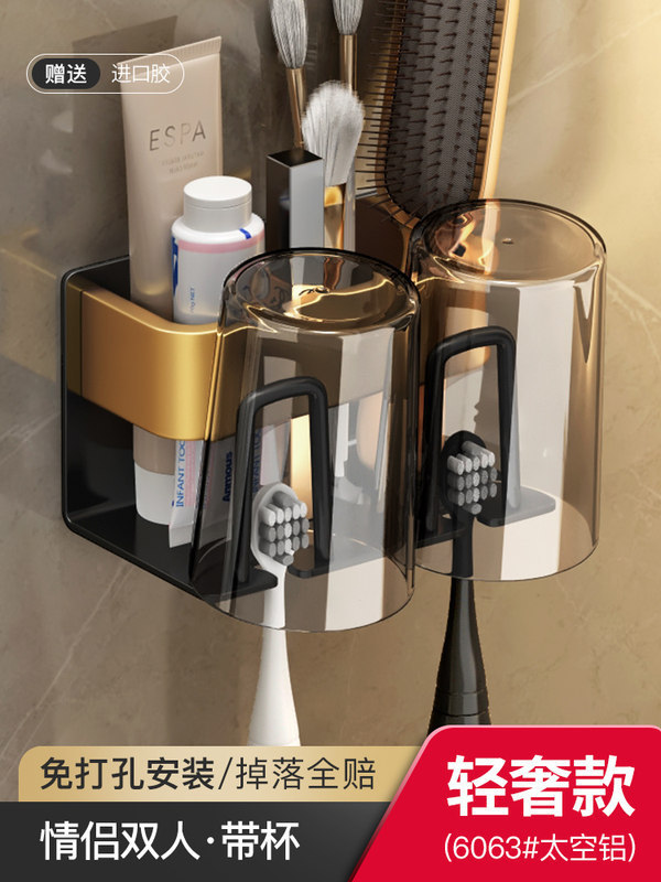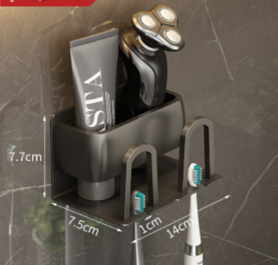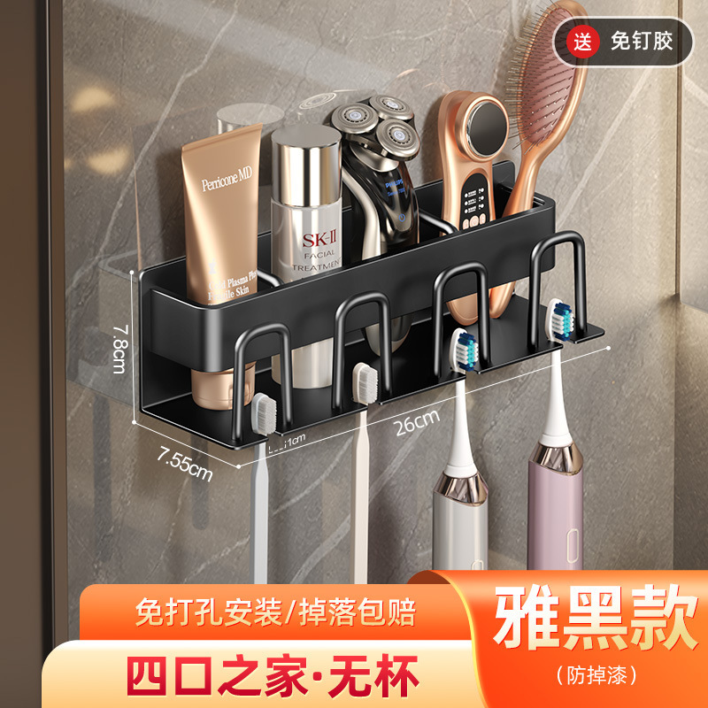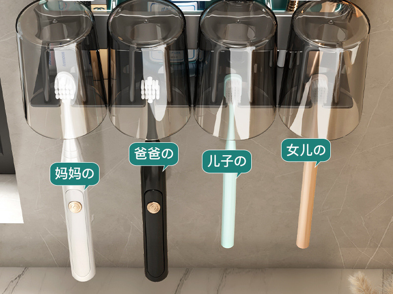 枪灰牙刷置物架卫生间免打孔漱口杯牙杯壁挂式收纳架电动牙刷架子