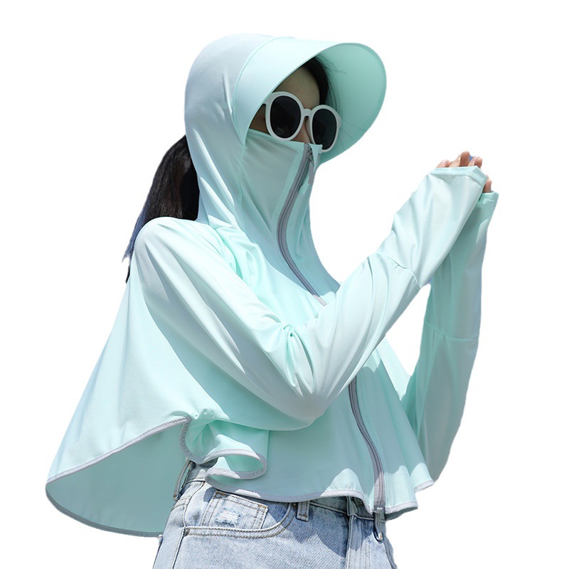2024新款夏防晒披风冰丝显瘦黑胶防嗮衣骑车防晒服厂防晒衣女