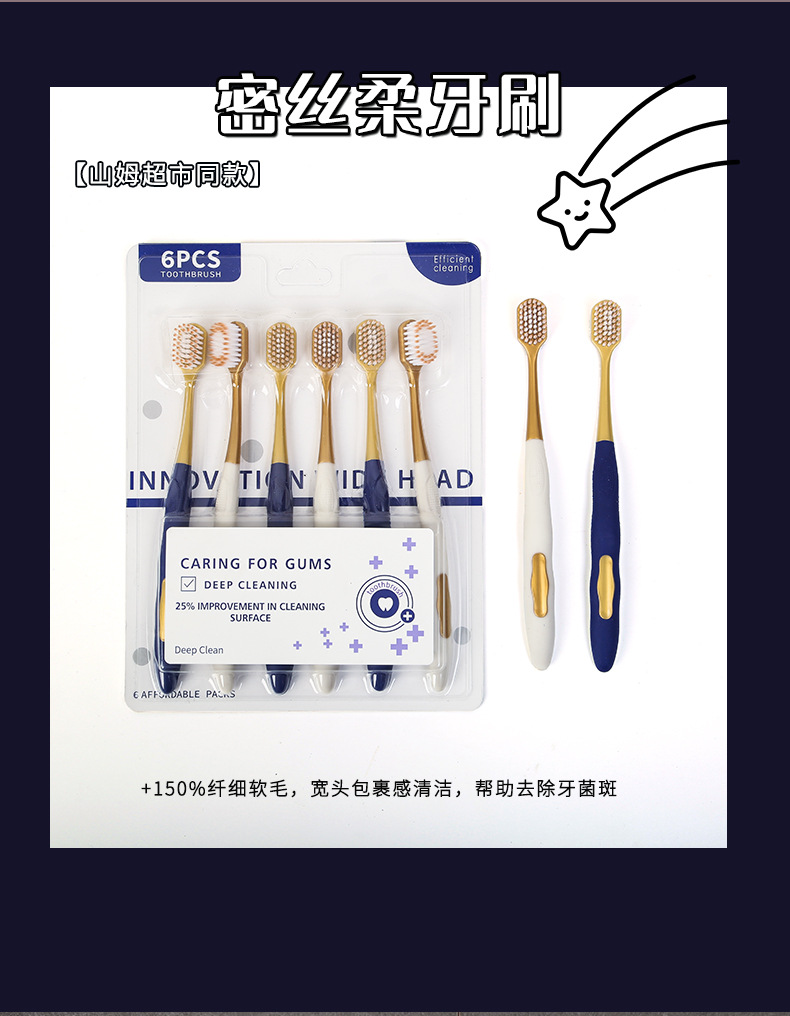 山姆牙刷密丝柔宽头牙刷6支牙刷工厂直销现货批发支持一件代发