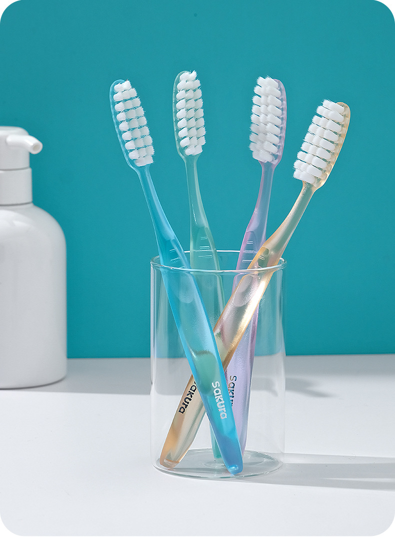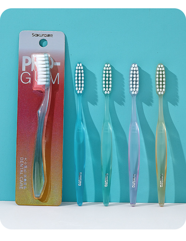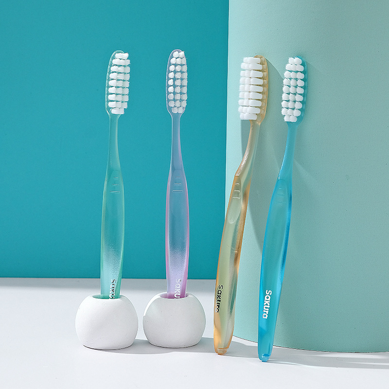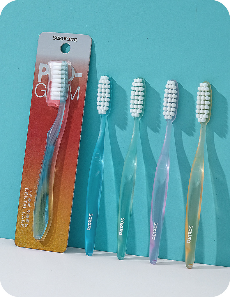 樱花长刷头情侣男士牙刷家用细毛情侣软毛牙刷高级单支装现货批发