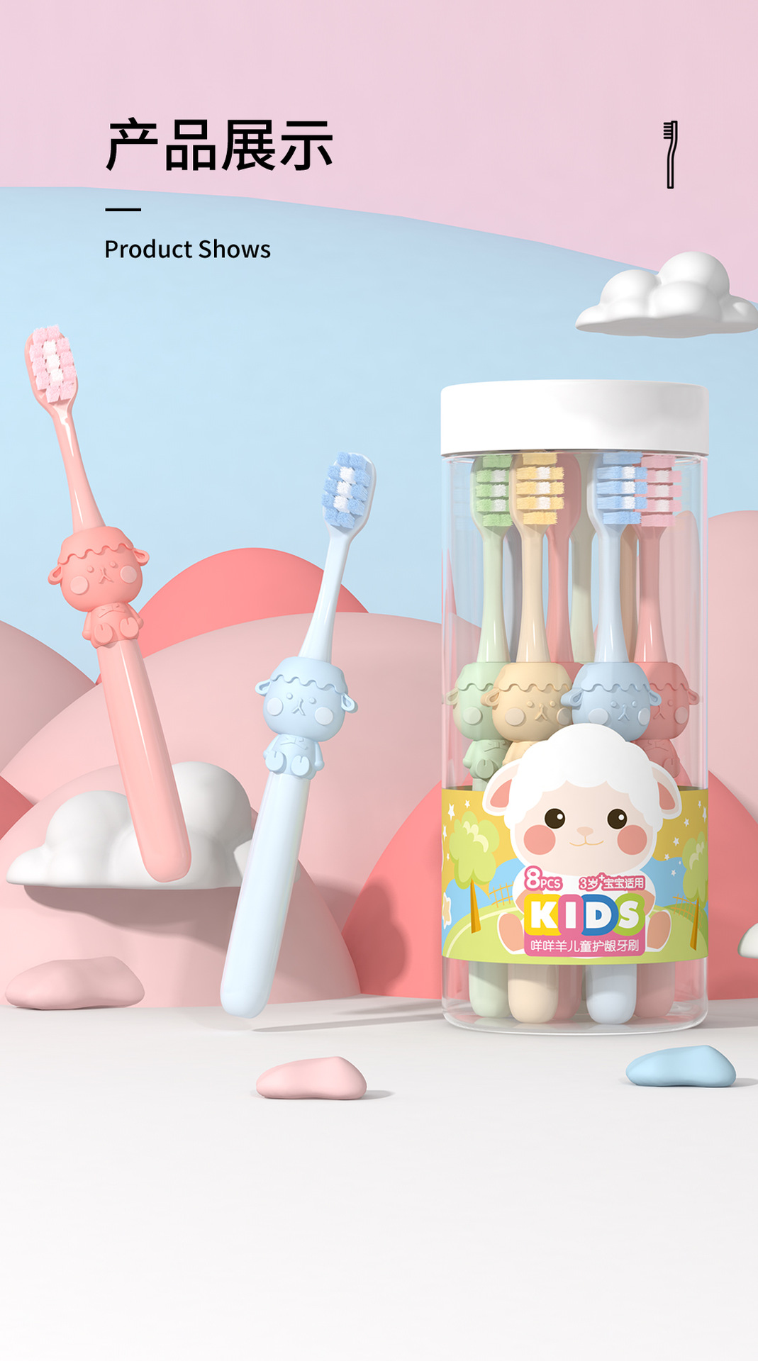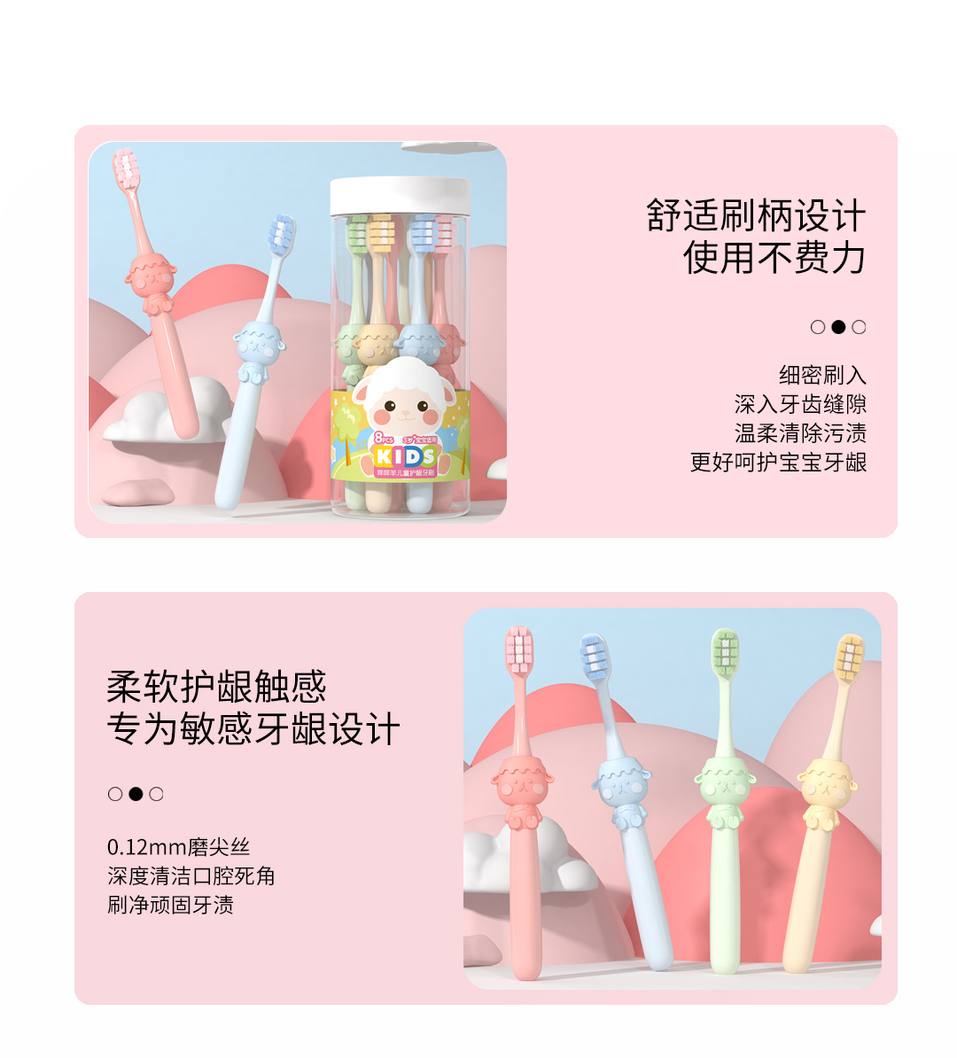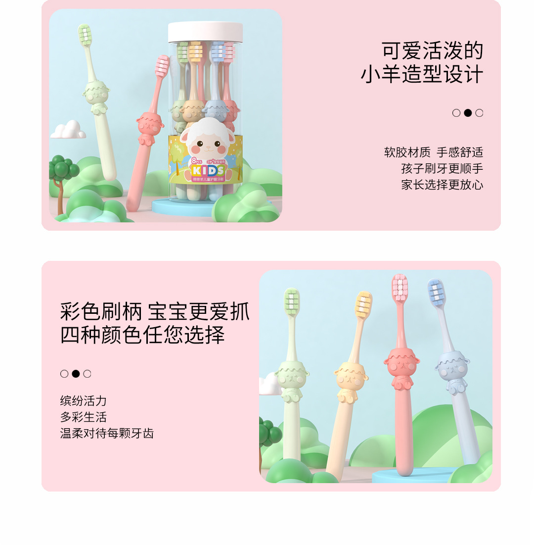 米客儿童软毛牙刷批发 3-12岁卡通家用护龈清洁收纳百货八支桶装