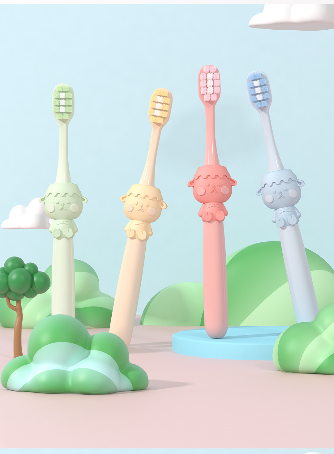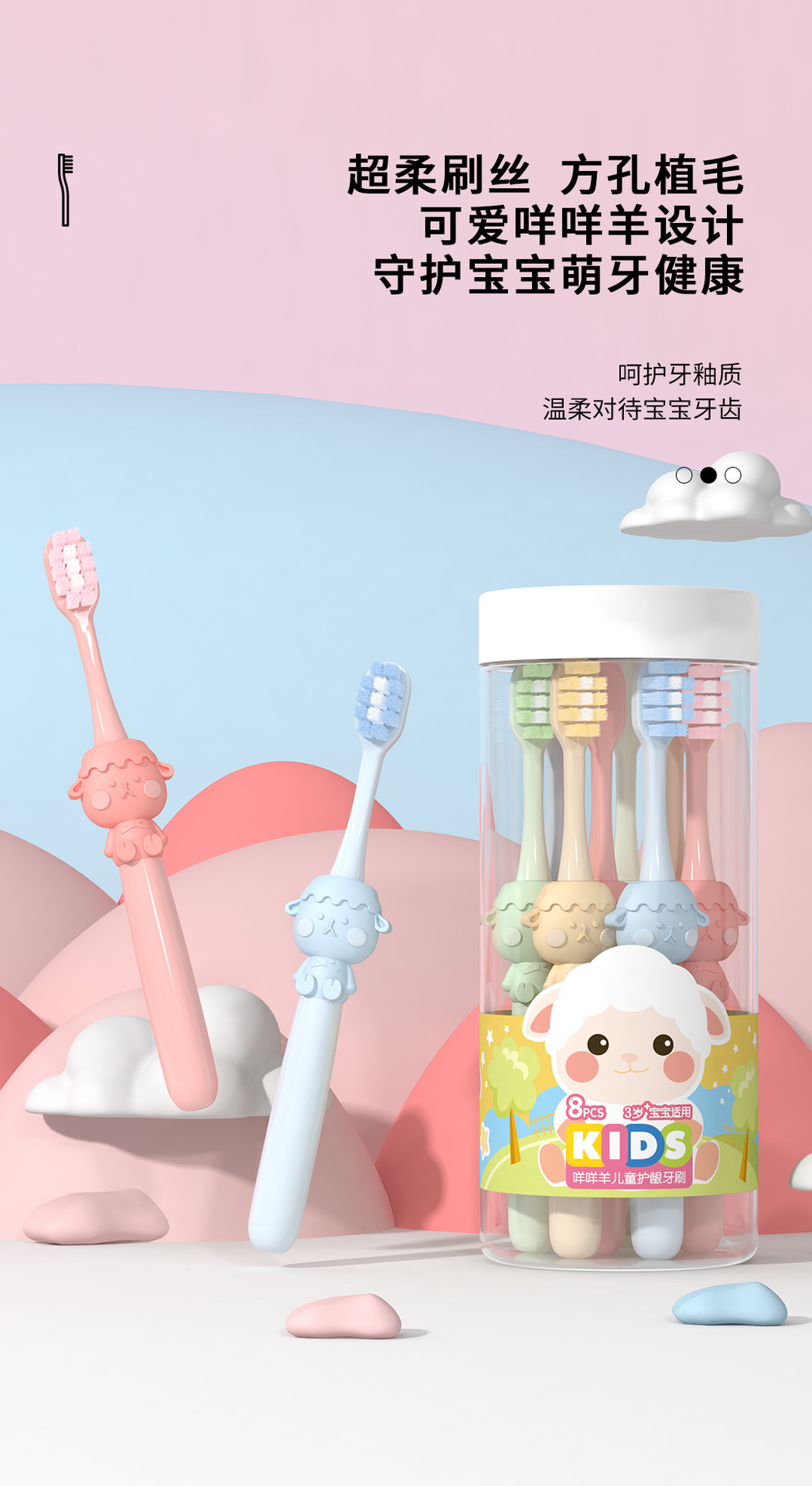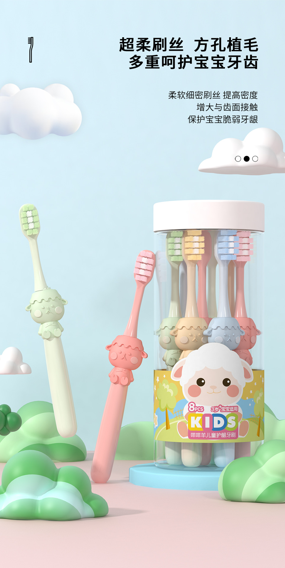 米客儿童软毛牙刷批发 3-12岁卡通家用护龈清洁收纳百货八支桶装