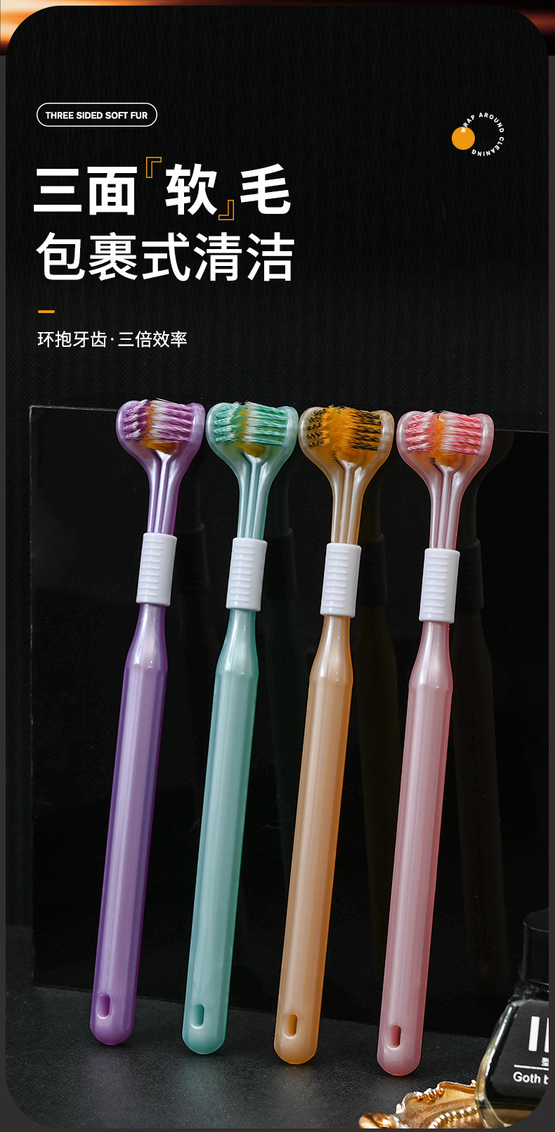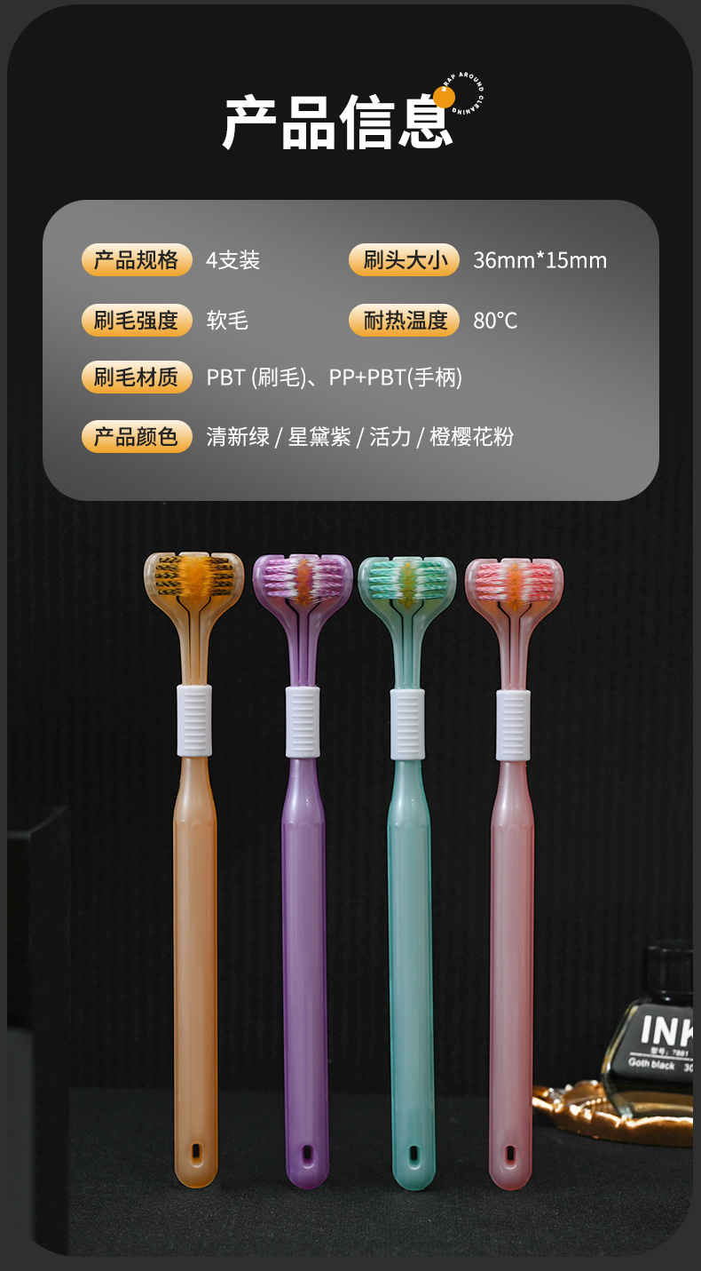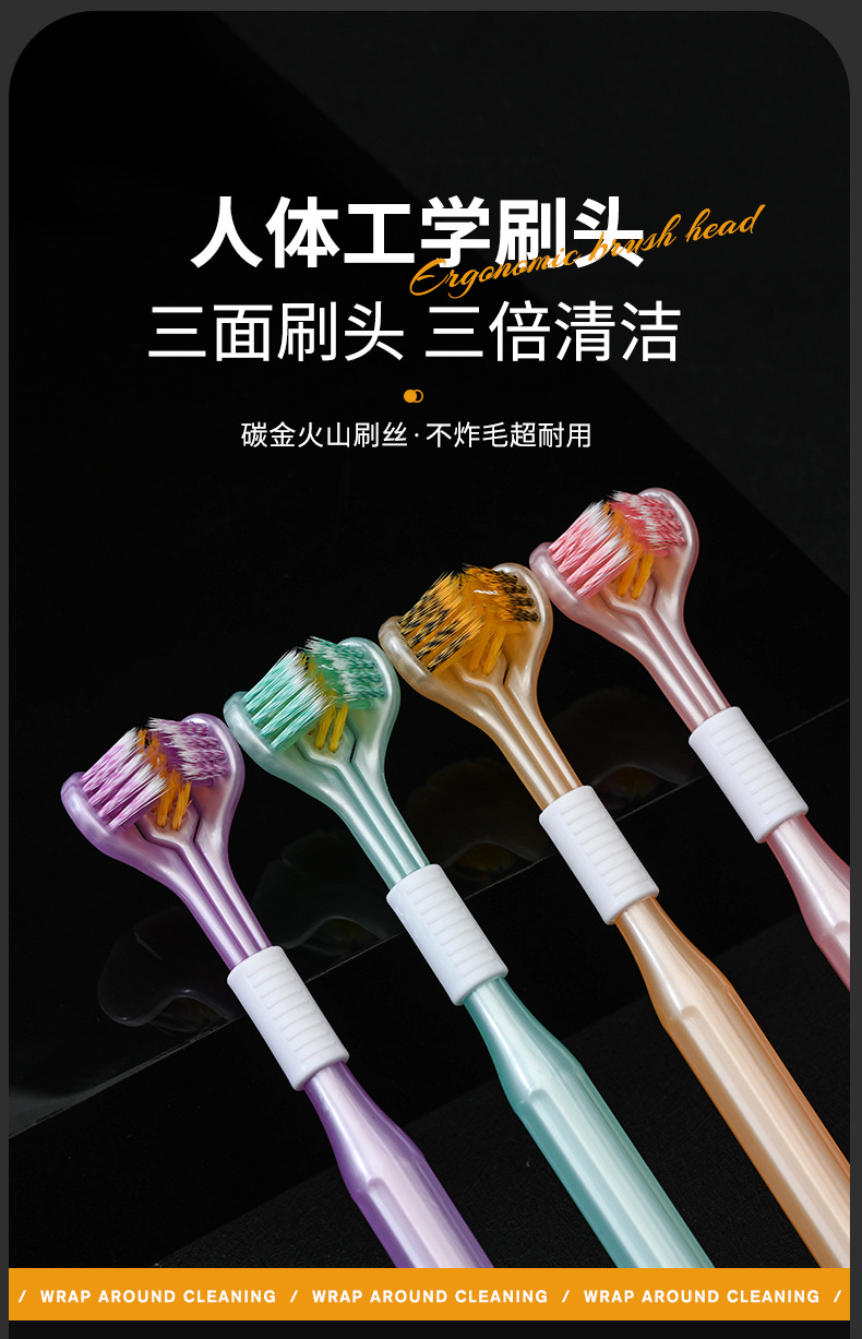 抖音快手同款卡玫尔三面包裹牙刷轻奢情侣细丝软毛牙刷礼盒包装