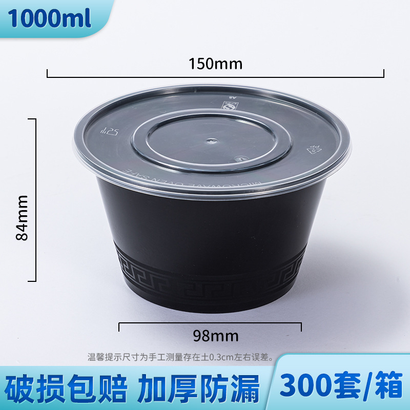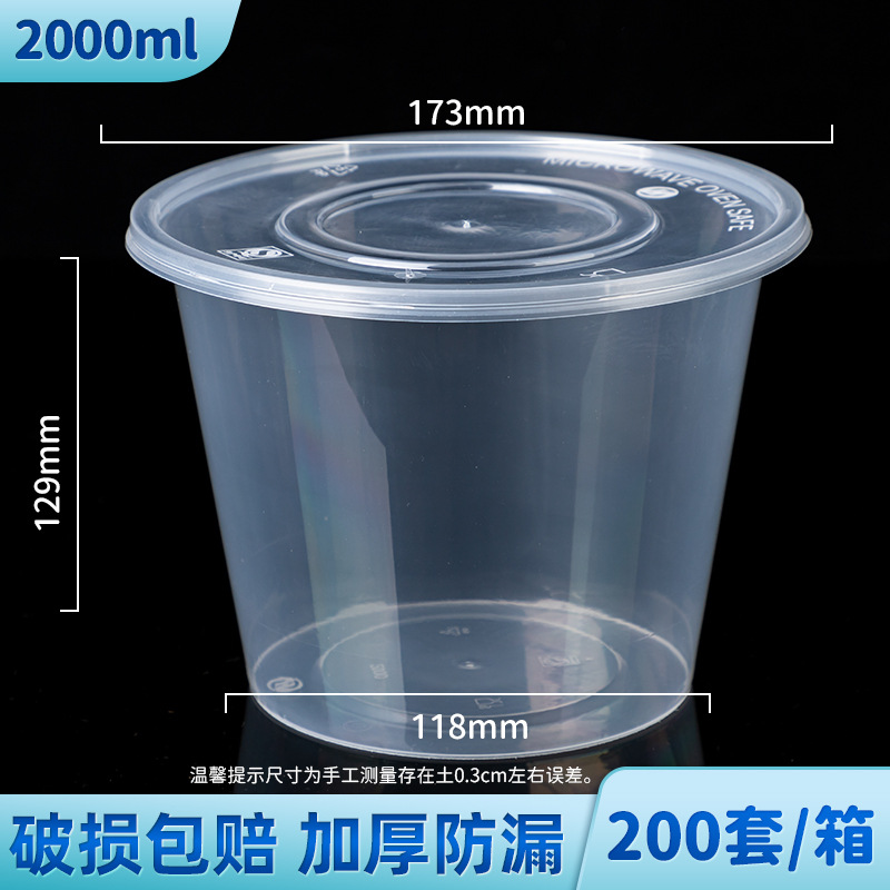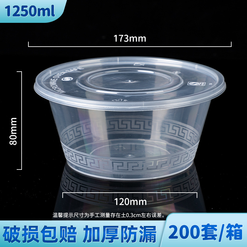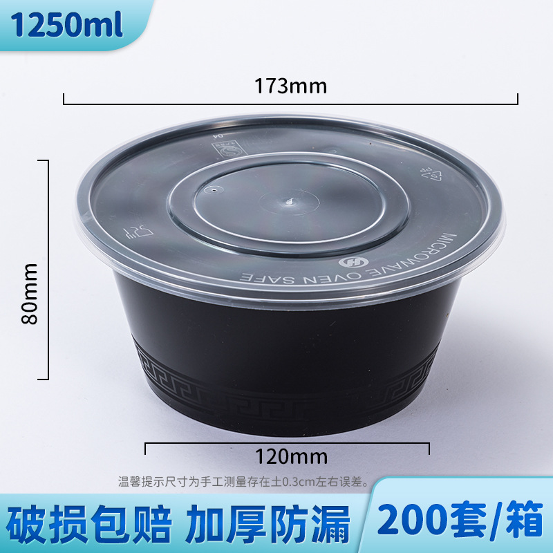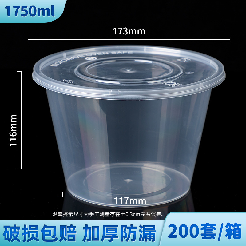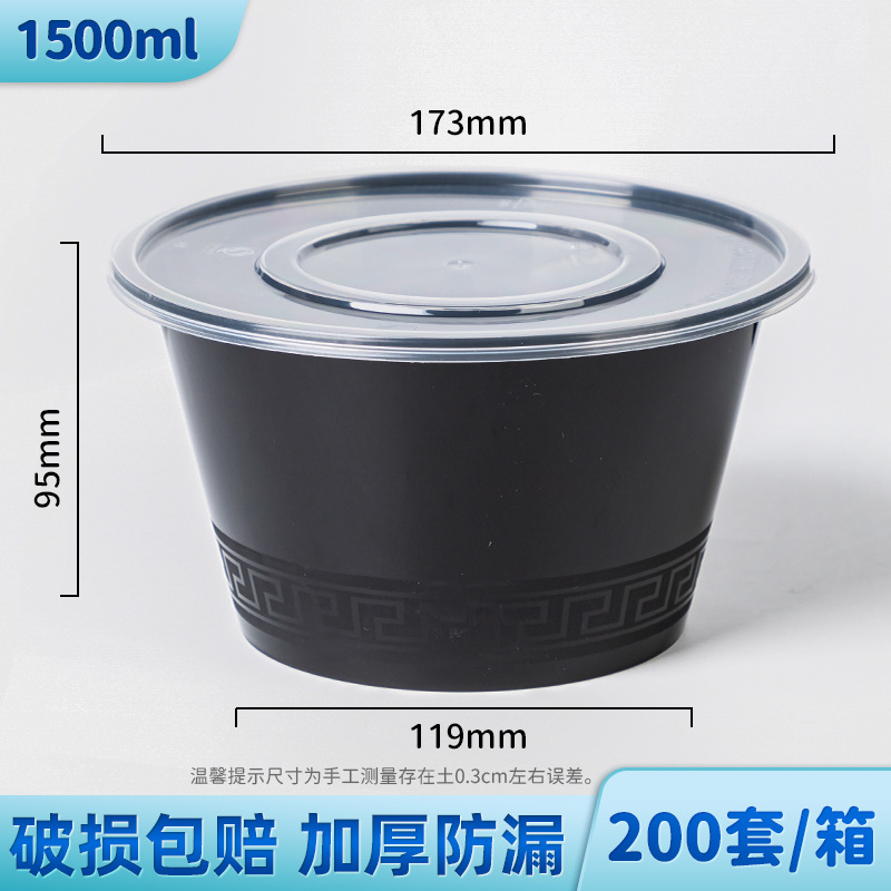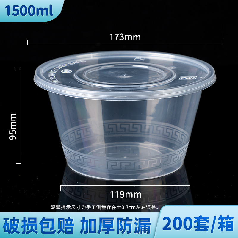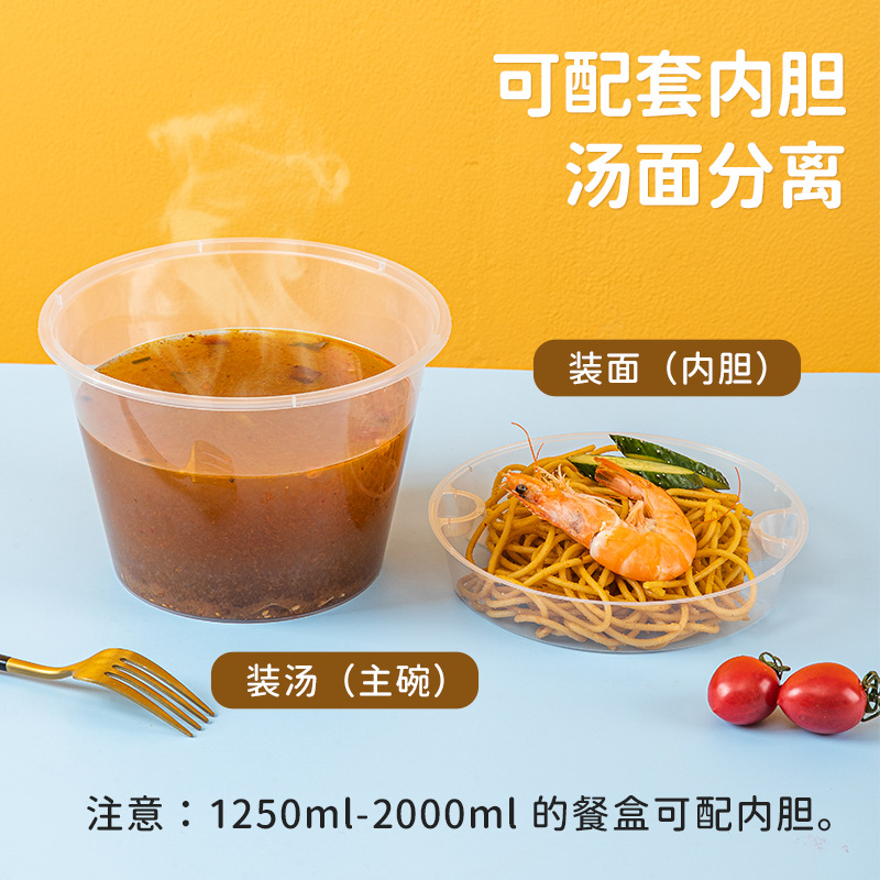 打包盒一次性餐盒双层圆形加厚打包碗一次性饭盒1500ml外卖打包盒