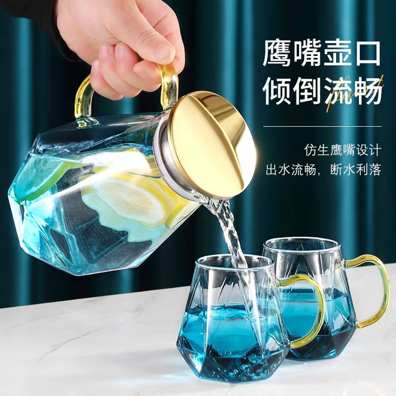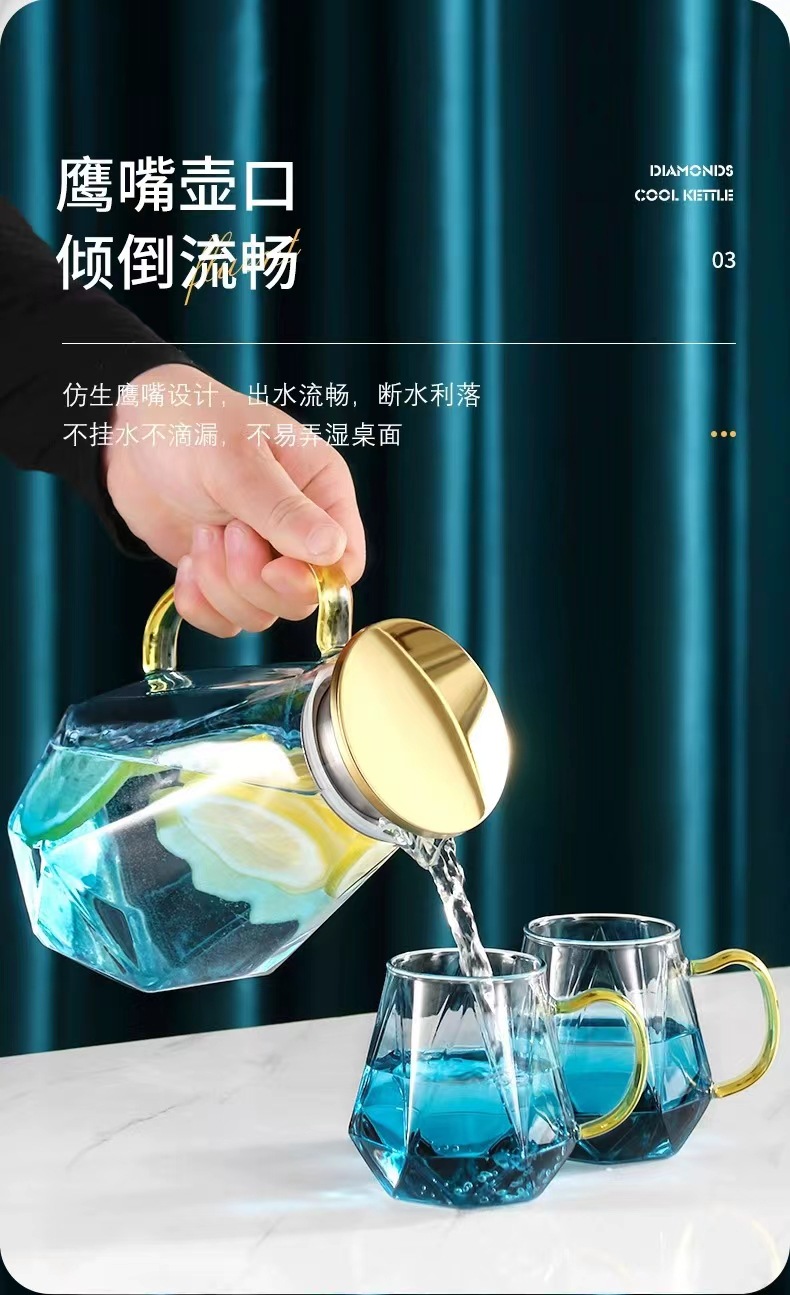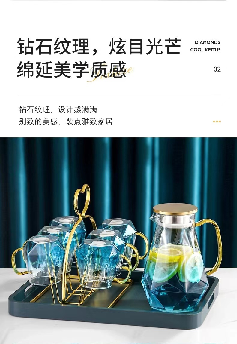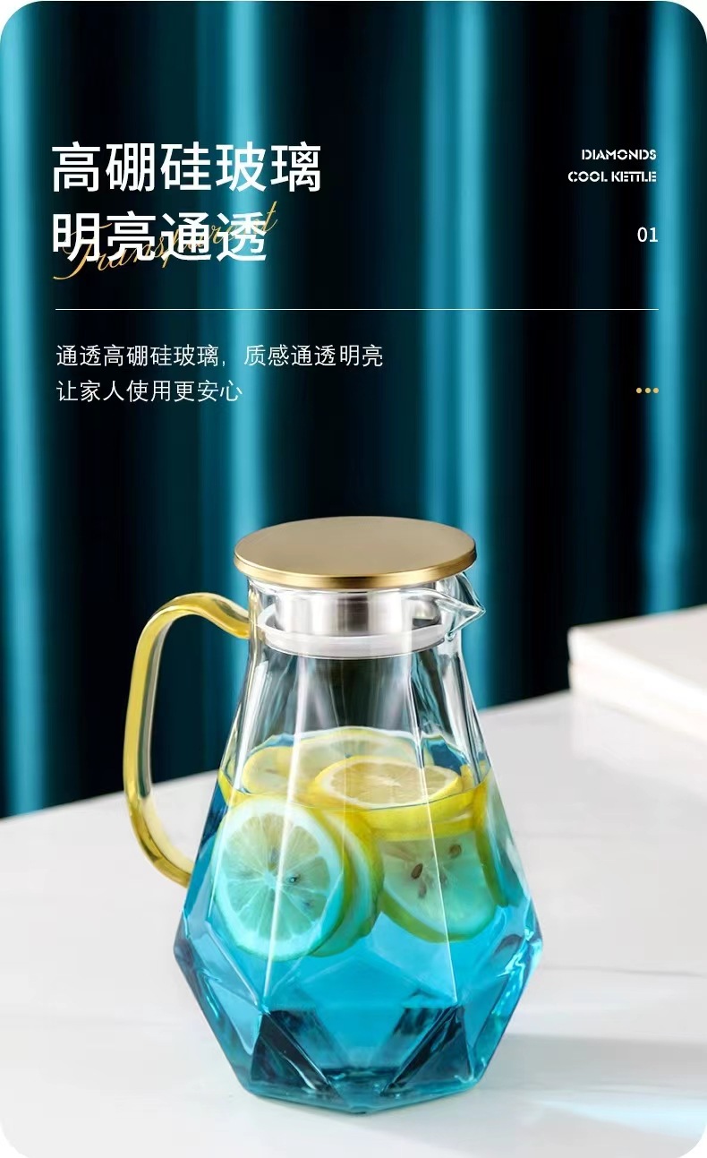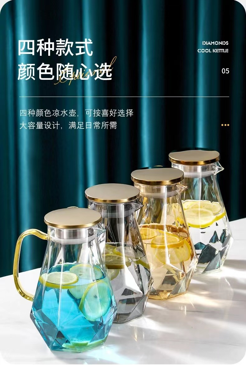 加厚透明时尚轻奢彩色明玻璃凉水壶钻石壶家用香槟冷水壶高颜值凉