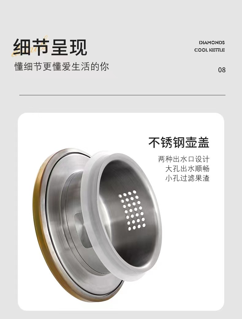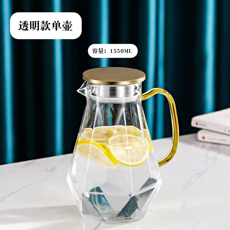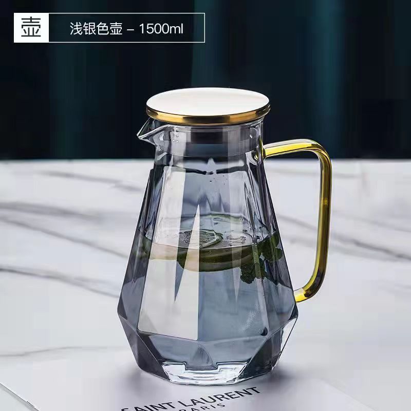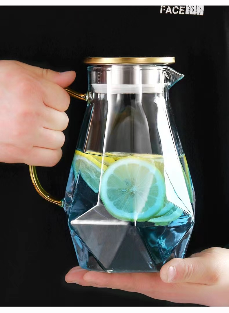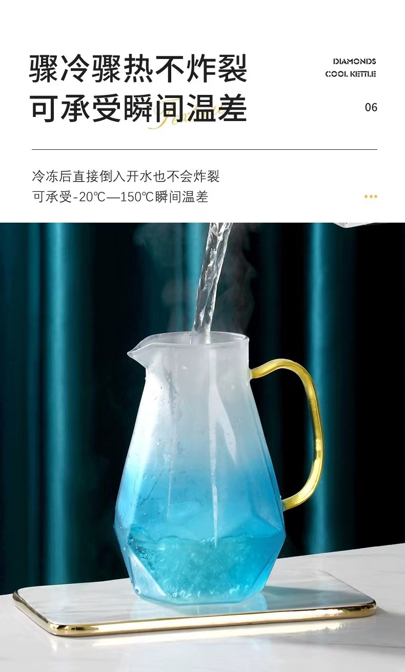加厚透明时尚轻奢彩色明玻璃凉水壶钻石壶家用香槟冷水壶高颜值凉
