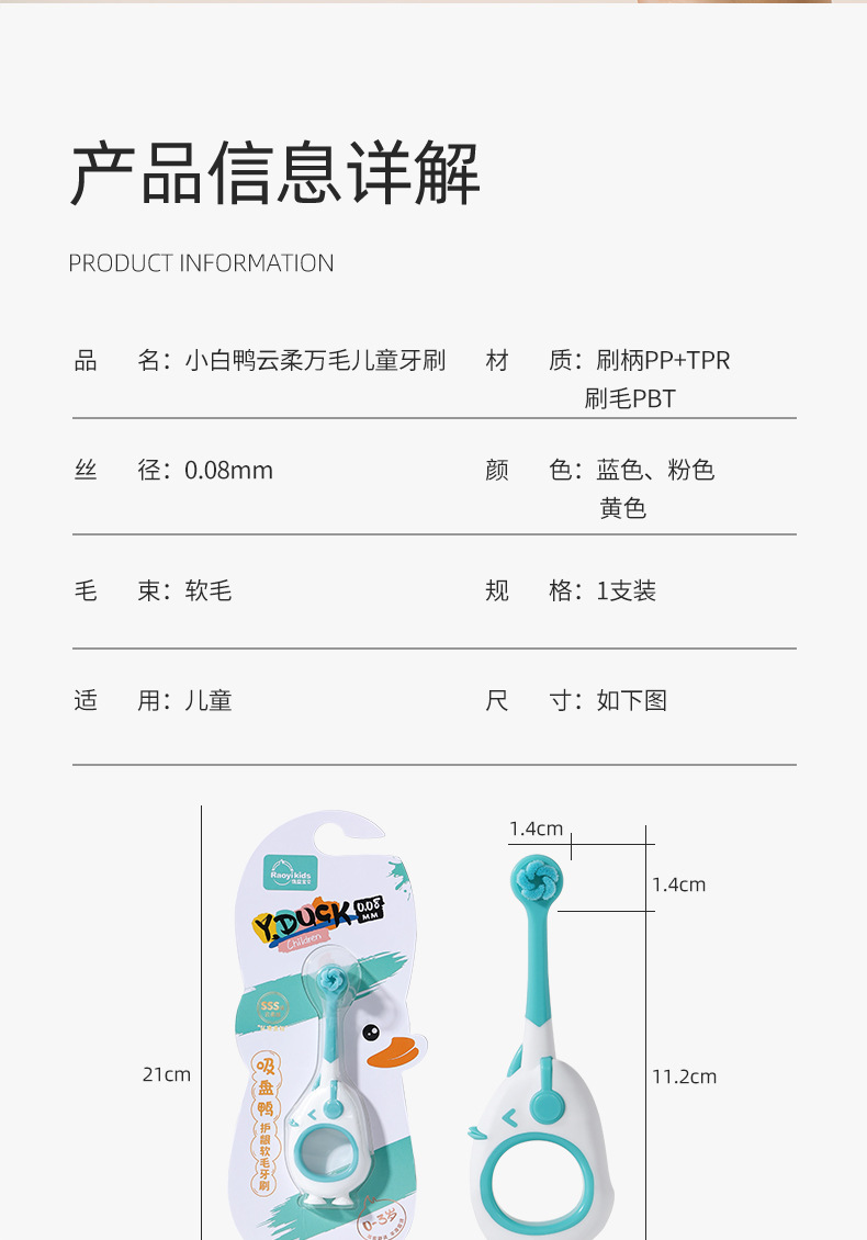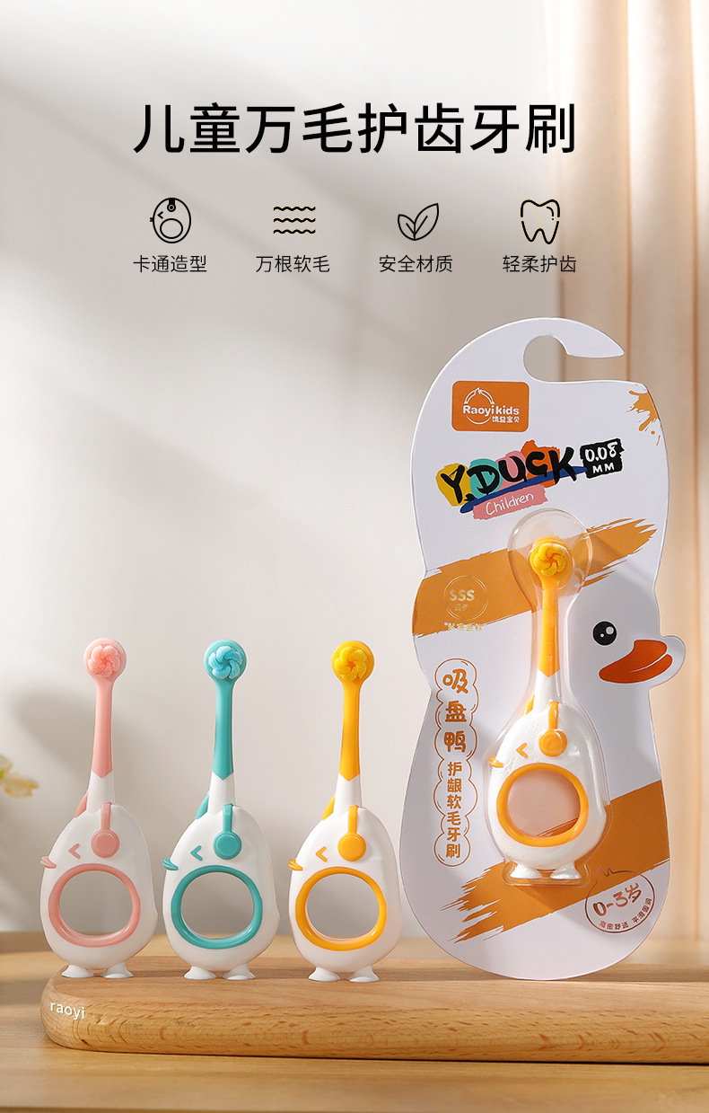晨医生吸盘鸭儿童万根毛牙刷 0-3岁婴幼儿宝宝细软毛卡通牙刷批发