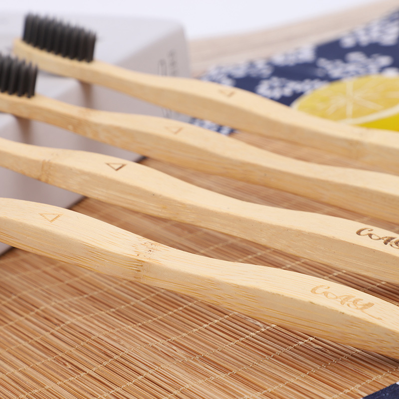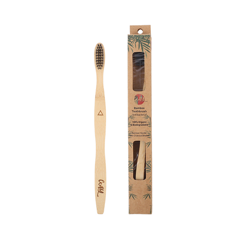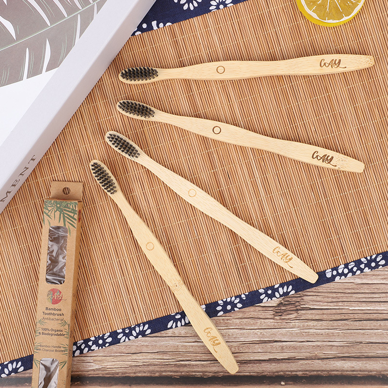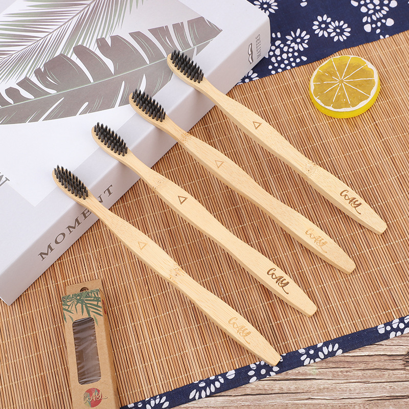 一次性竹子牙刷旅行民宿酒店竹炭软毛小刷头独立包装曲柄竹牙刷