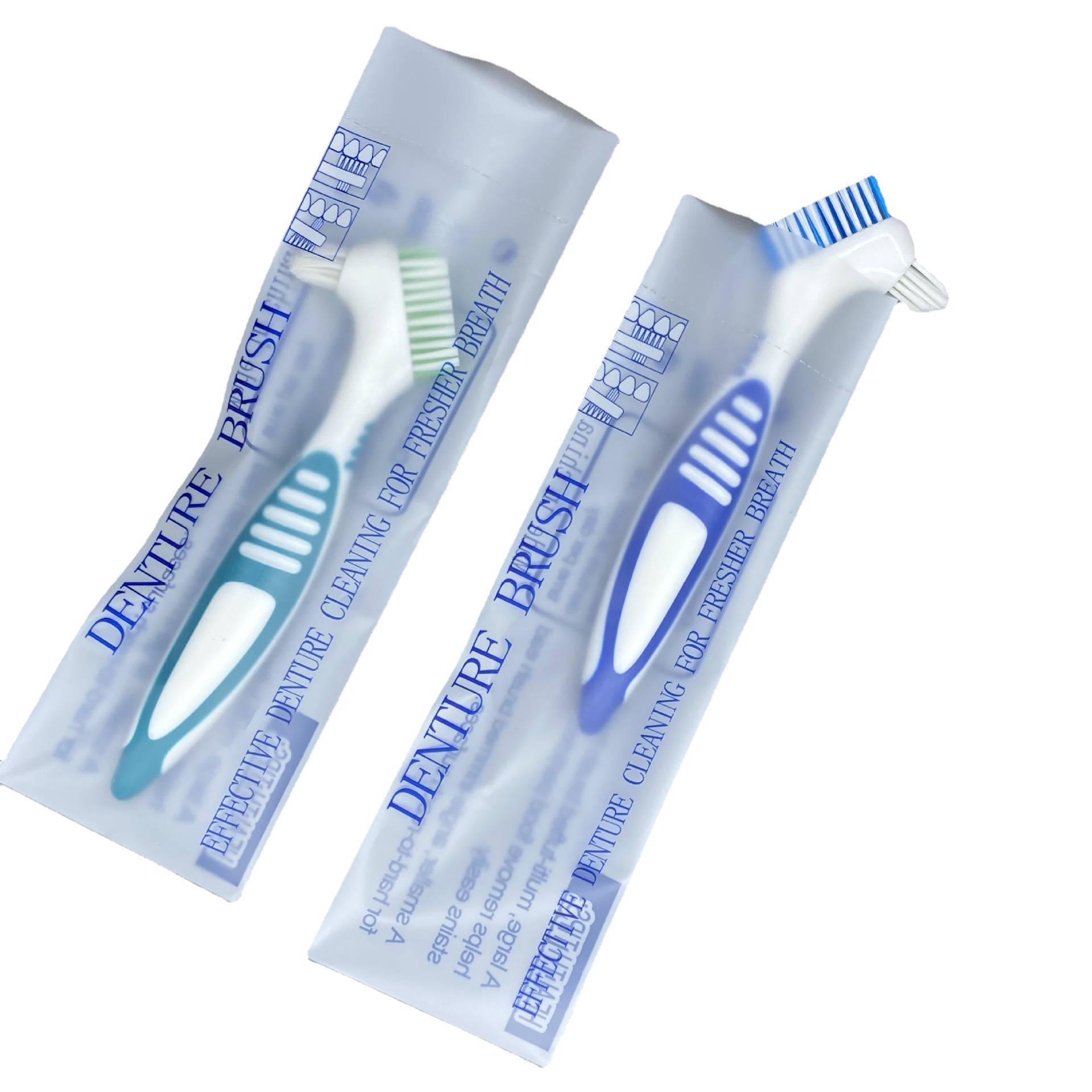 厂家生产假牙牙刷旅行清洁牙刷 出口外贸假牙刷义齿刷热切袋装