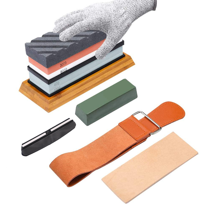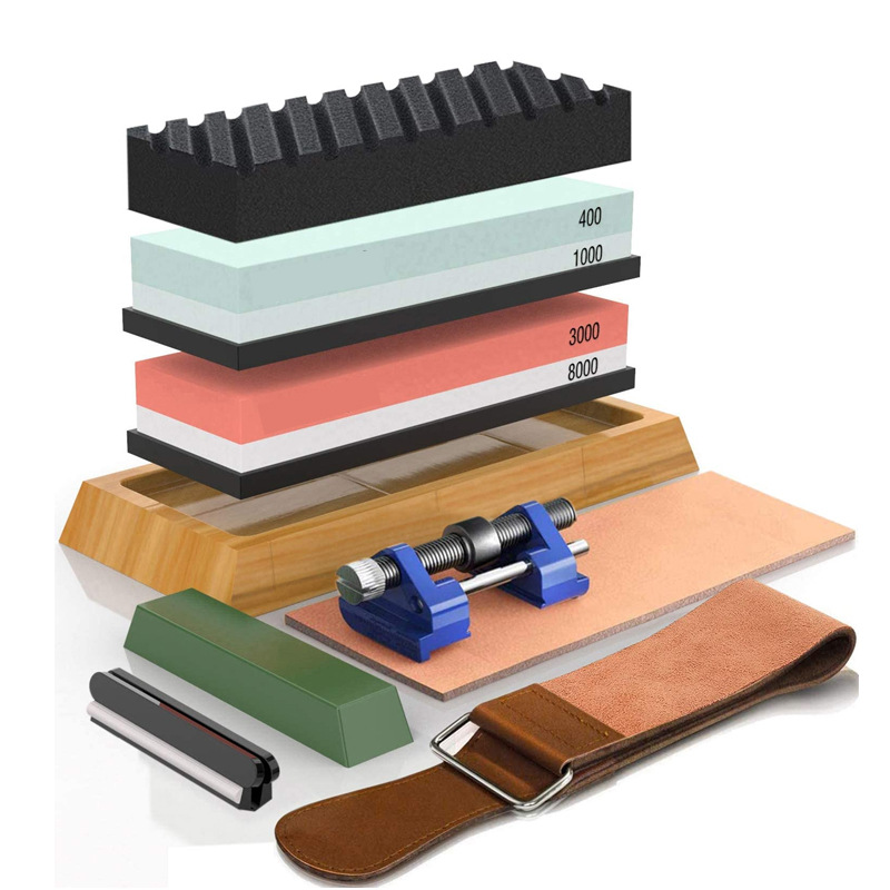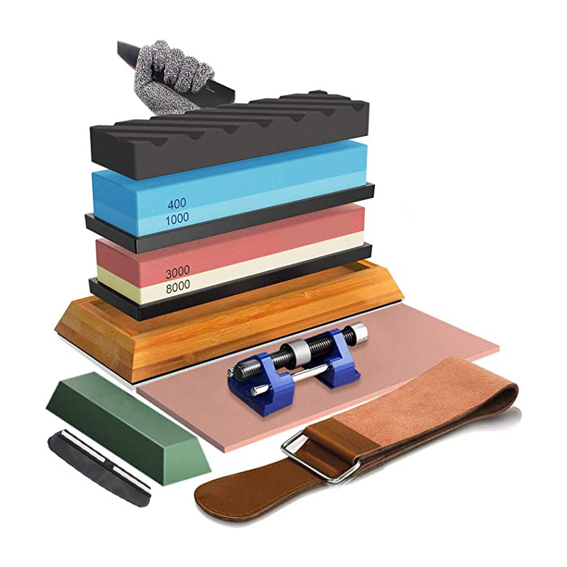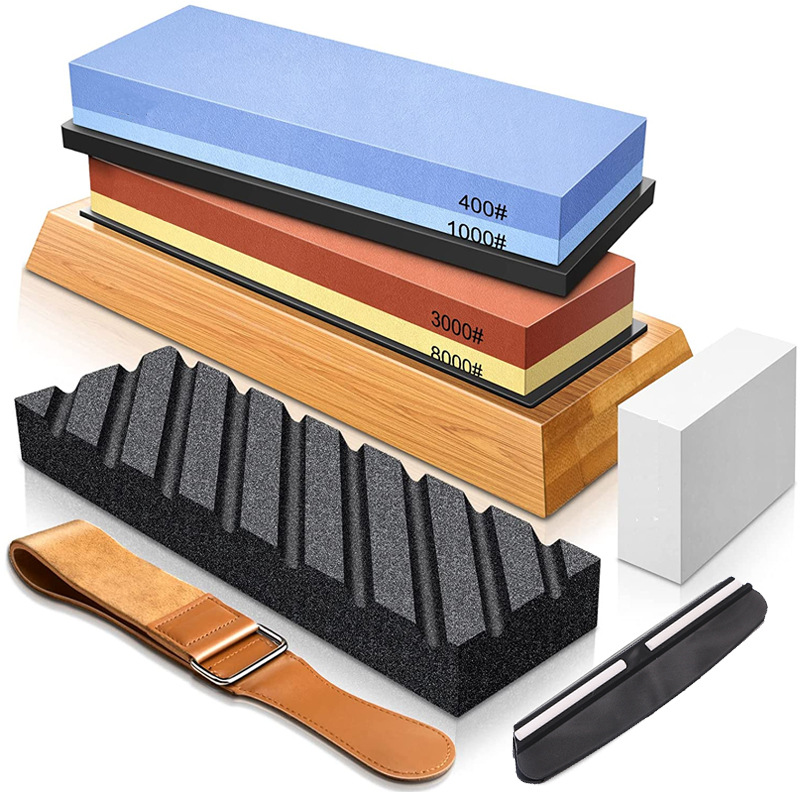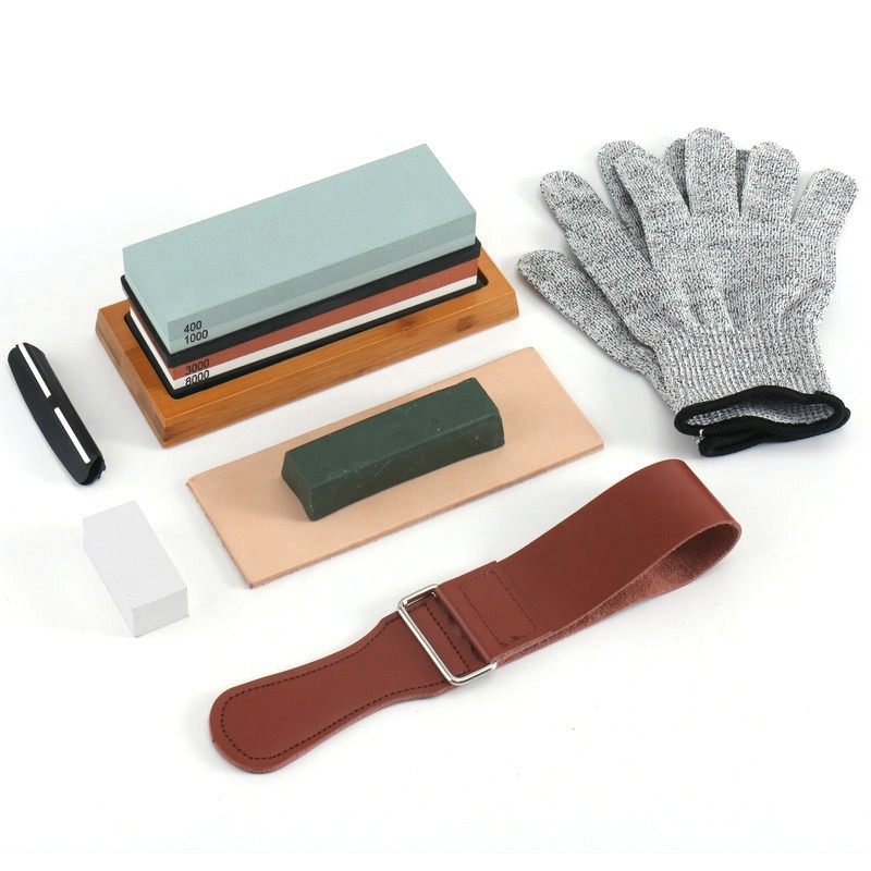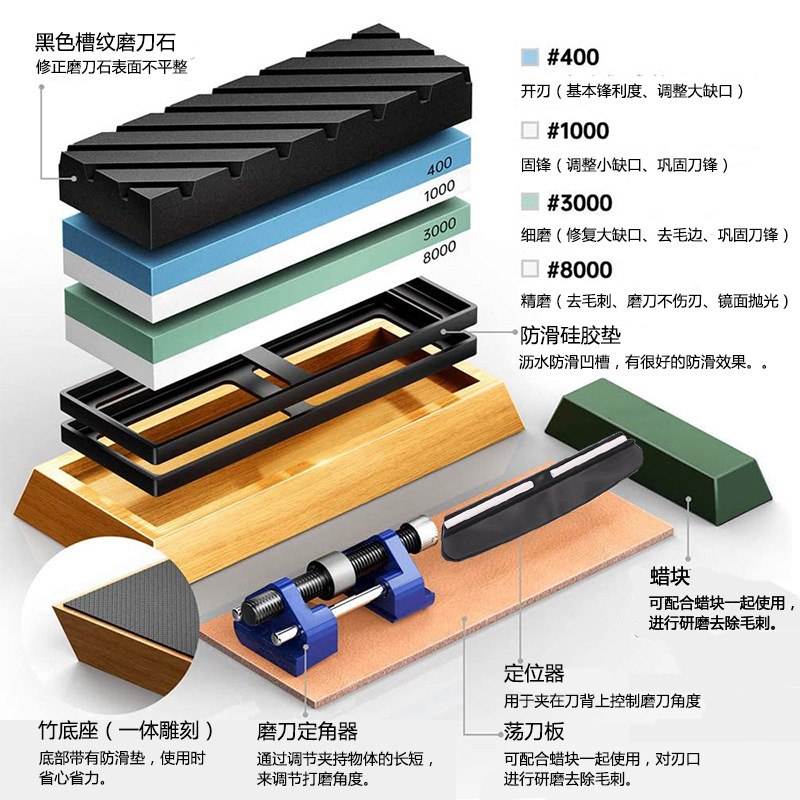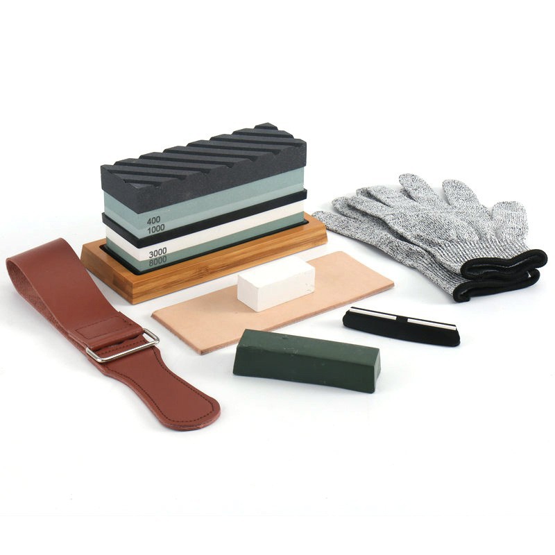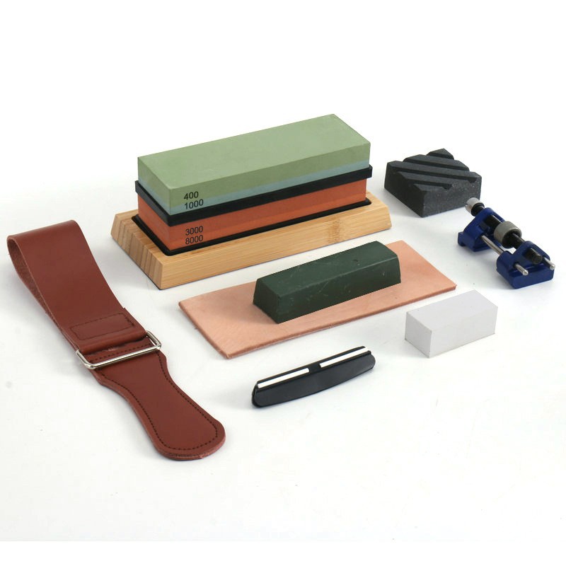 白刚玉磨刀石双面油石磨石家用厨房户外磨刀9件套装组合现货批发