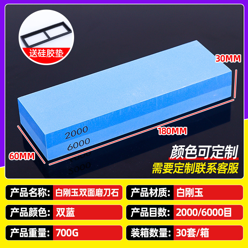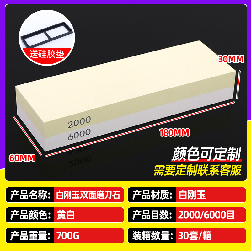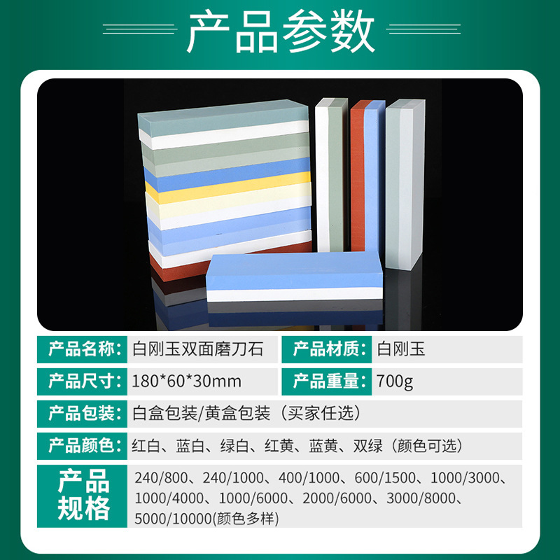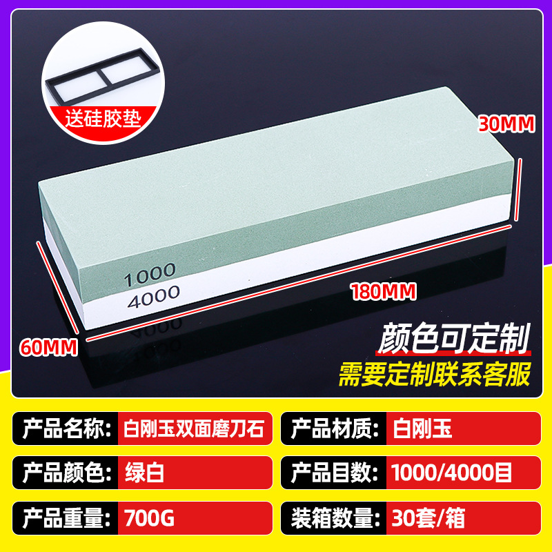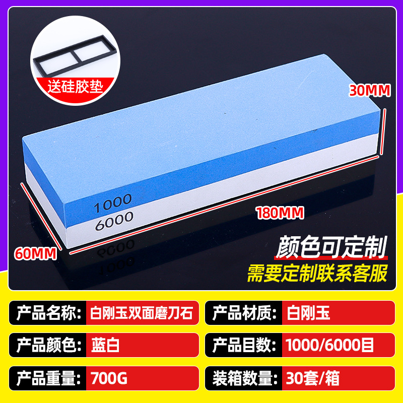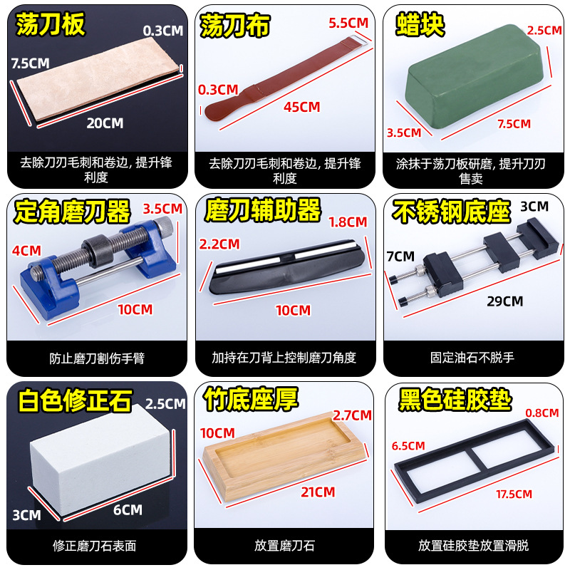 厂家批发双面白刚玉磨刀石带竹底座修正石定位器套装磨刀器油石