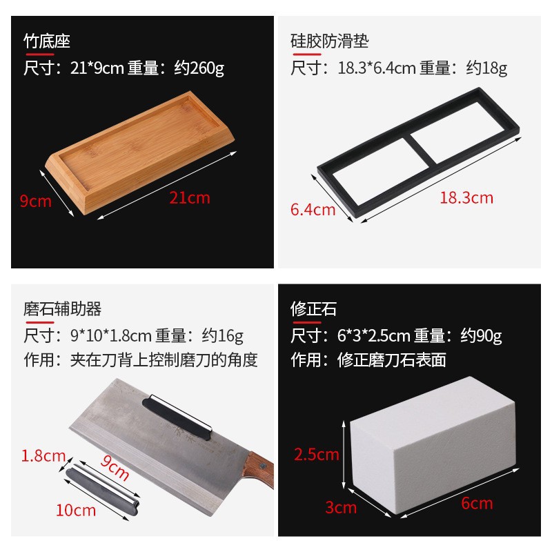 | sharpening stone + silica gel pad + bamboo base + locator + correction stone(磨刀石+硅胶垫+竹底座+定位器+修正石) | USD $5.11 | 85197 piece available |