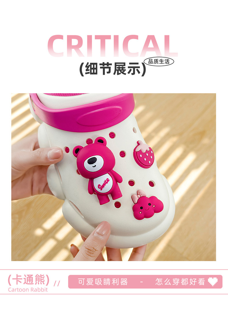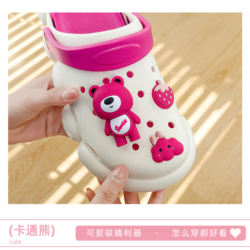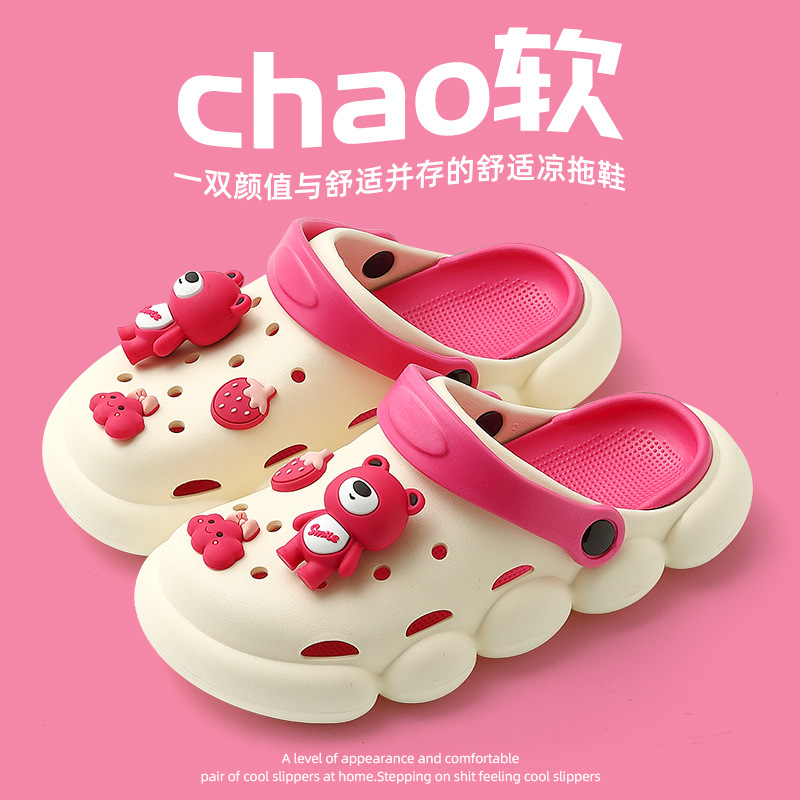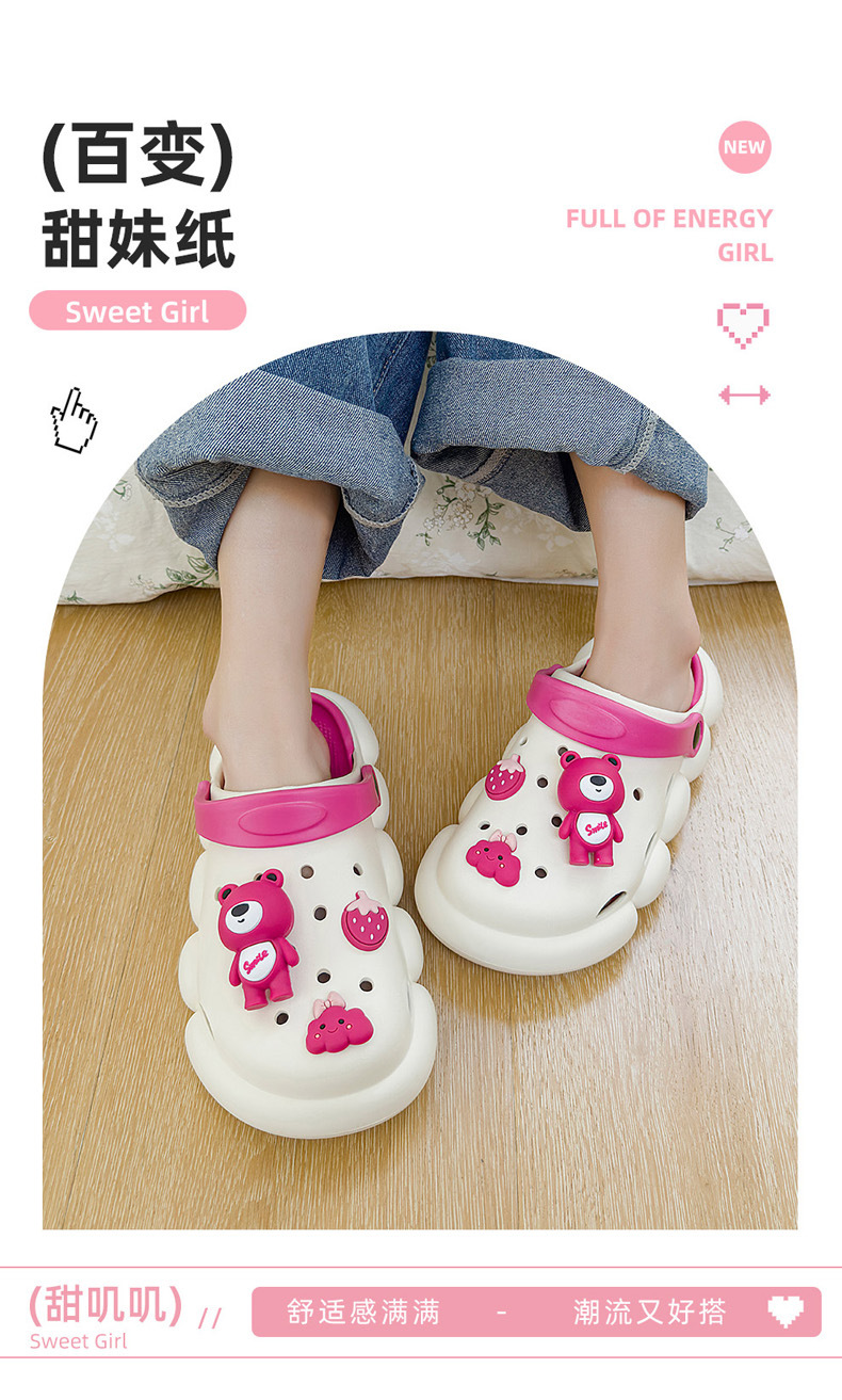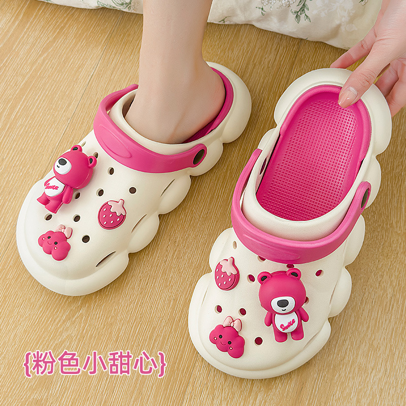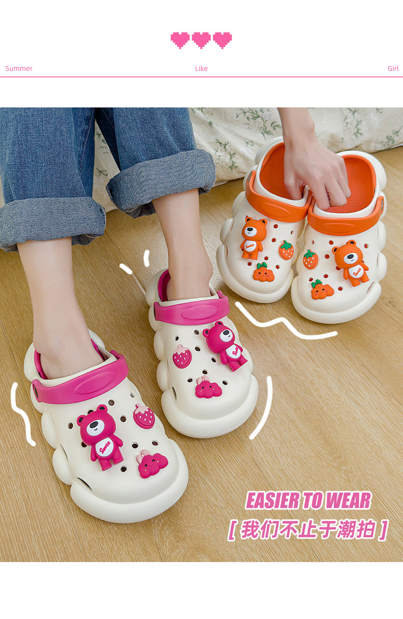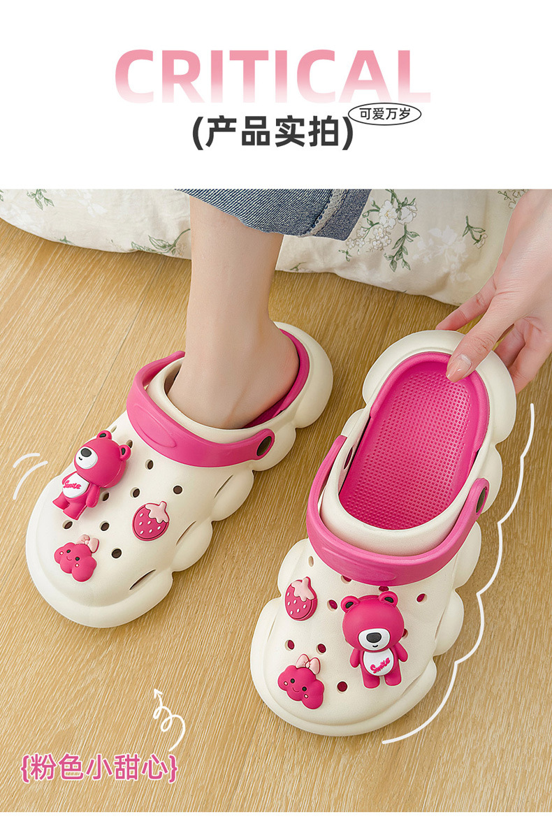 踩屎感洞洞鞋女外穿新款可爱草莓熊厚底沙滩防滑拖鞋批发女款夏天