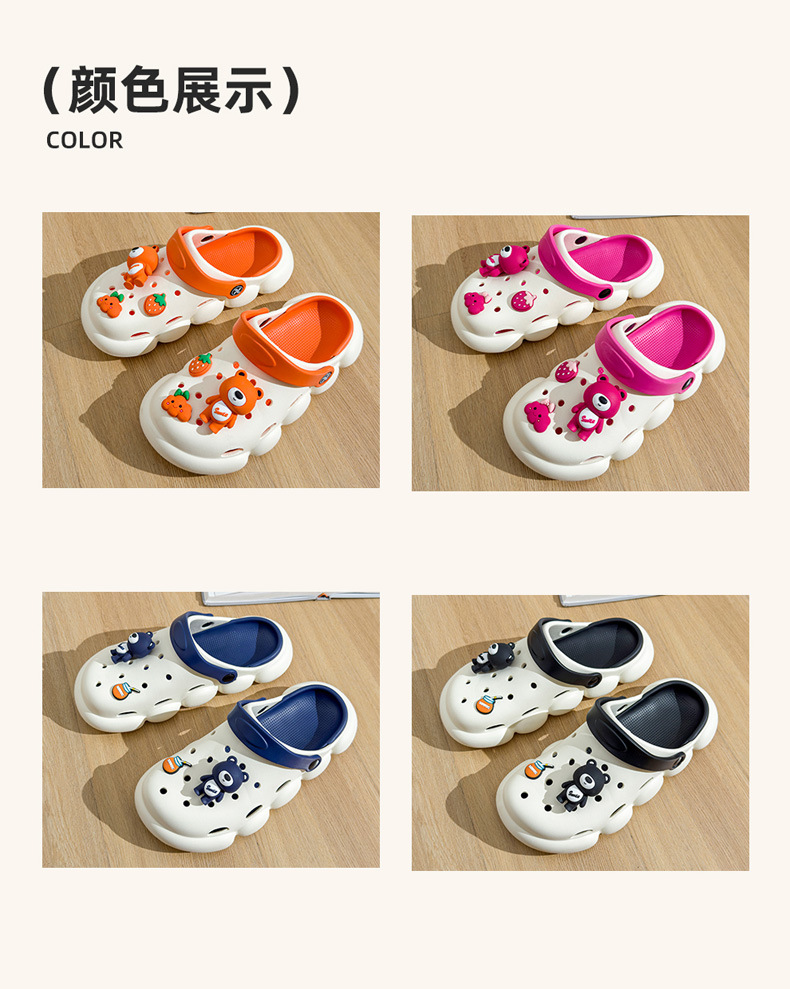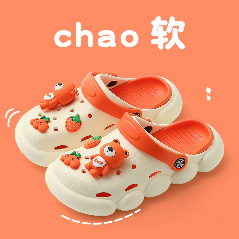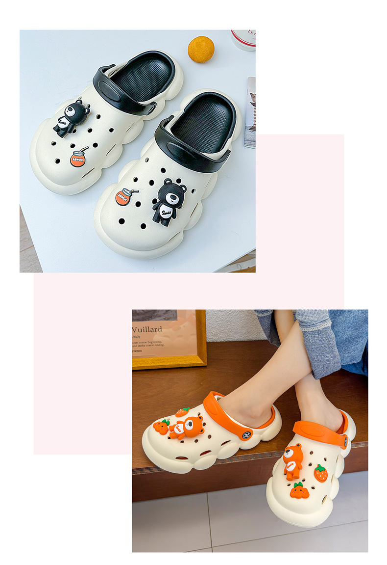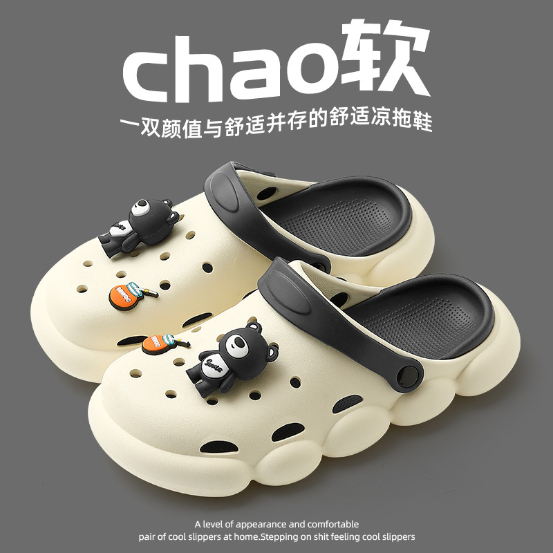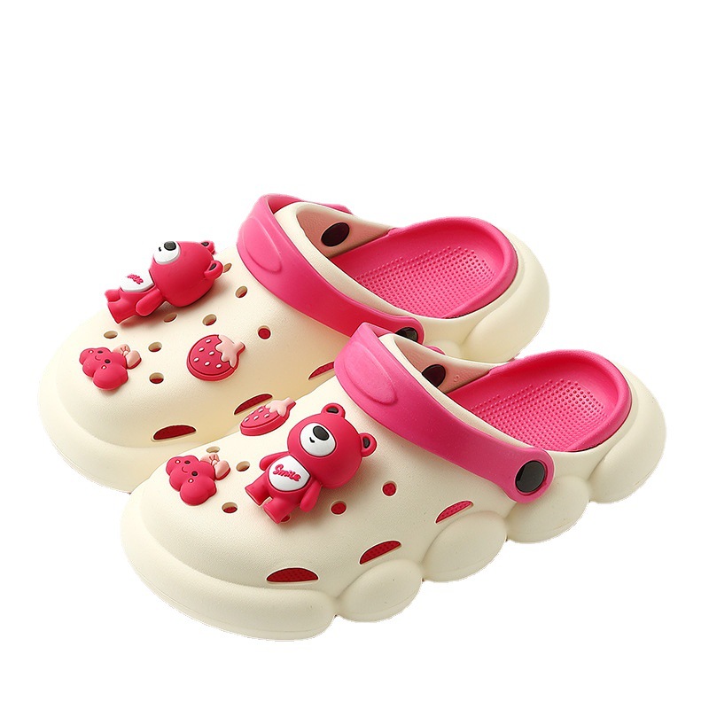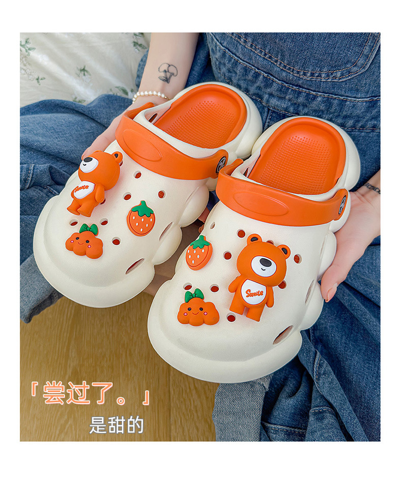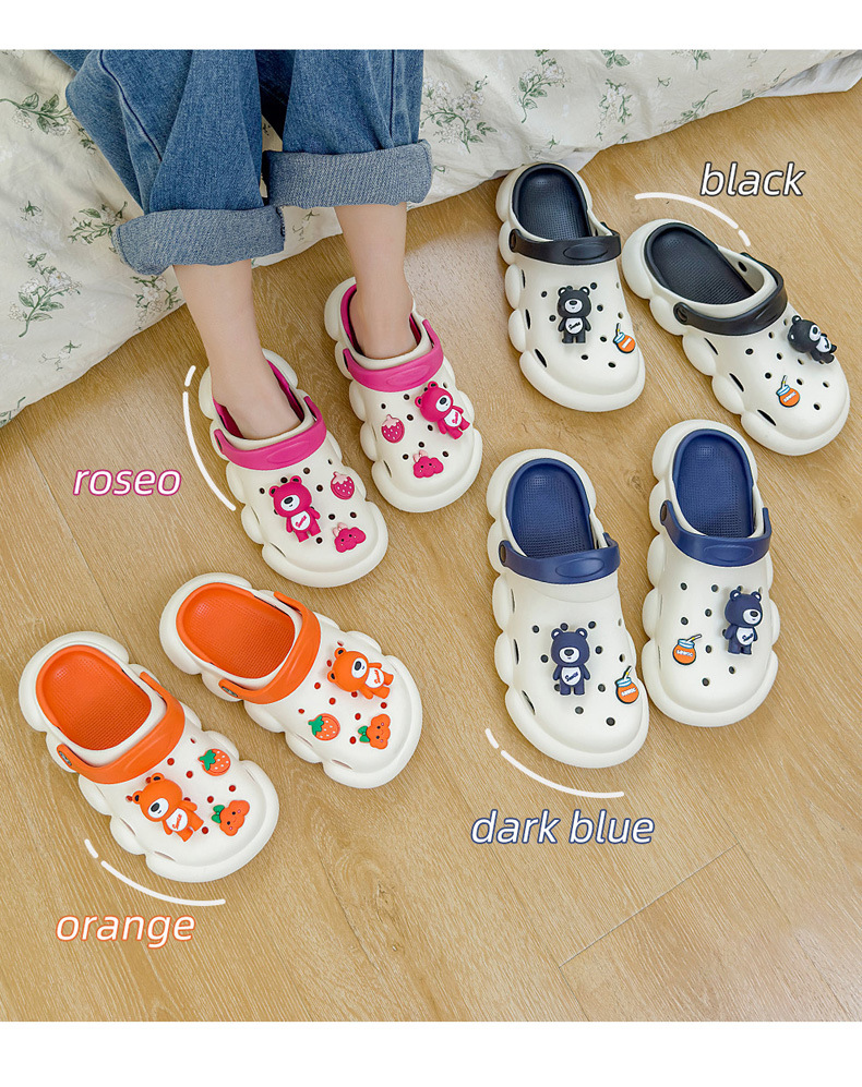 踩屎感洞洞鞋女外穿新款可爱草莓熊厚底沙滩防滑拖鞋批发女款夏天