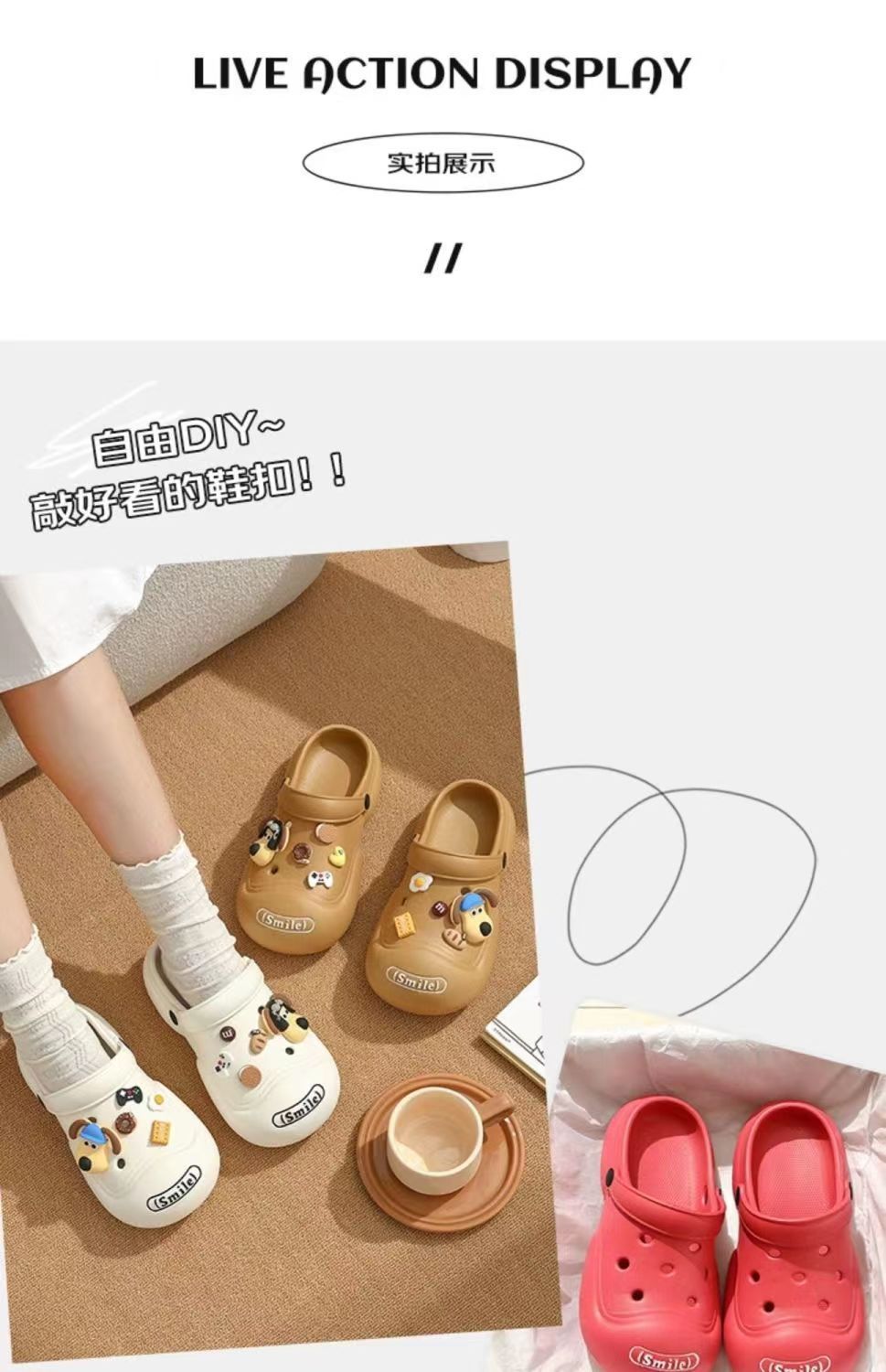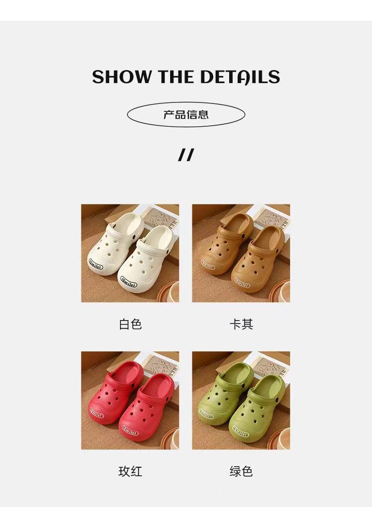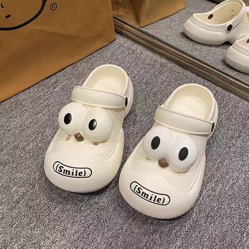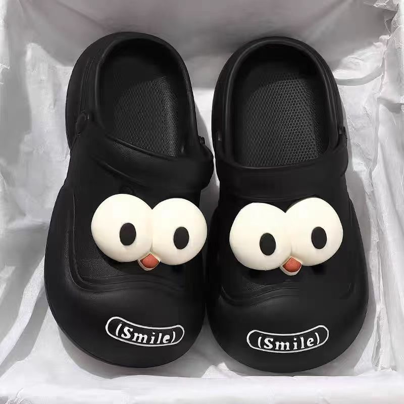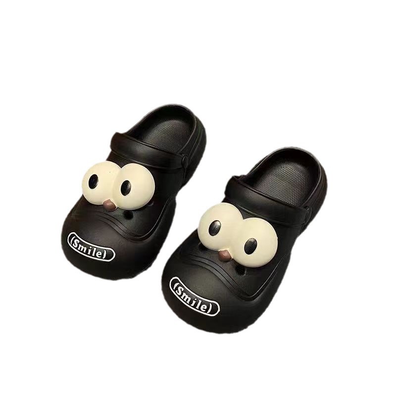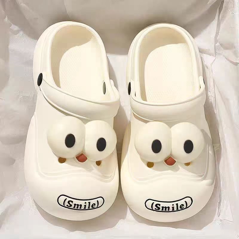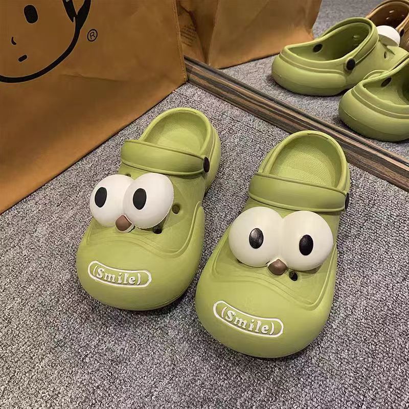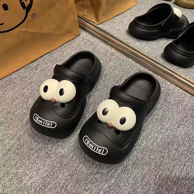 卡通萌眼洞洞鞋女夏季外穿爆款包头半凉拖鞋防滑踩屎感沙滩凉拖鞋
