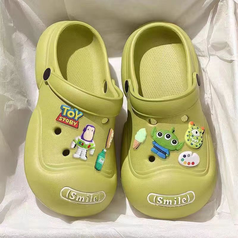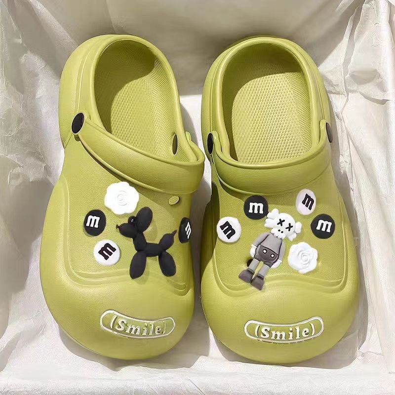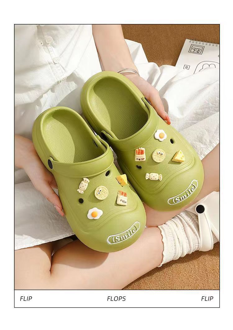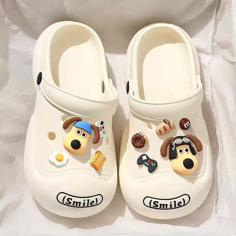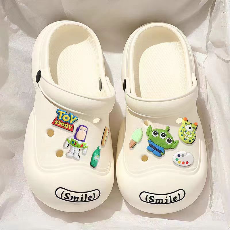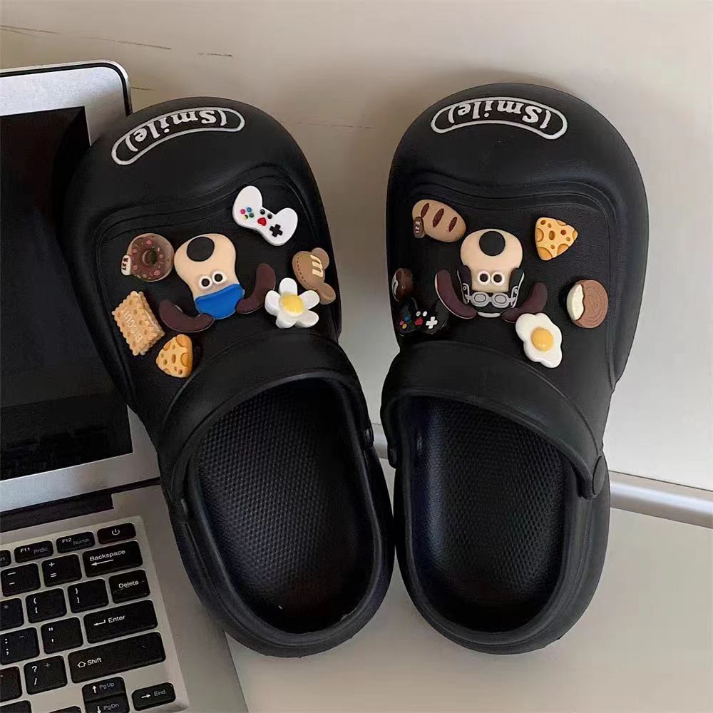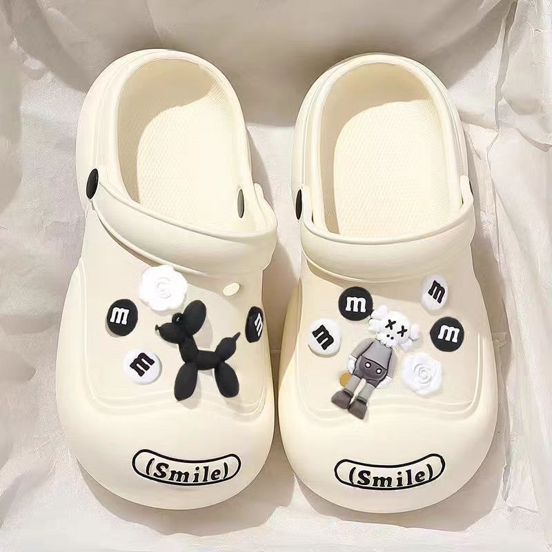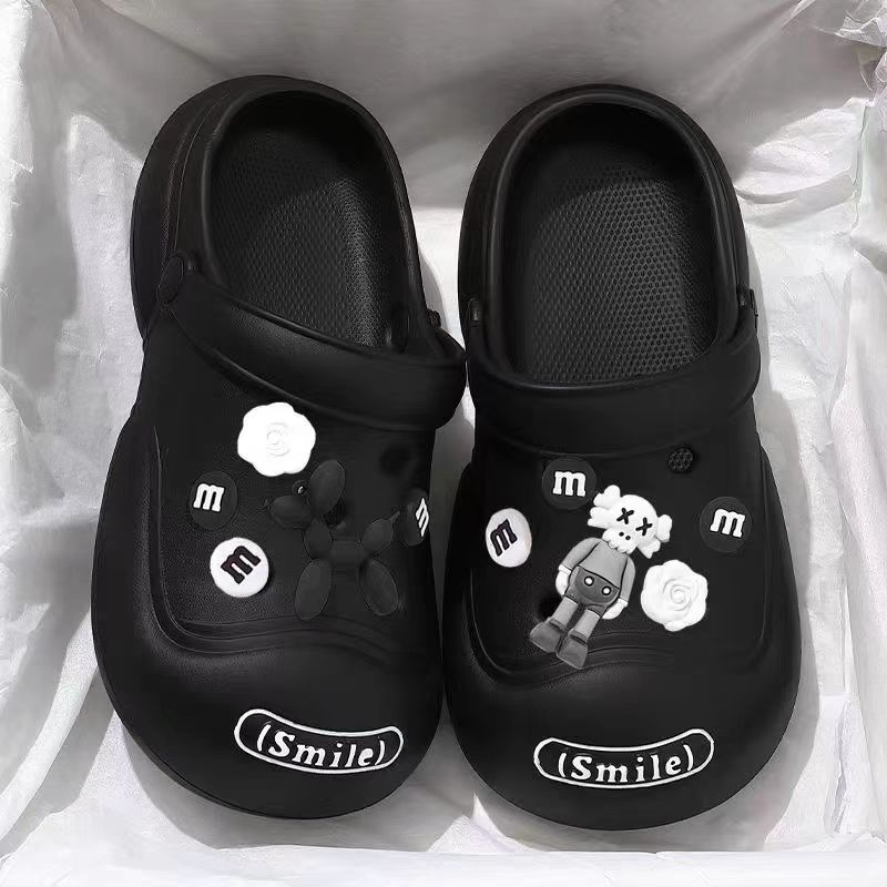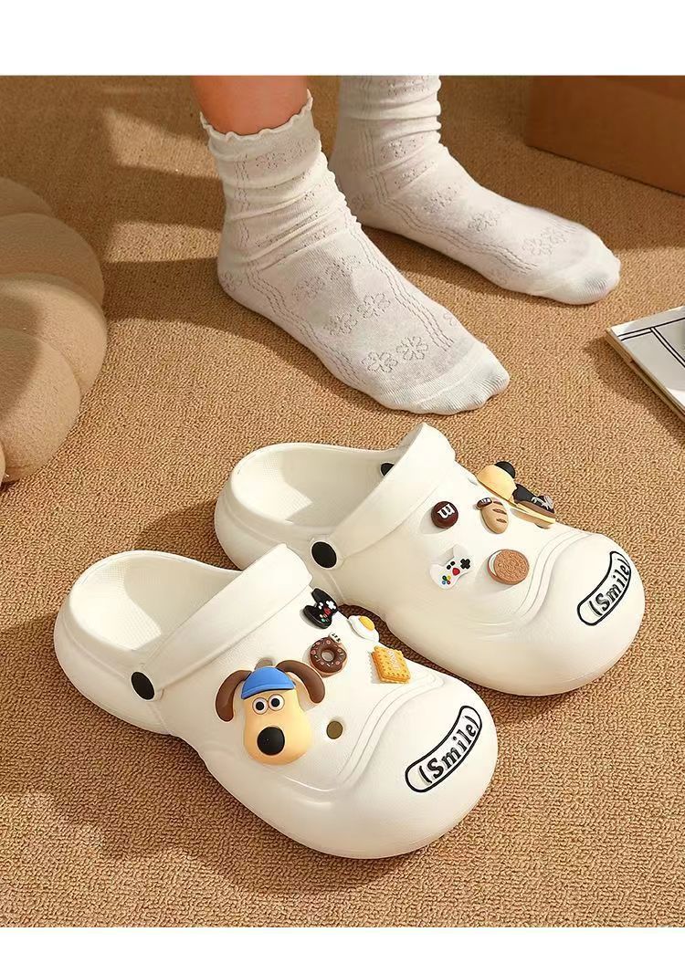 卡通萌眼洞洞鞋女夏季外穿爆款包头半凉拖鞋防滑踩屎感沙滩凉拖鞋