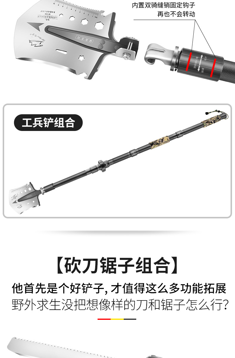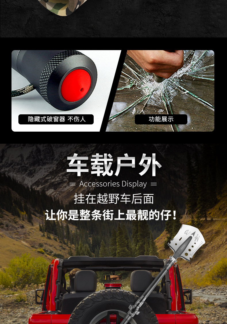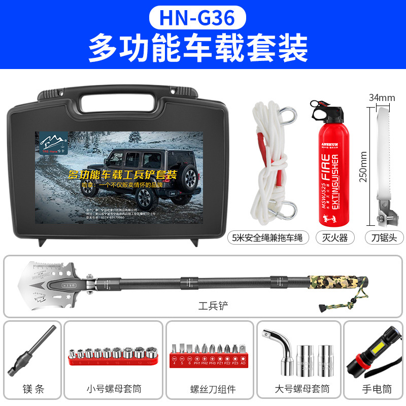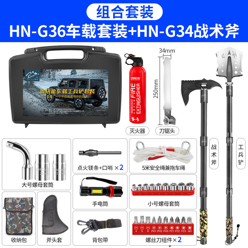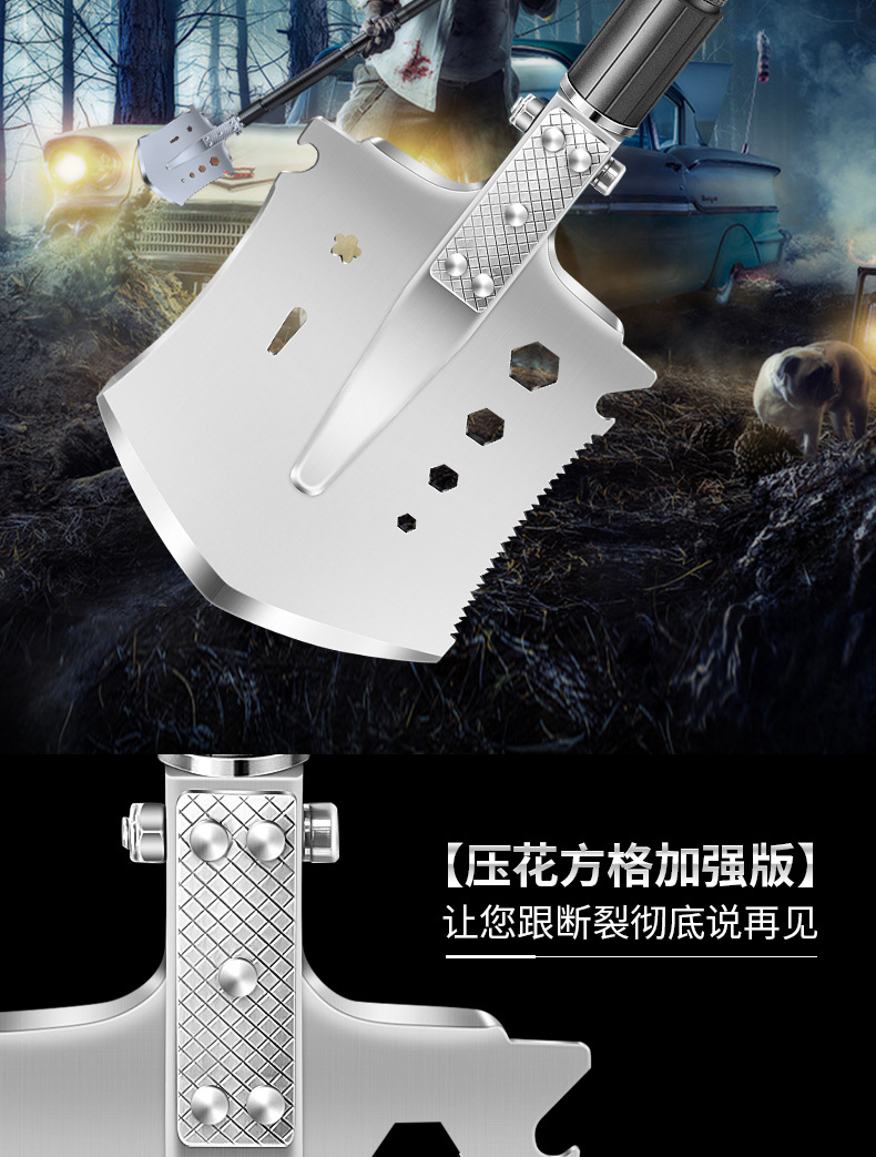 不锈钢工兵铲户外多功能车载套装可折叠军工铲野营抢险救援工具箱