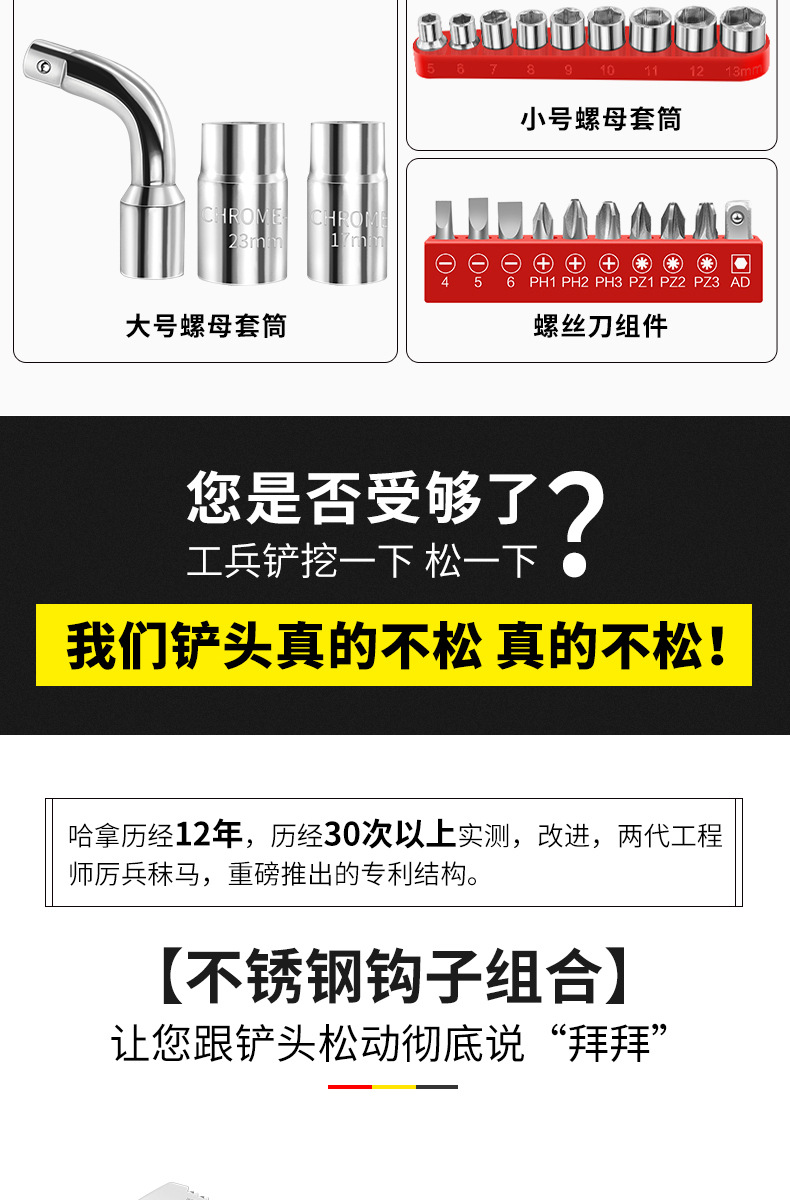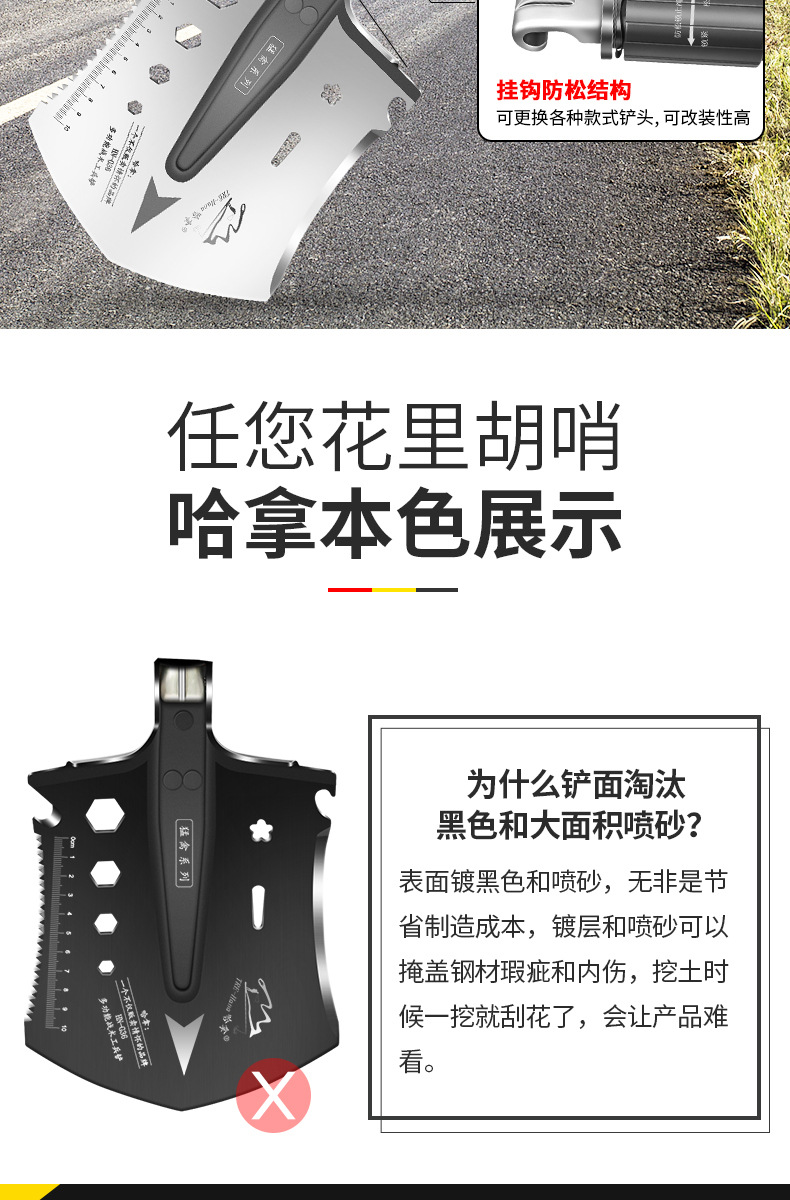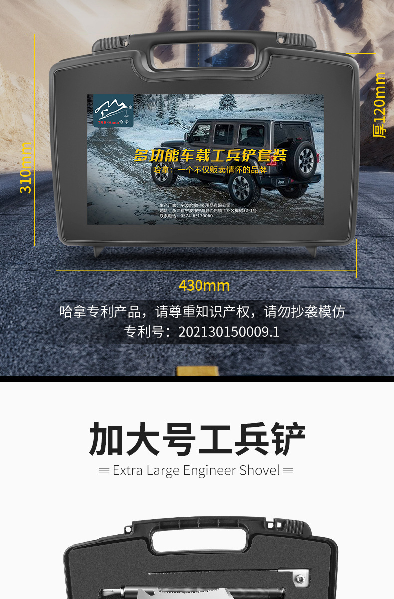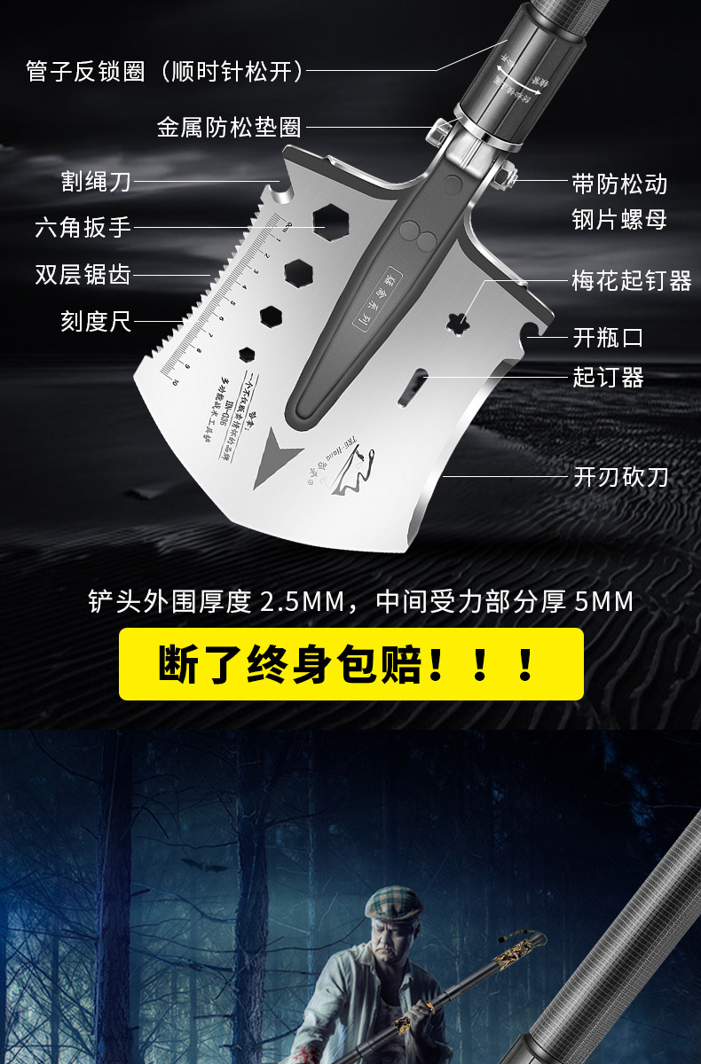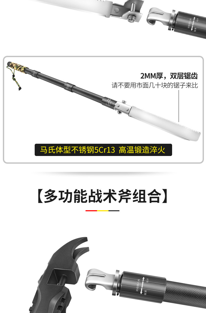 不锈钢工兵铲户外多功能车载套装可折叠军工铲野营抢险救援工具箱