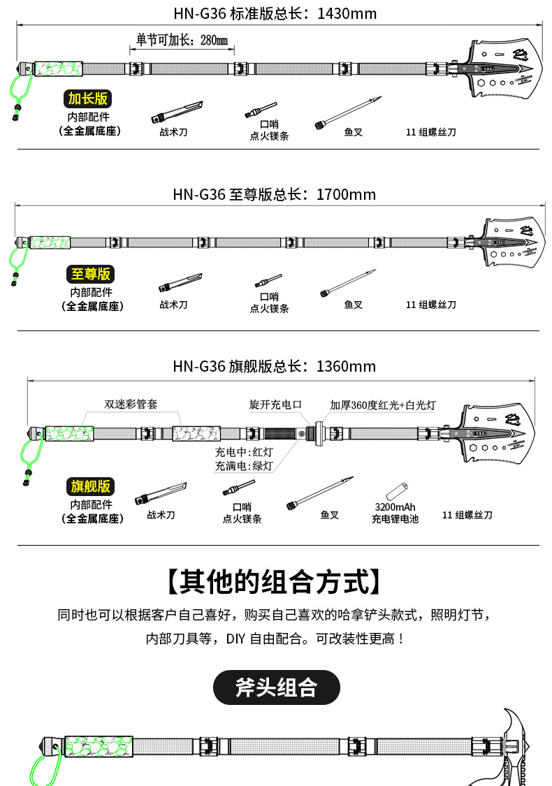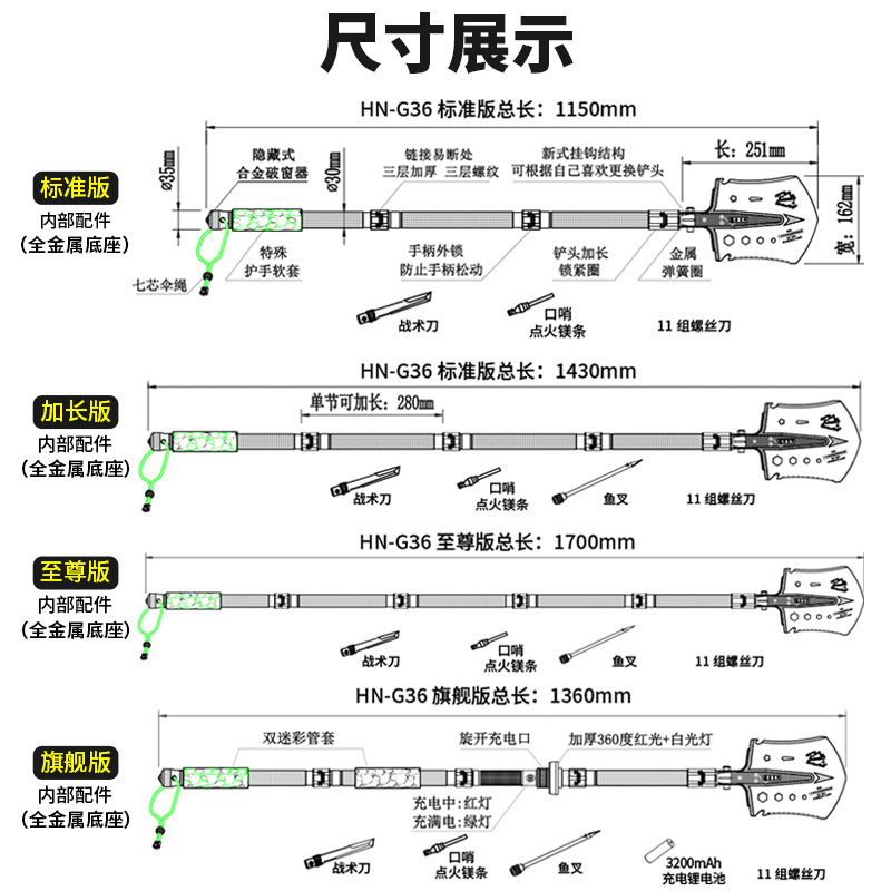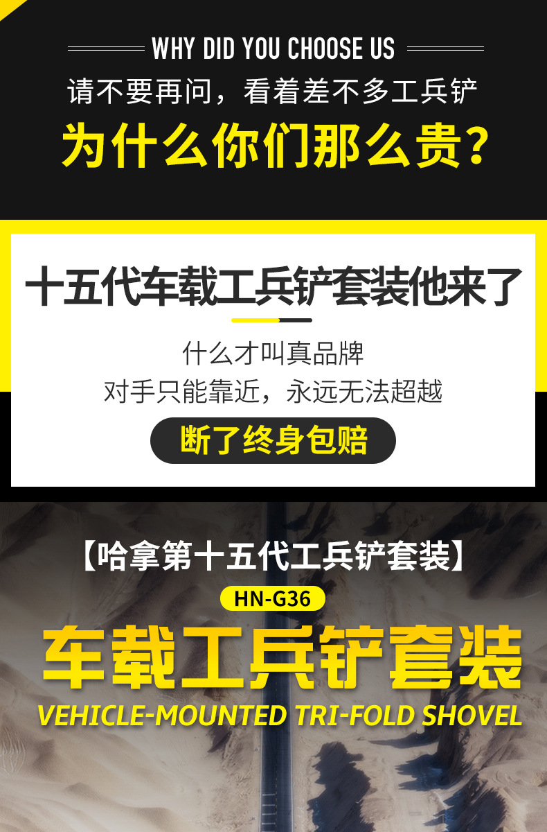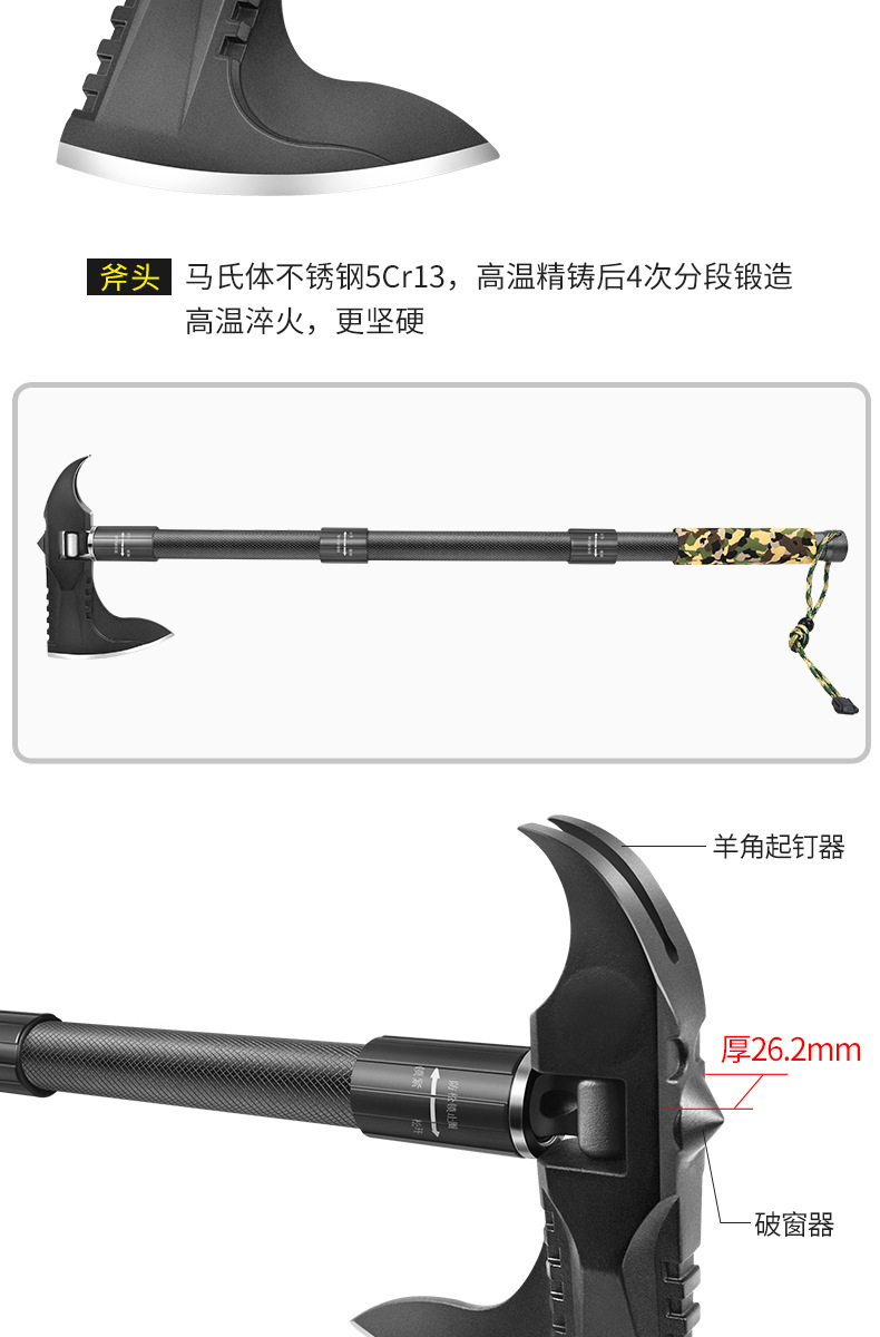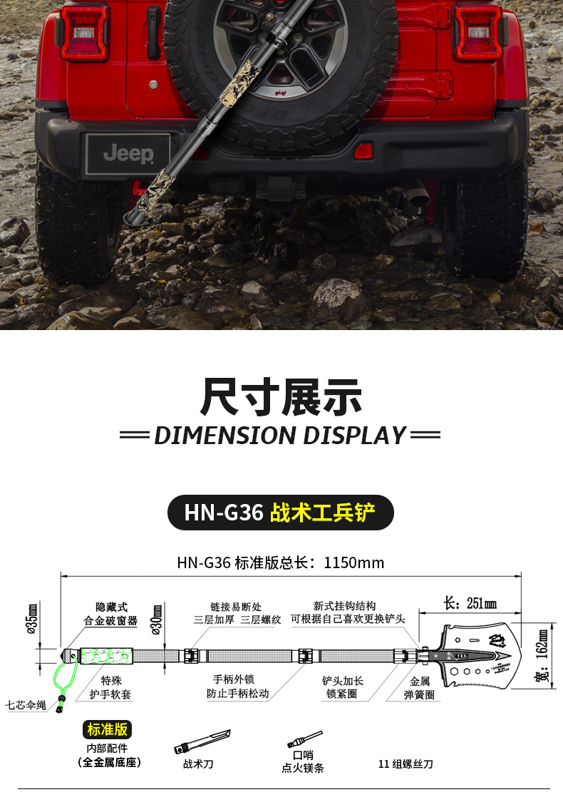 不锈钢工兵铲户外多功能车载套装可折叠军工铲野营抢险救援工具箱