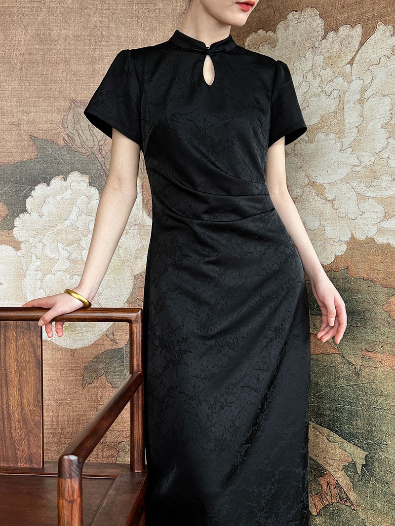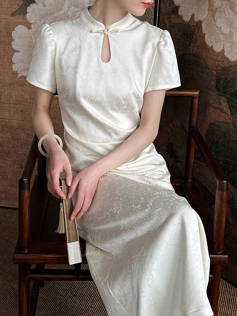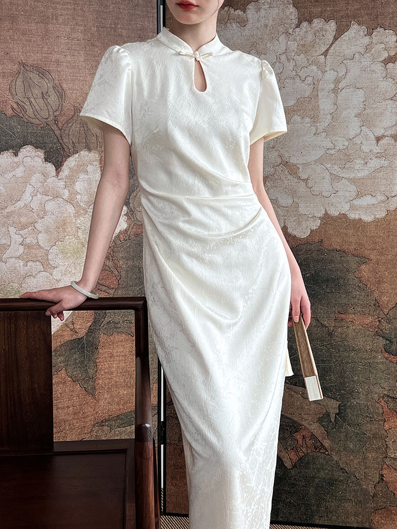 鹿西 高级感收腰宫廷国风提花改良旗袍礼服连衣裙新中式长裙5060
