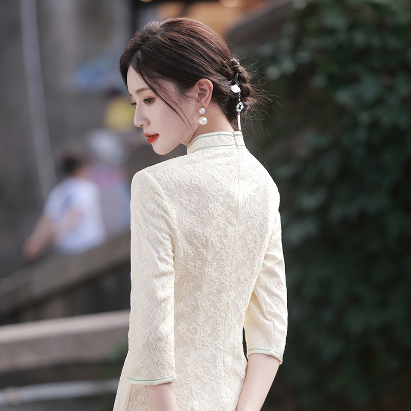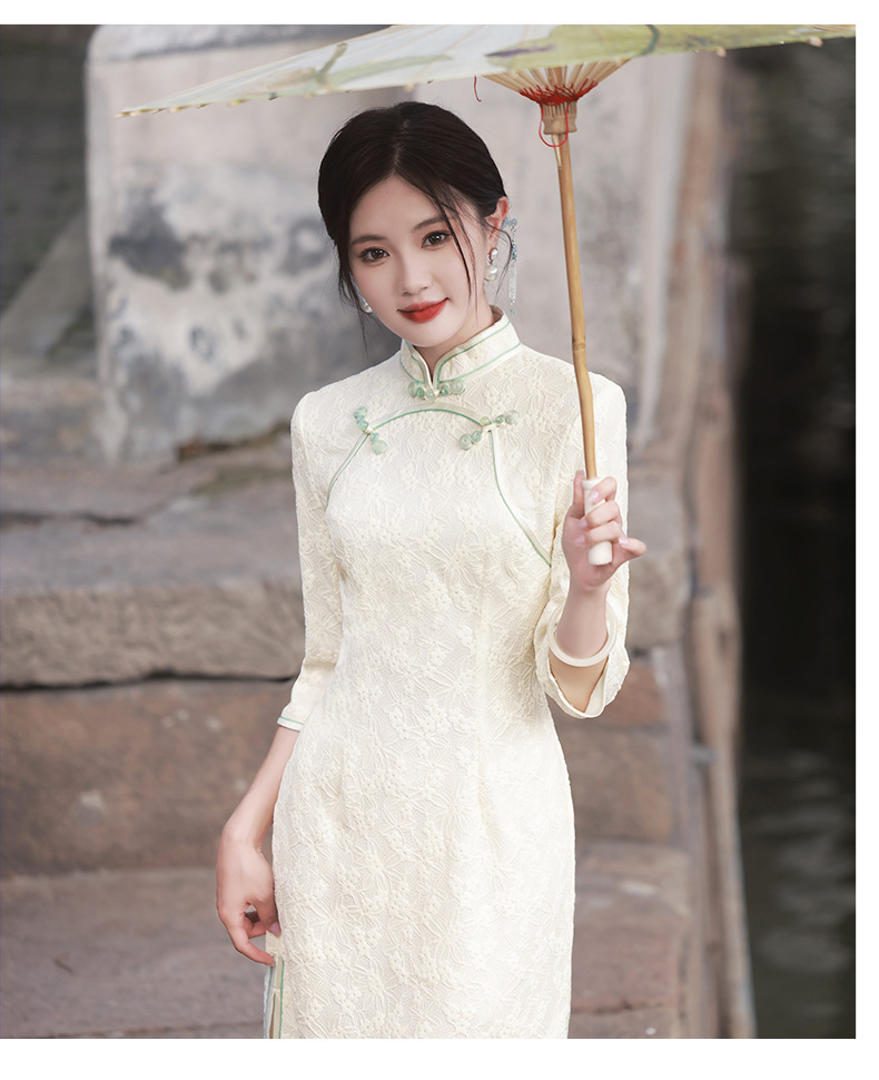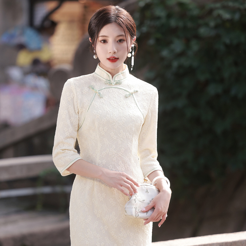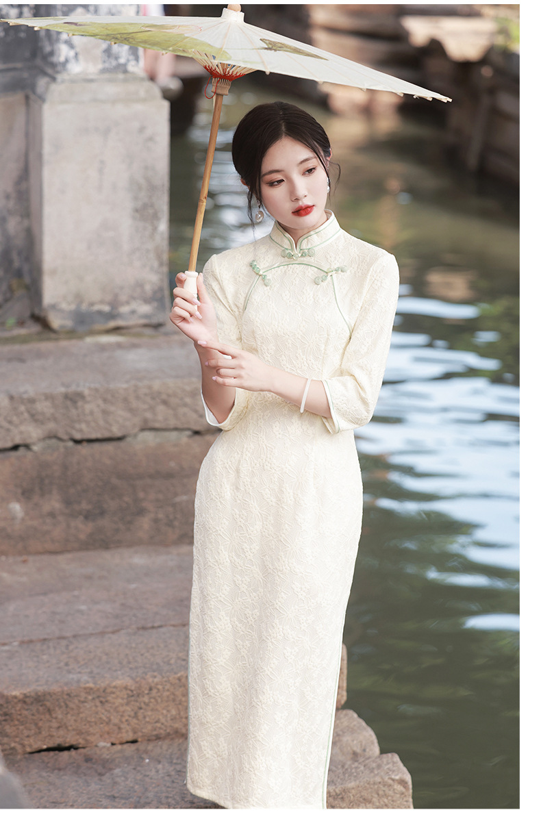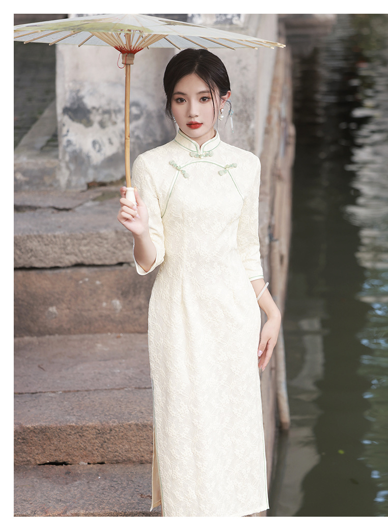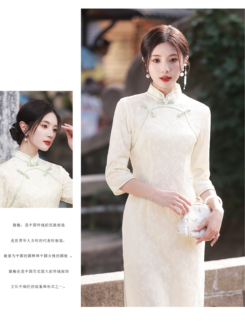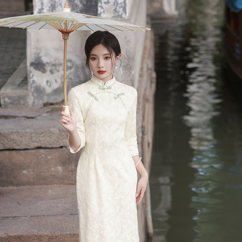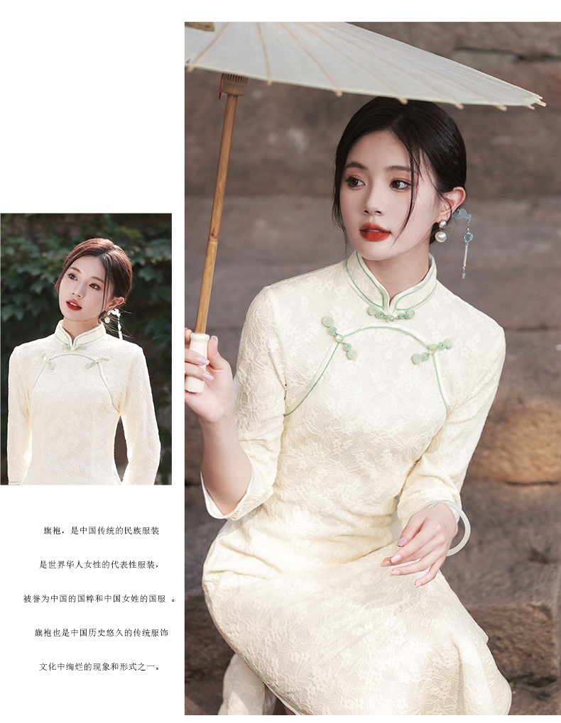 仟金公主新品2024春款长款雪尼尔连衣裙 清新文艺少女年轻旗袍