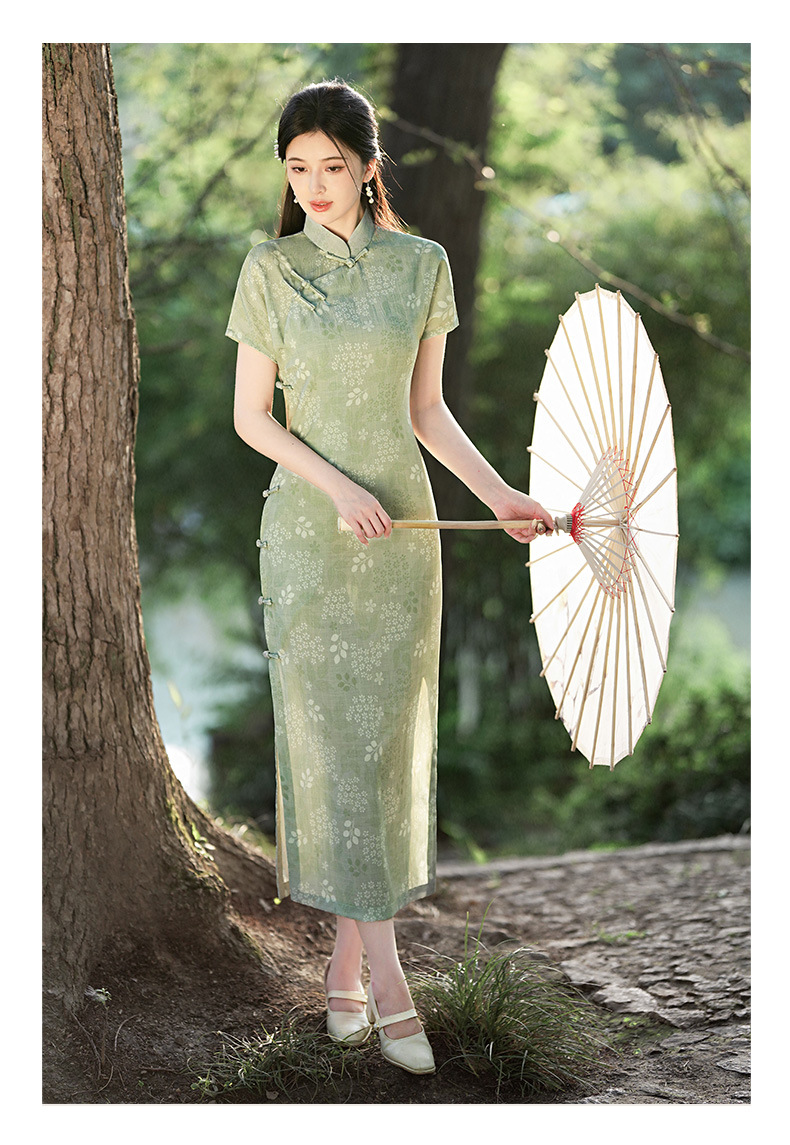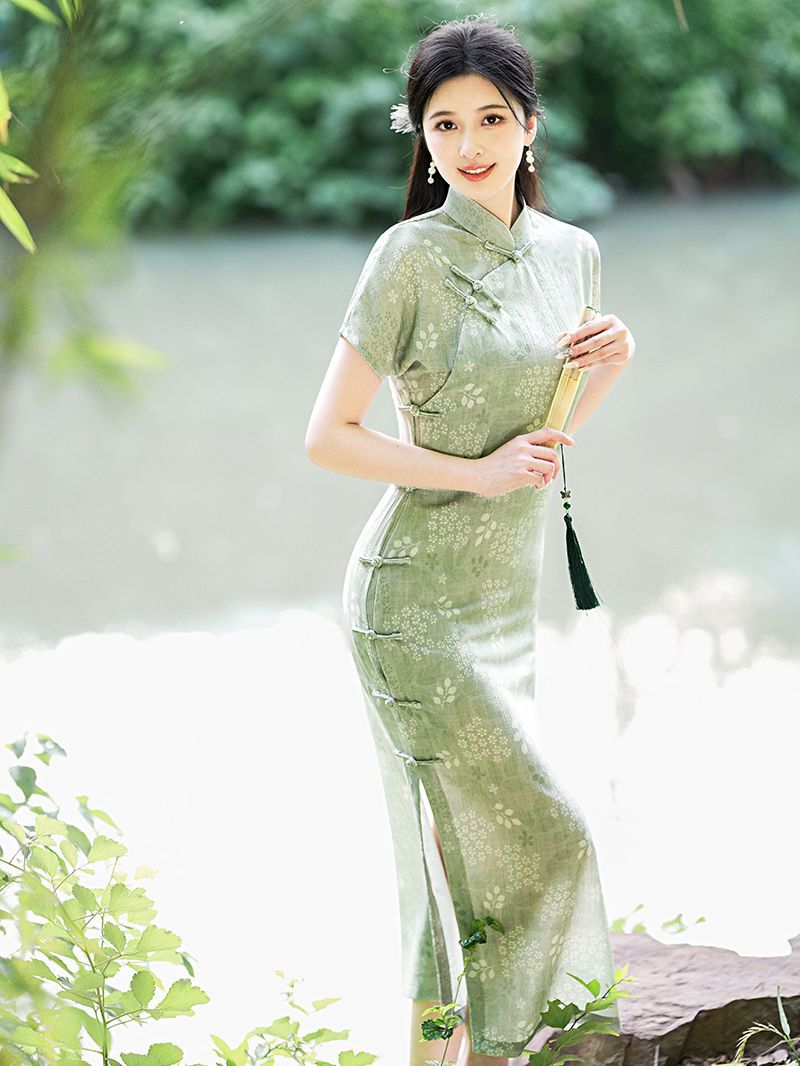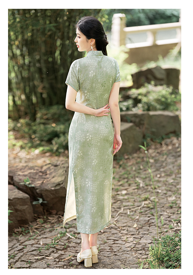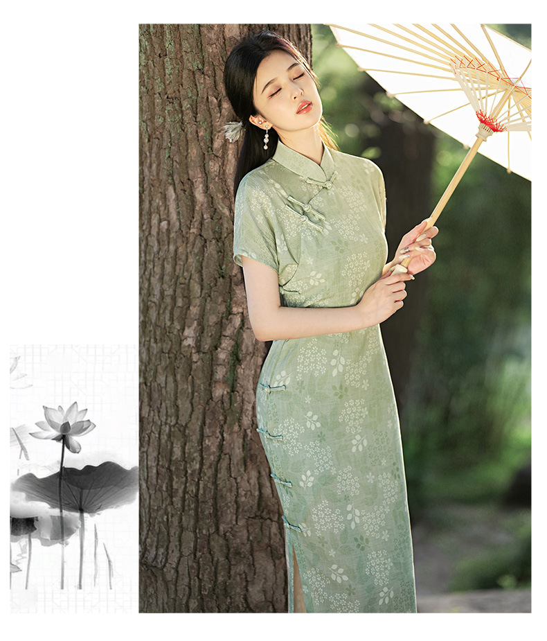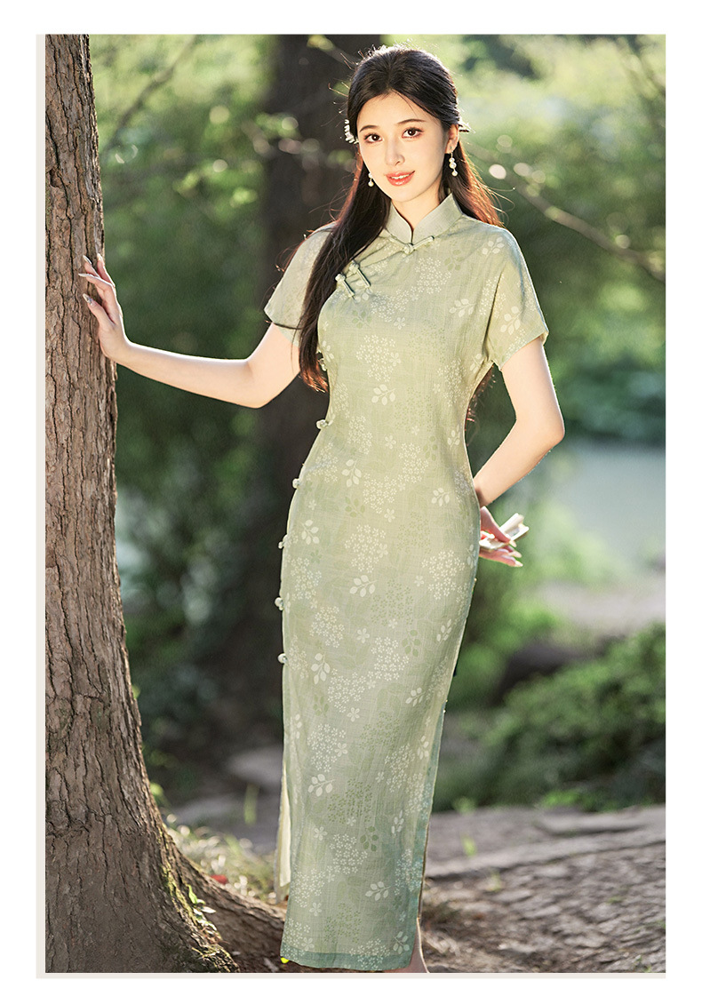 2023夏季新款复古素雅国风古法平裁无省一片式全开襟中式长款旗袍