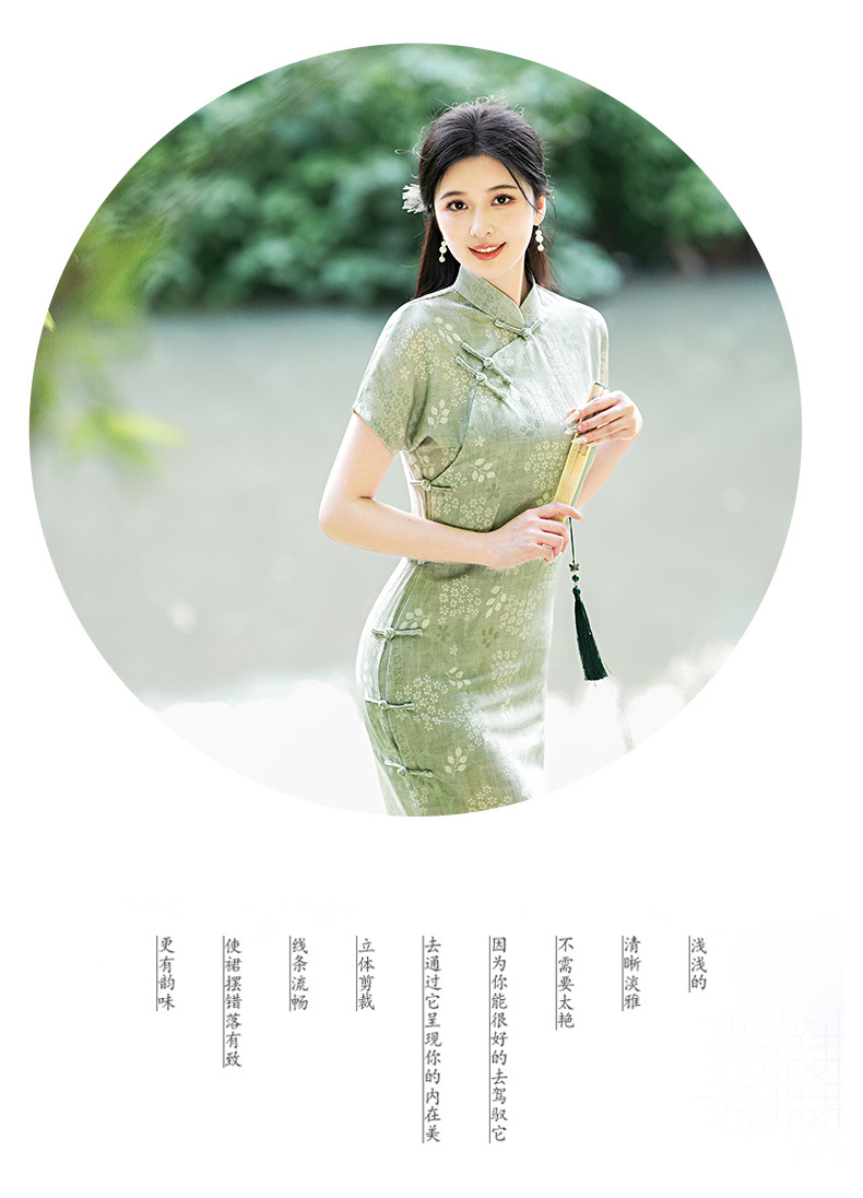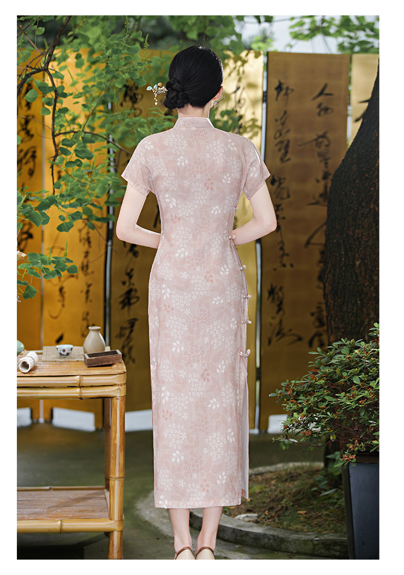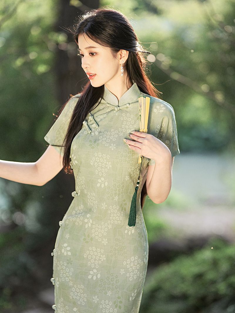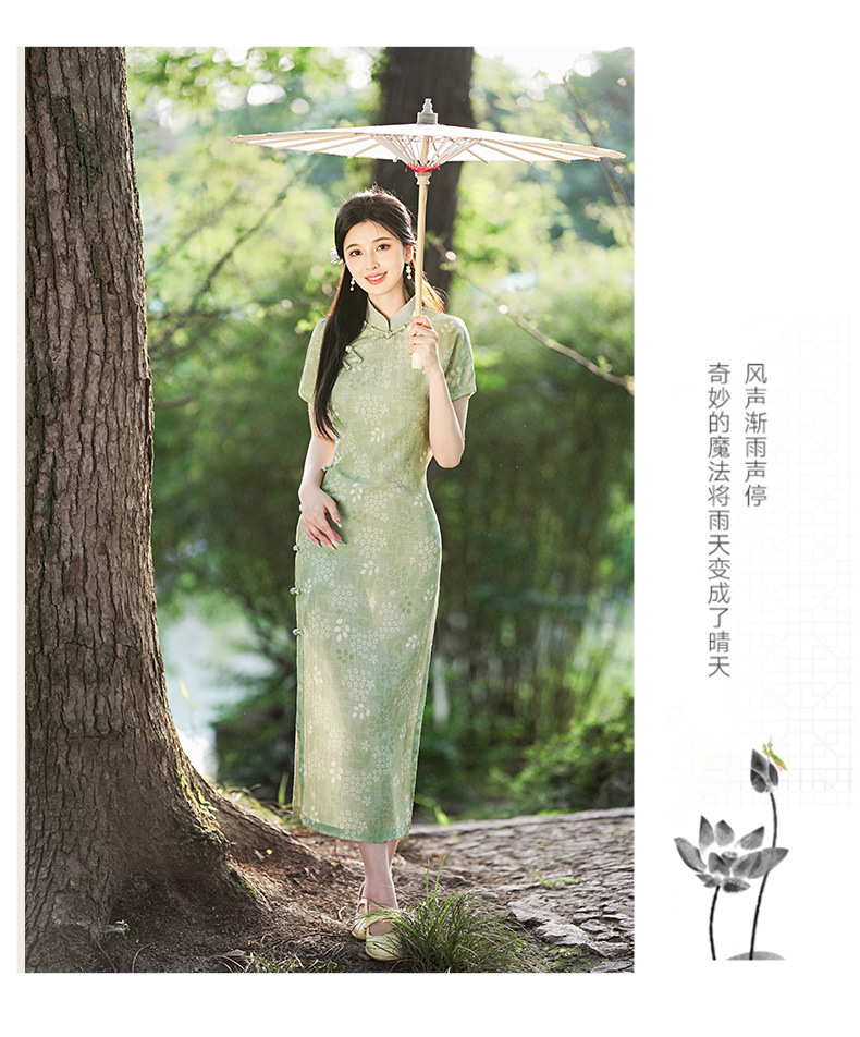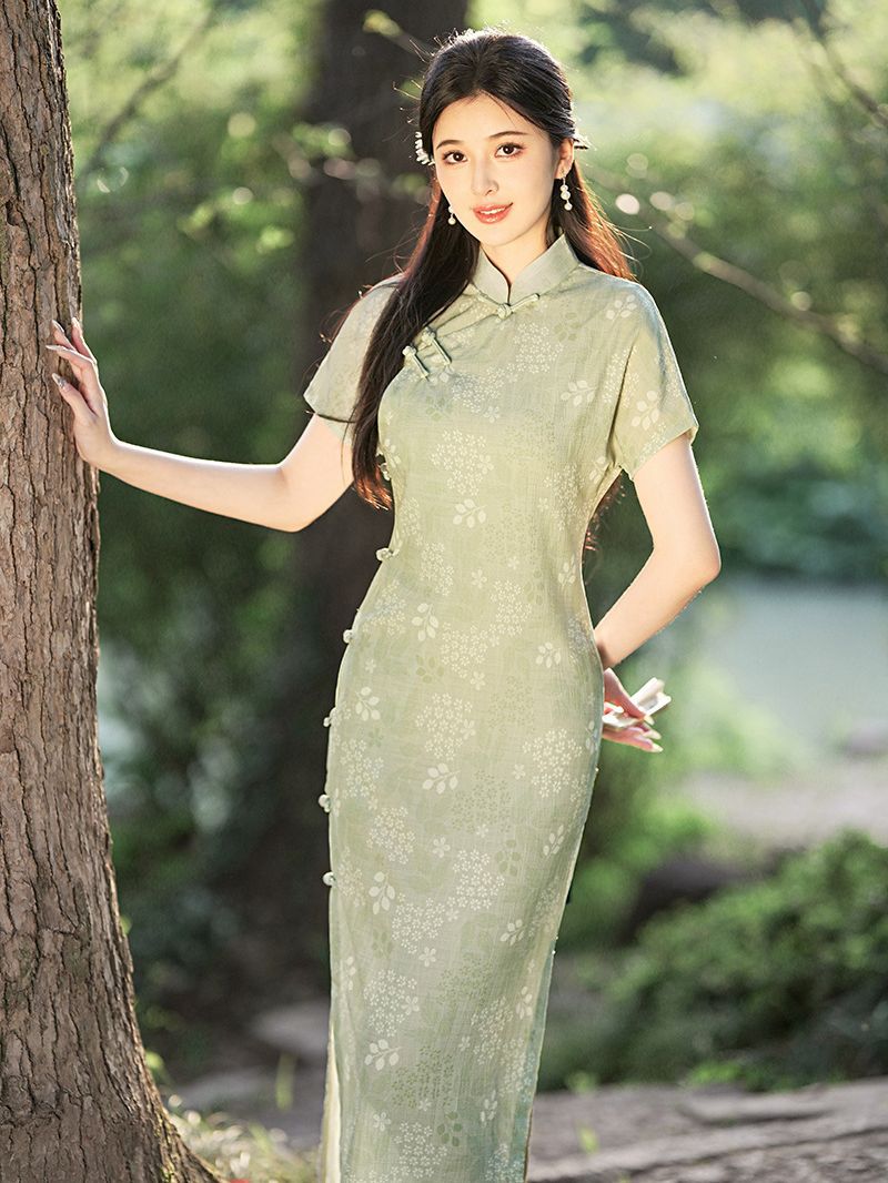 2023夏季新款复古素雅国风古法平裁无省一片式全开襟中式长款旗袍