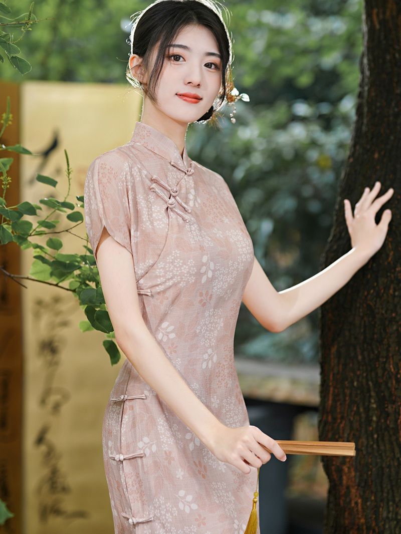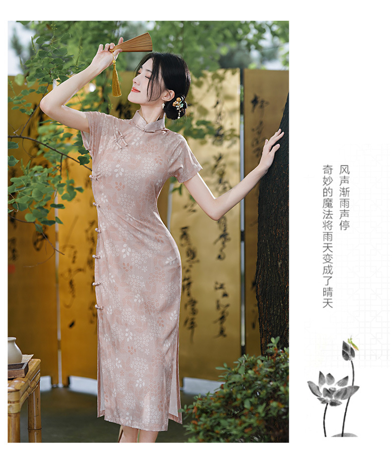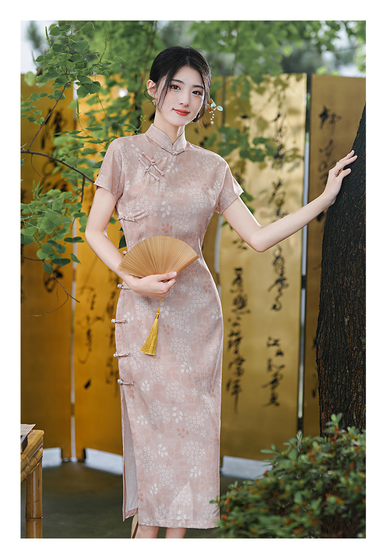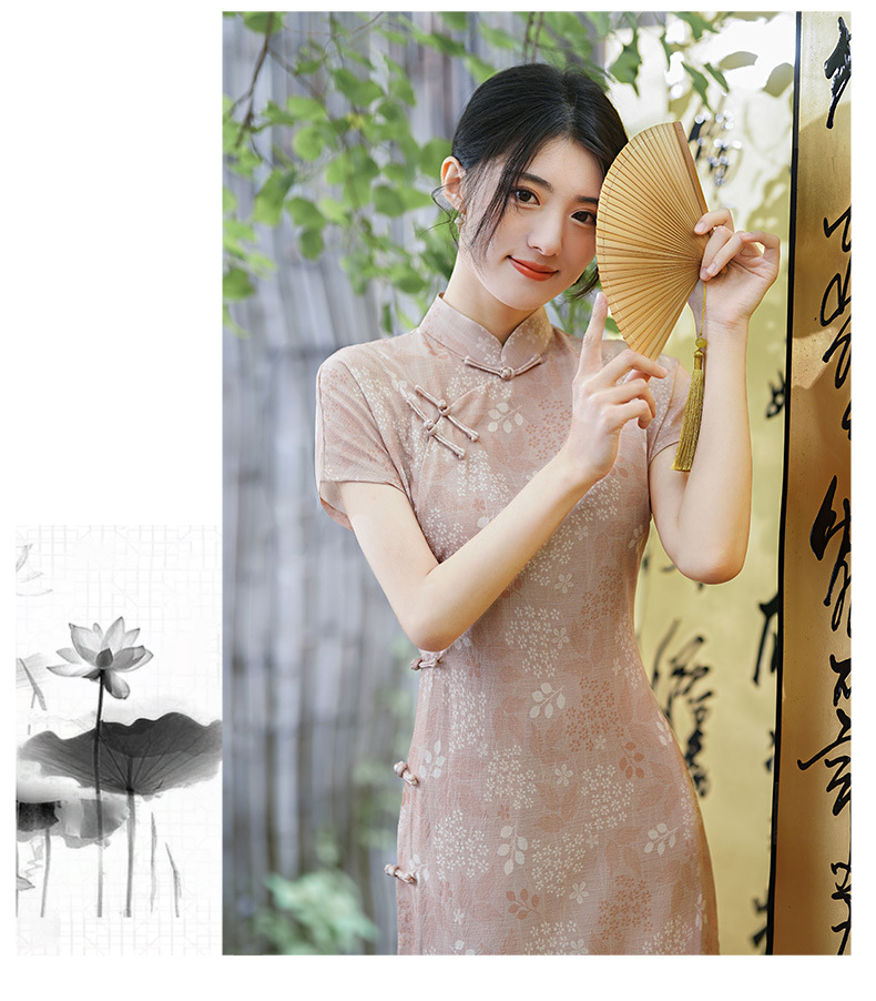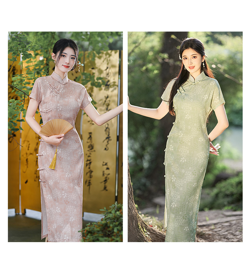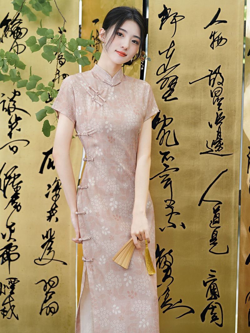 2023夏季新款复古素雅国风古法平裁无省一片式全开襟中式长款旗袍