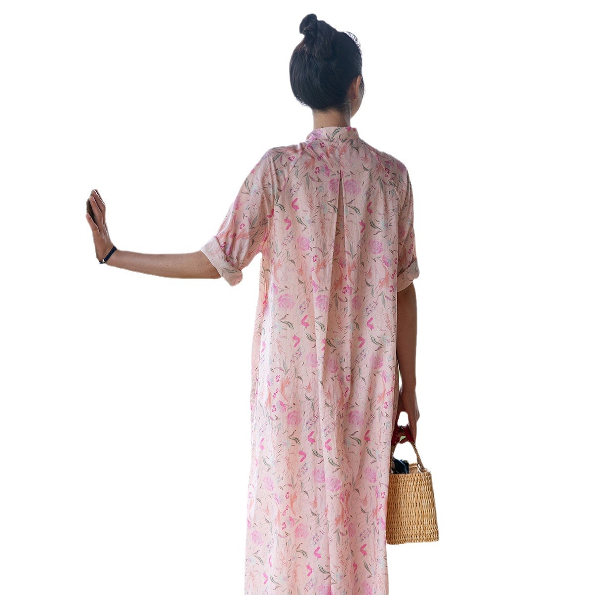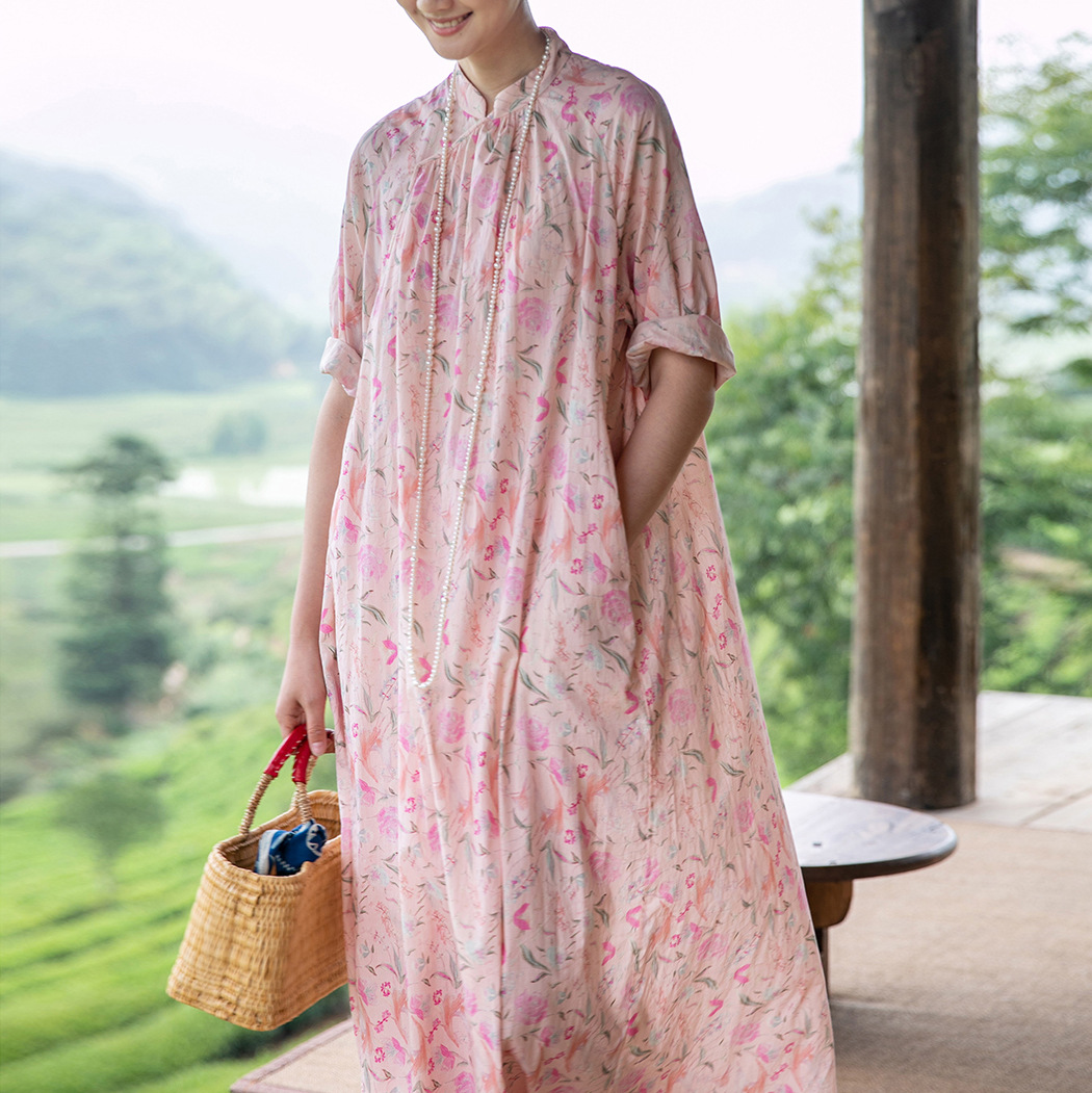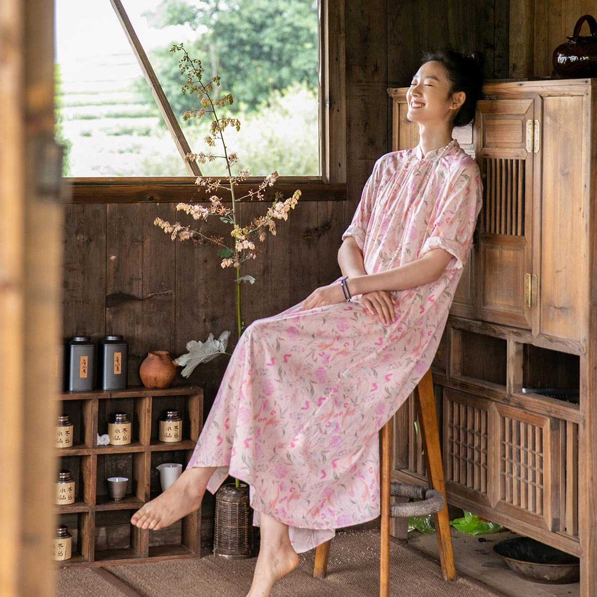 苎麻印花连衣裙女 新款旅拍度假裙 浪漫碎花文艺旗袍 禅韵A1243