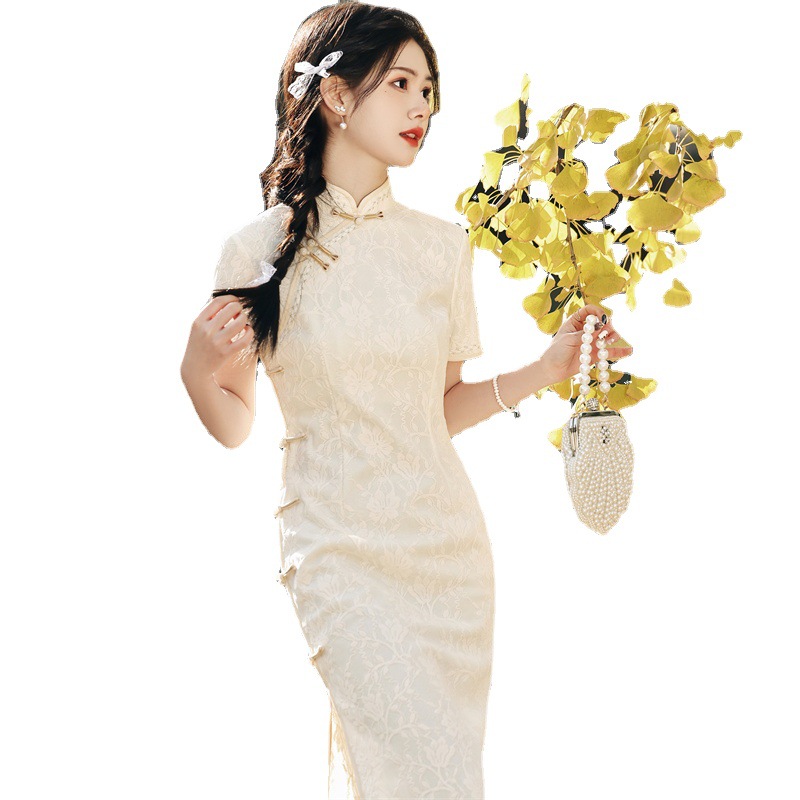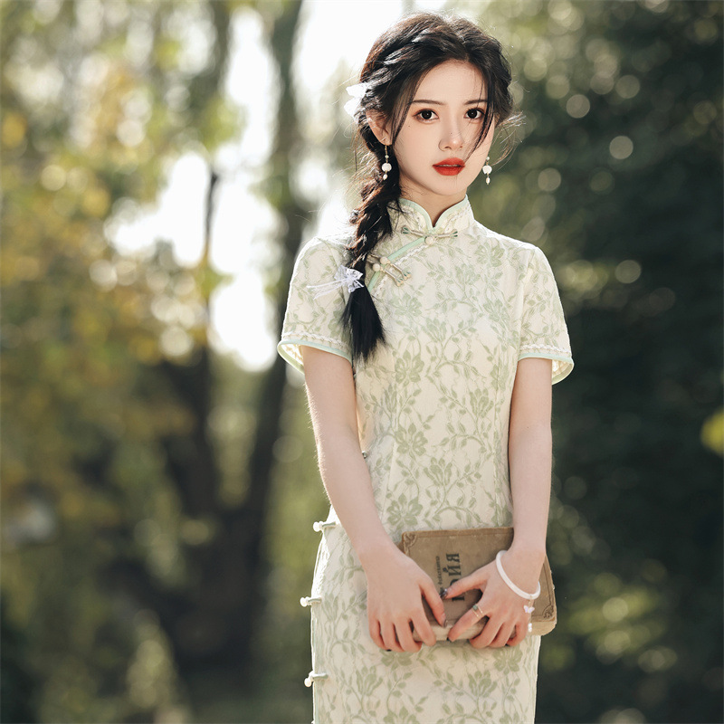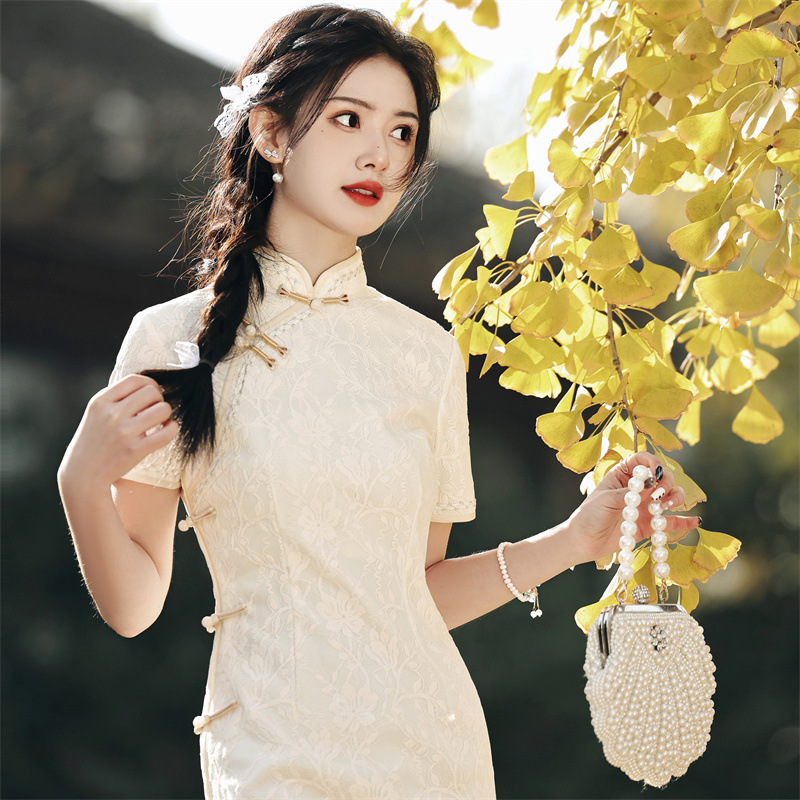 2023春夏新款复合蕾丝长款旗袍连衣日常改良民国风旗袍少女年轻款