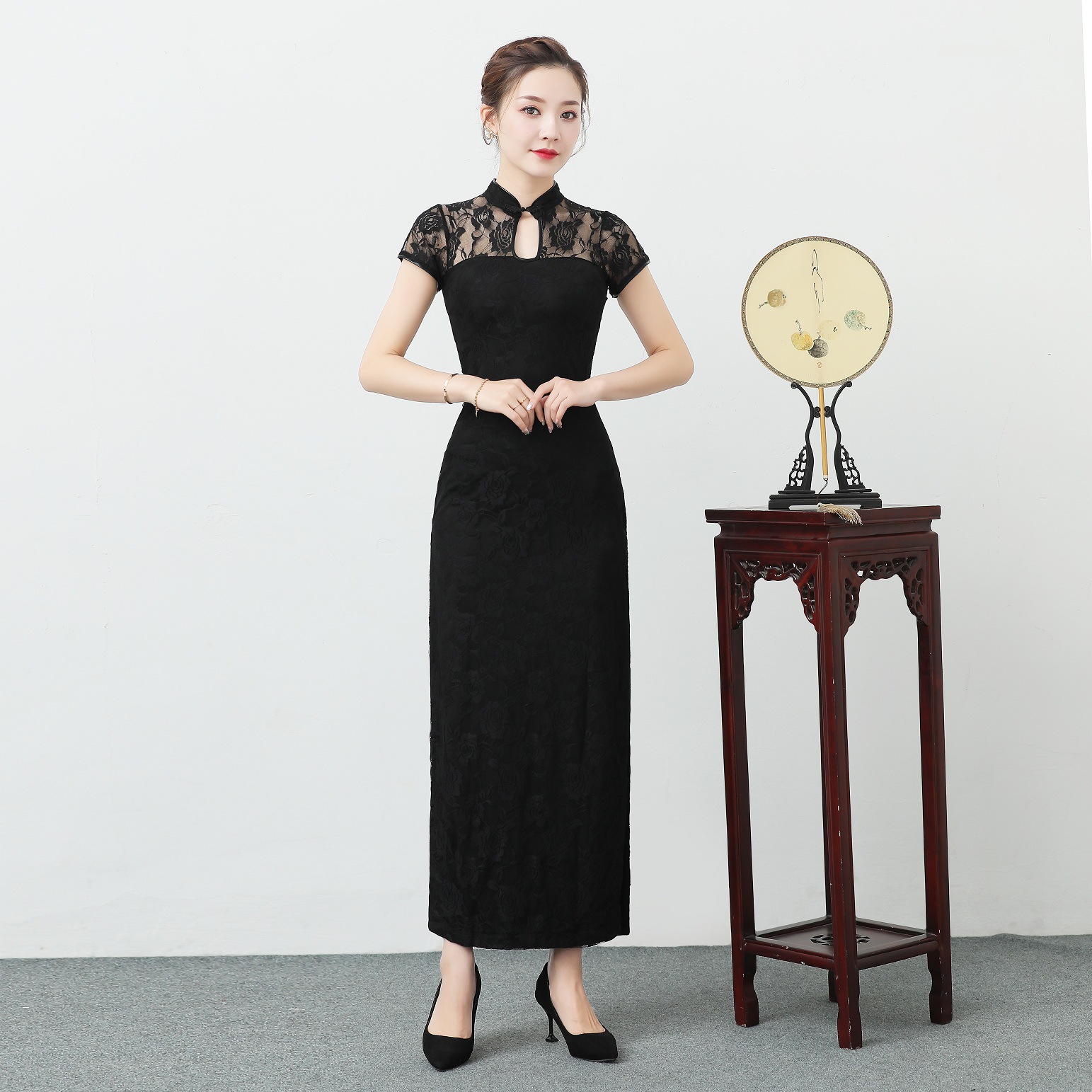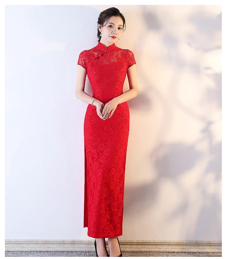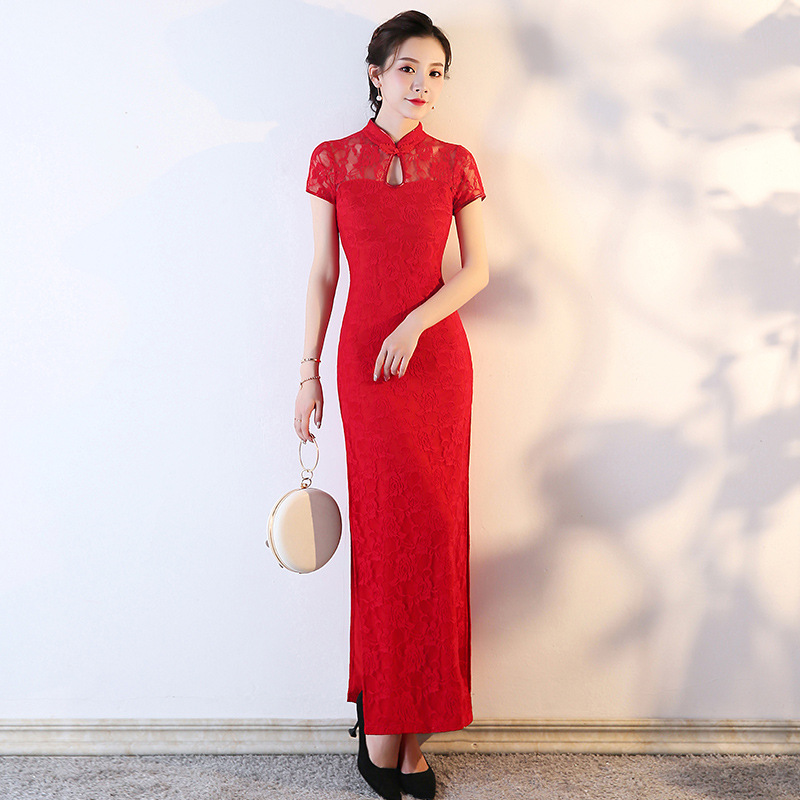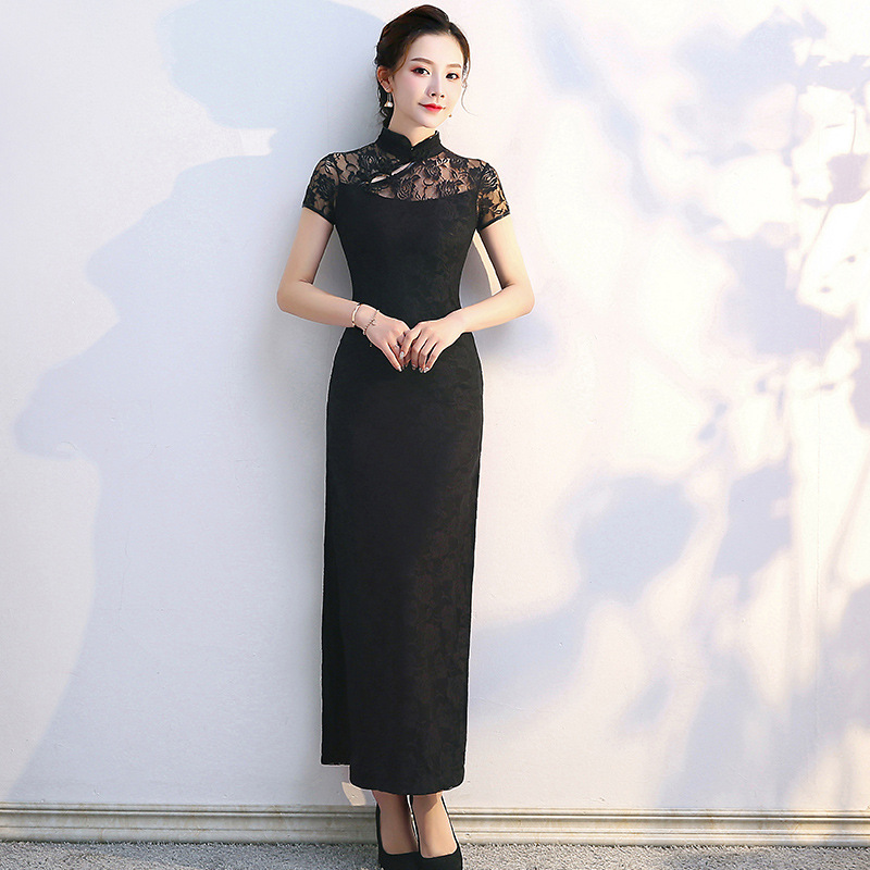 改良版旗袍蕾丝旗袍演出服走秀新品夏季长款改良上海滩礼仪迎宾