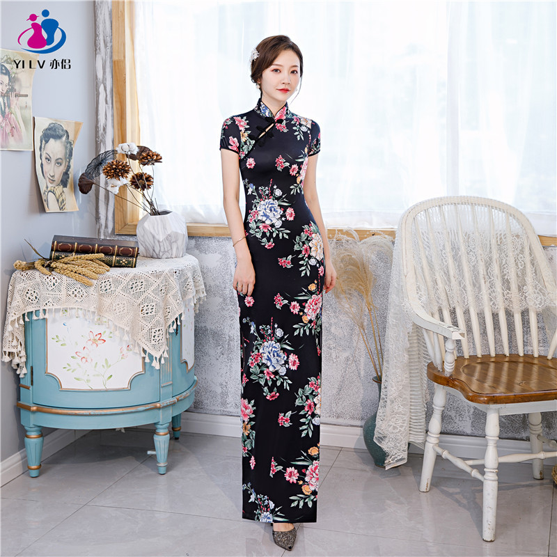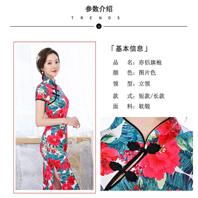 改良旗袍女2023新款四面弹日常走秀演出服修身少女旗袍裙诚招代理