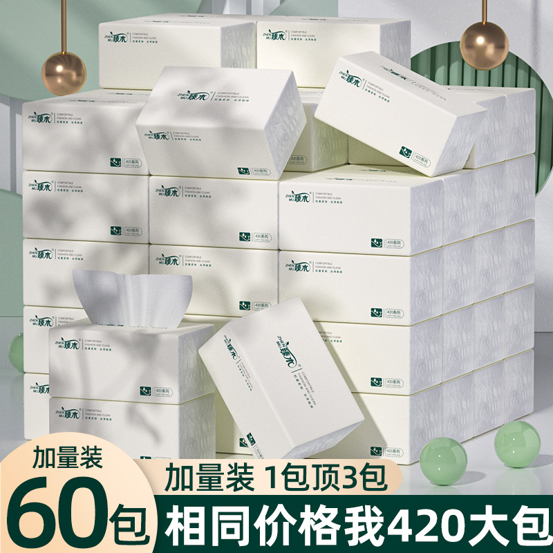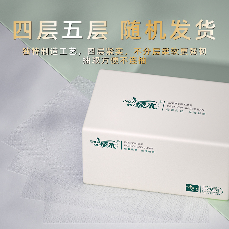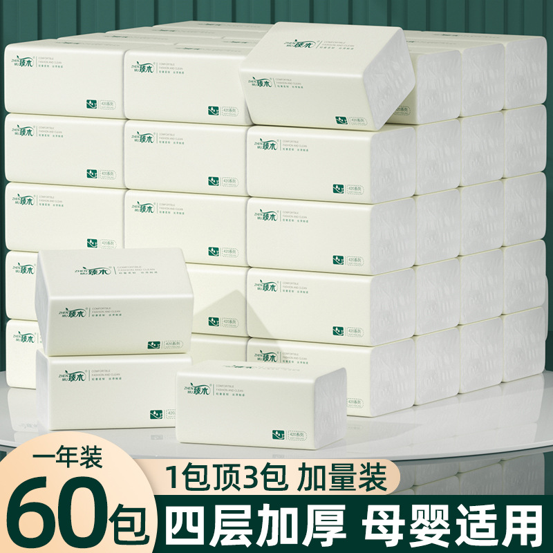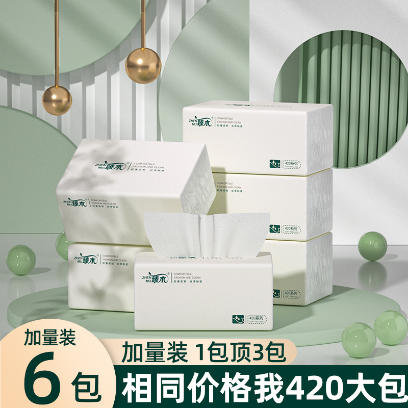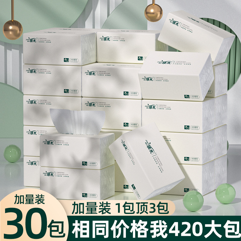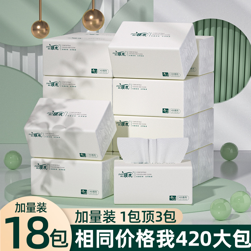 臻木纯白抽纸家庭版实惠装大包420系四层厚实卫生纸抽取式面巾纸