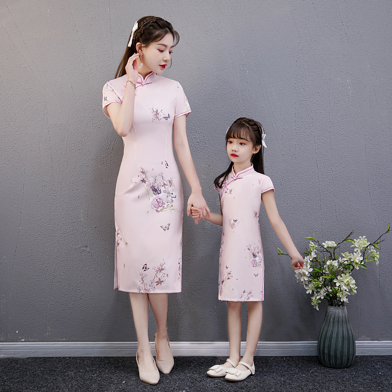 2023亲子装旗袍连衣裙中国风夏季洋气夏年轻旗袍母女旗袍四面弹裙