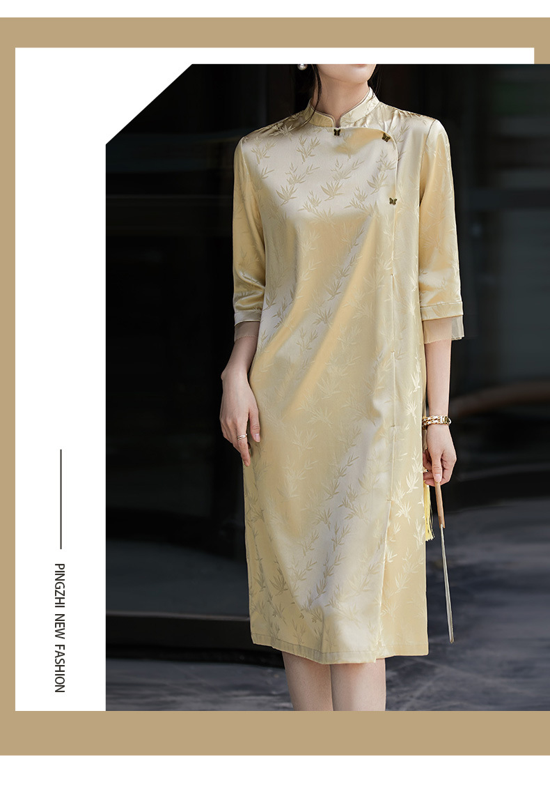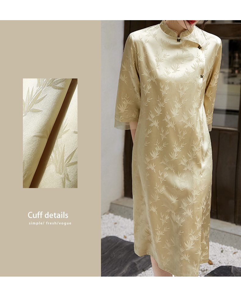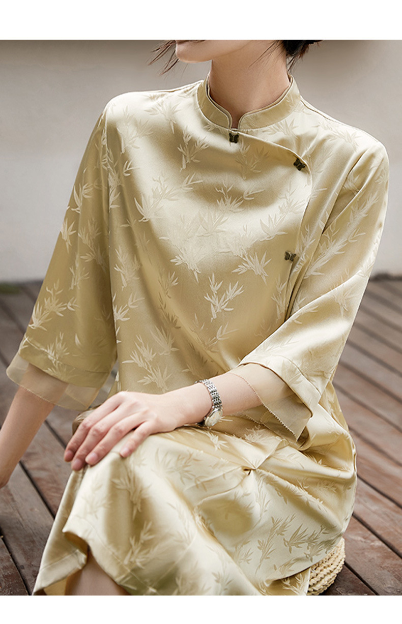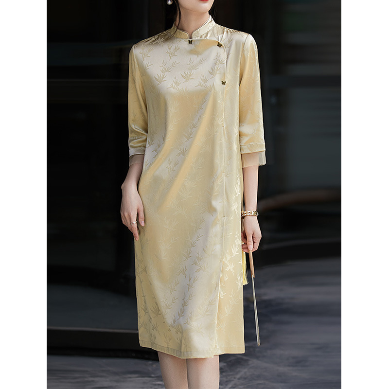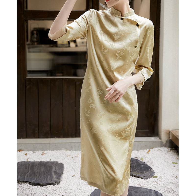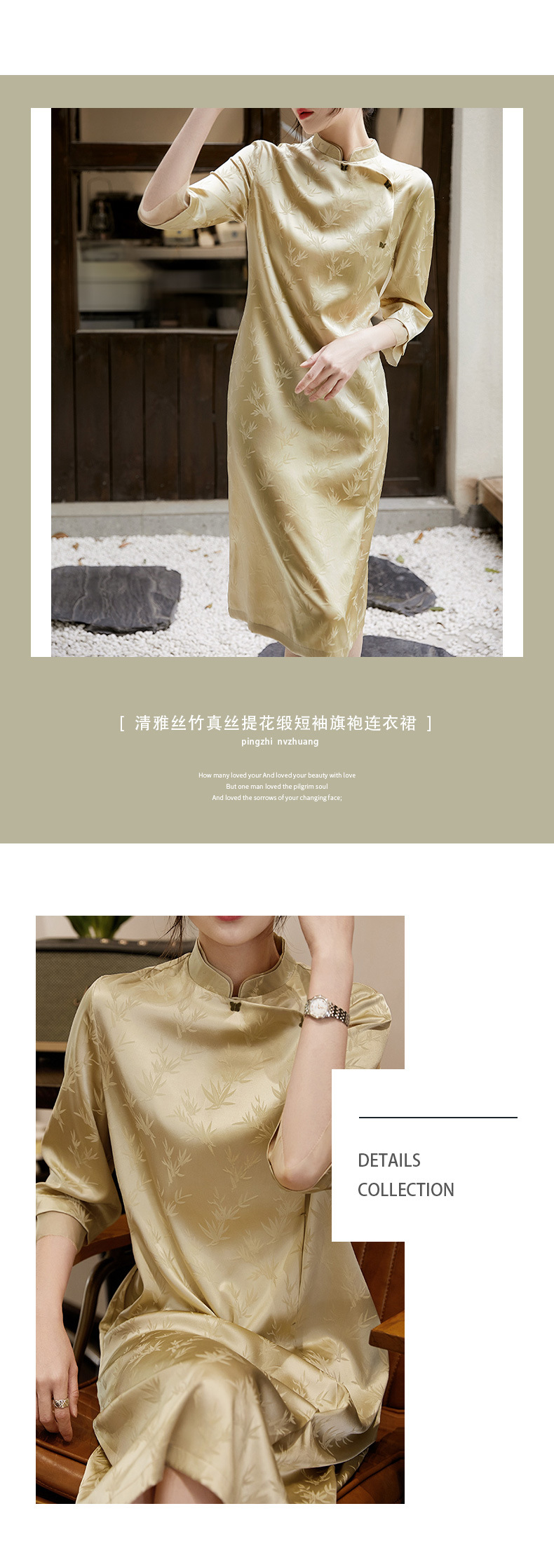真丝提花质感桑蚕丝连衣裙国风新中式裙子改良旗袍春夏季女中长款