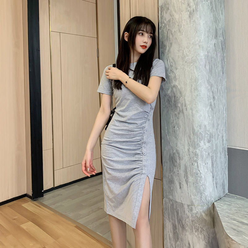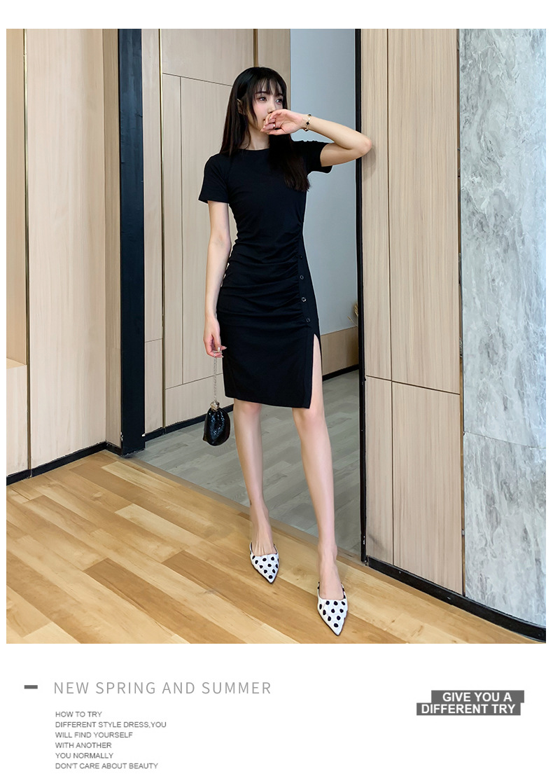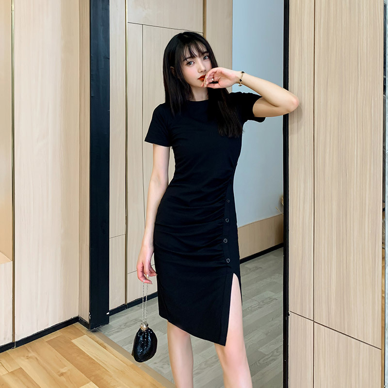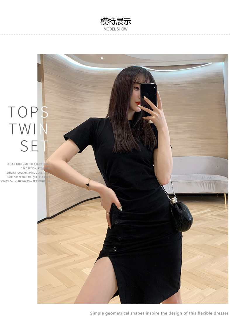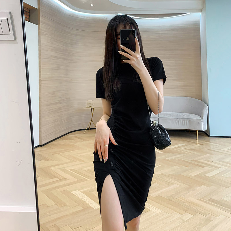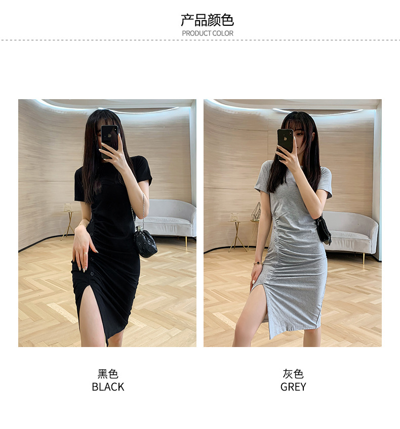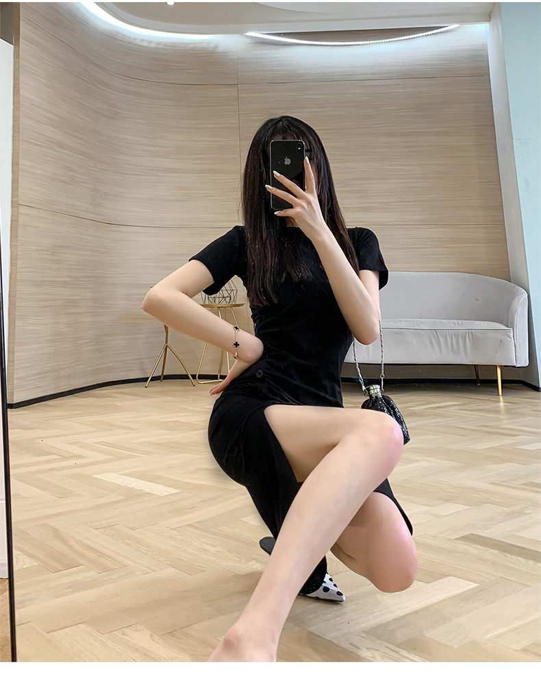 旗袍改良短袖气质连衣裙女夏纯棉2024新款黑裙纯欲风修身显瘦上衣