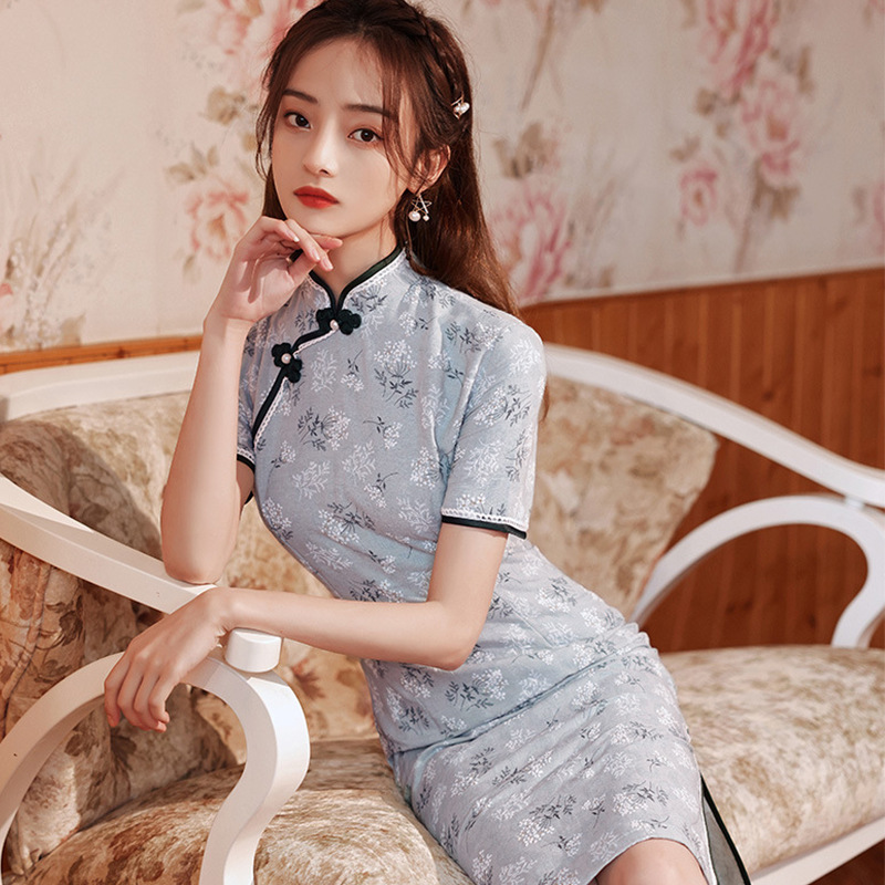 新款春夏棉麻改良旗袍日常绣花时尚复古年轻款少女旗袍连衣裙