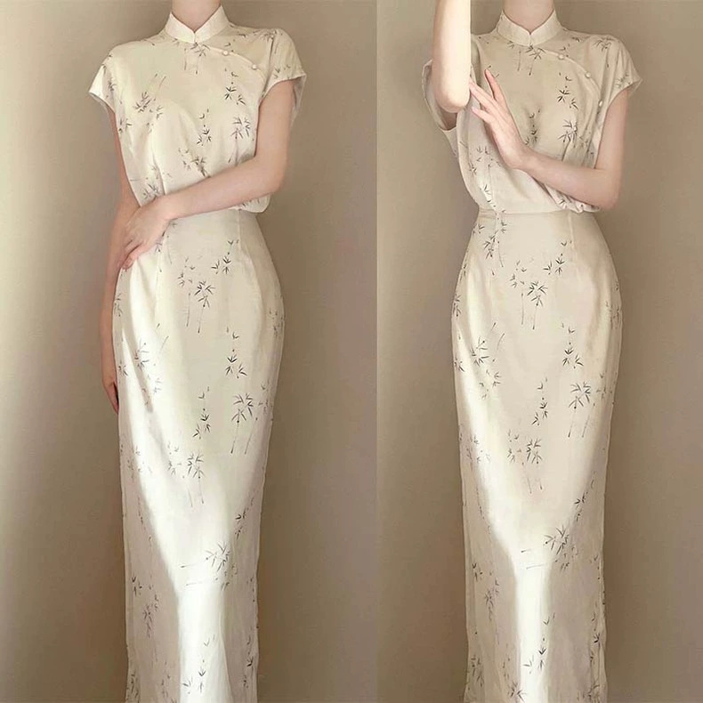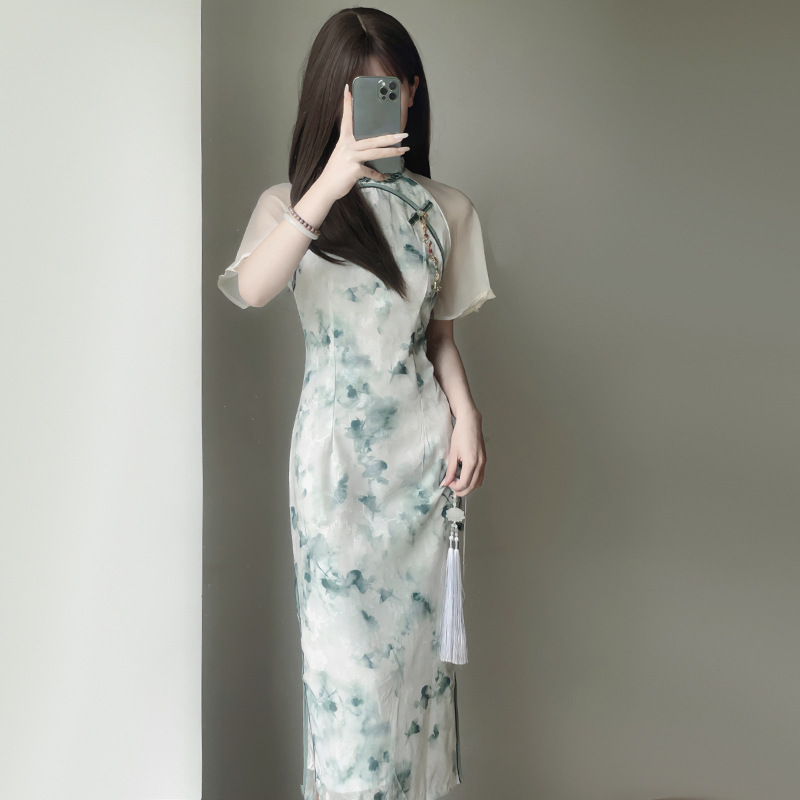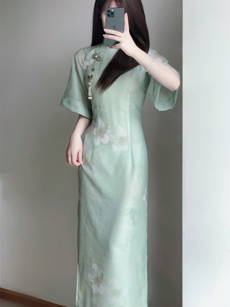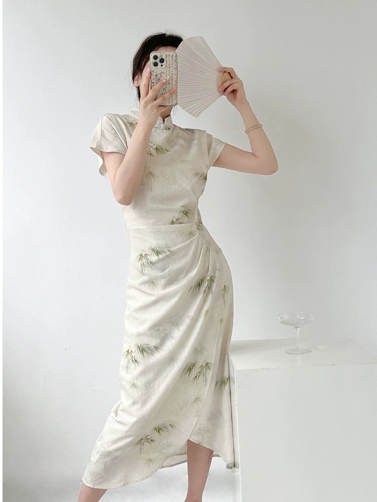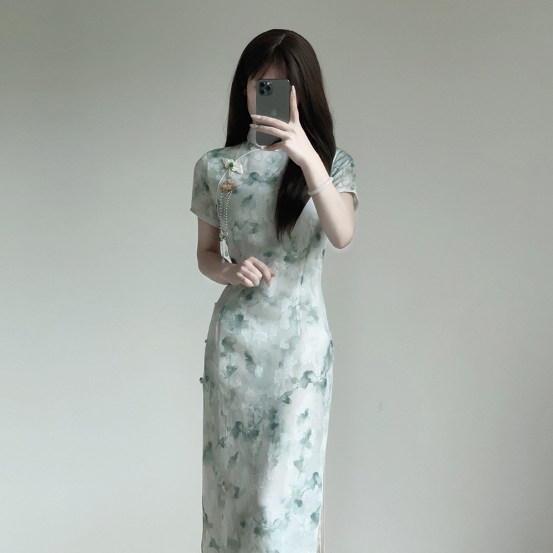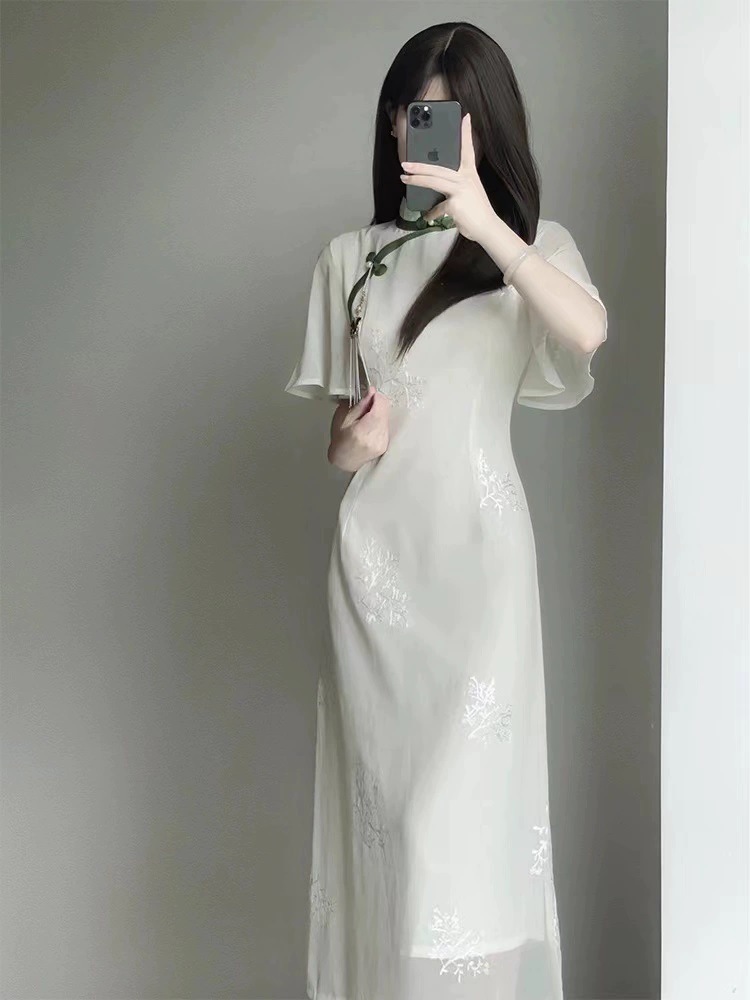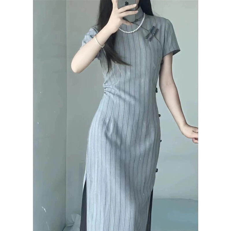 温婉复古民国风素雅旗袍2024年夏季新款年轻款少女改良连衣裙长款