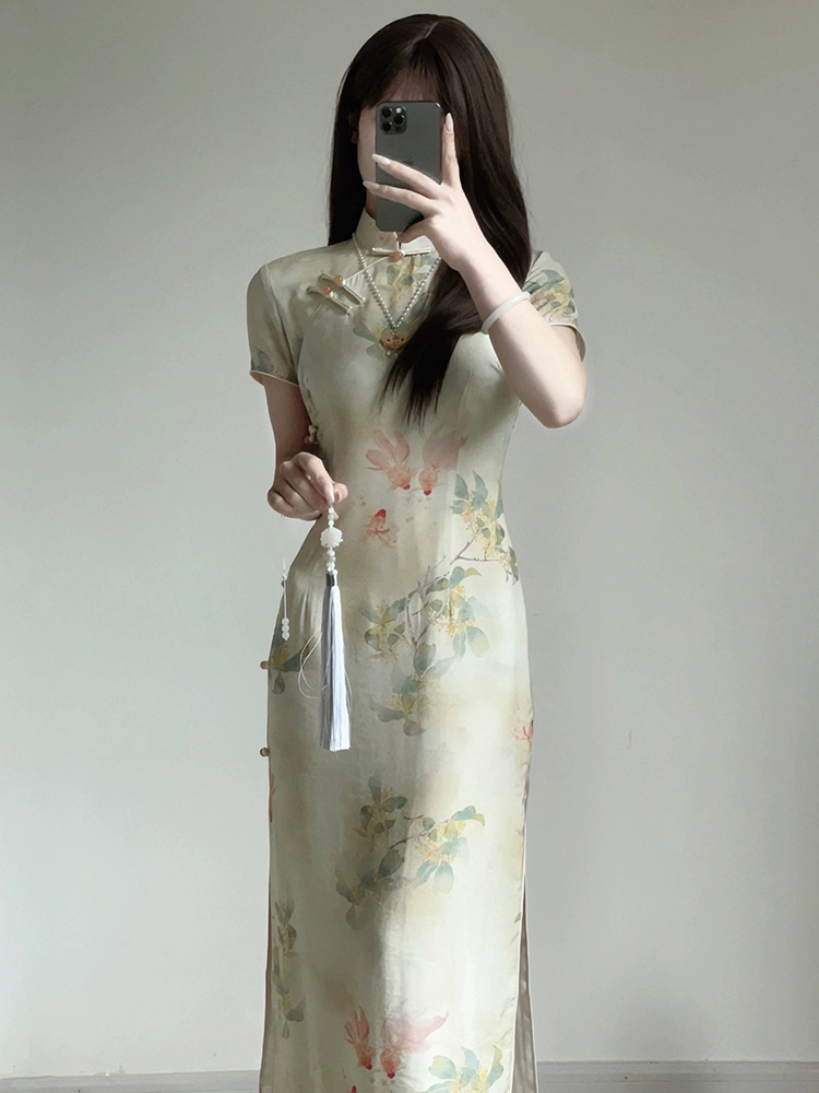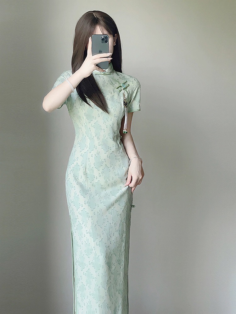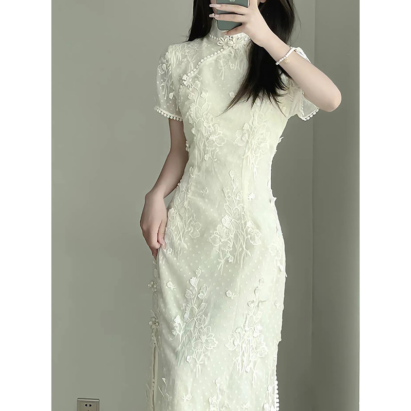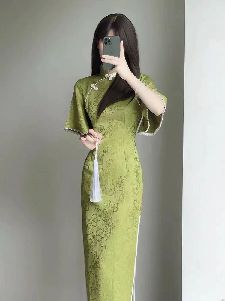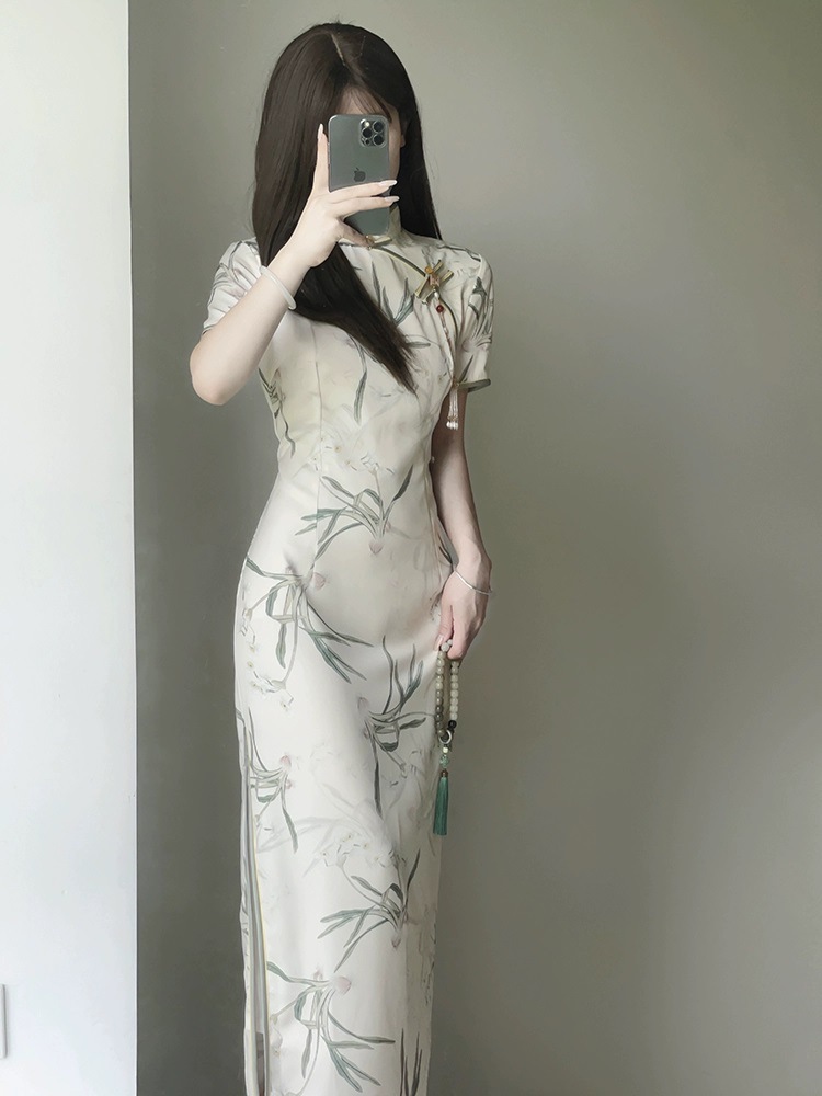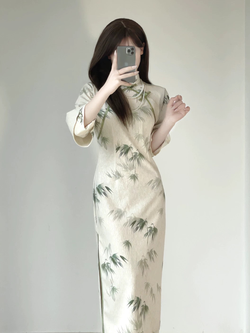 温婉复古民国风素雅旗袍2024年夏季新款年轻款少女改良连衣裙长款