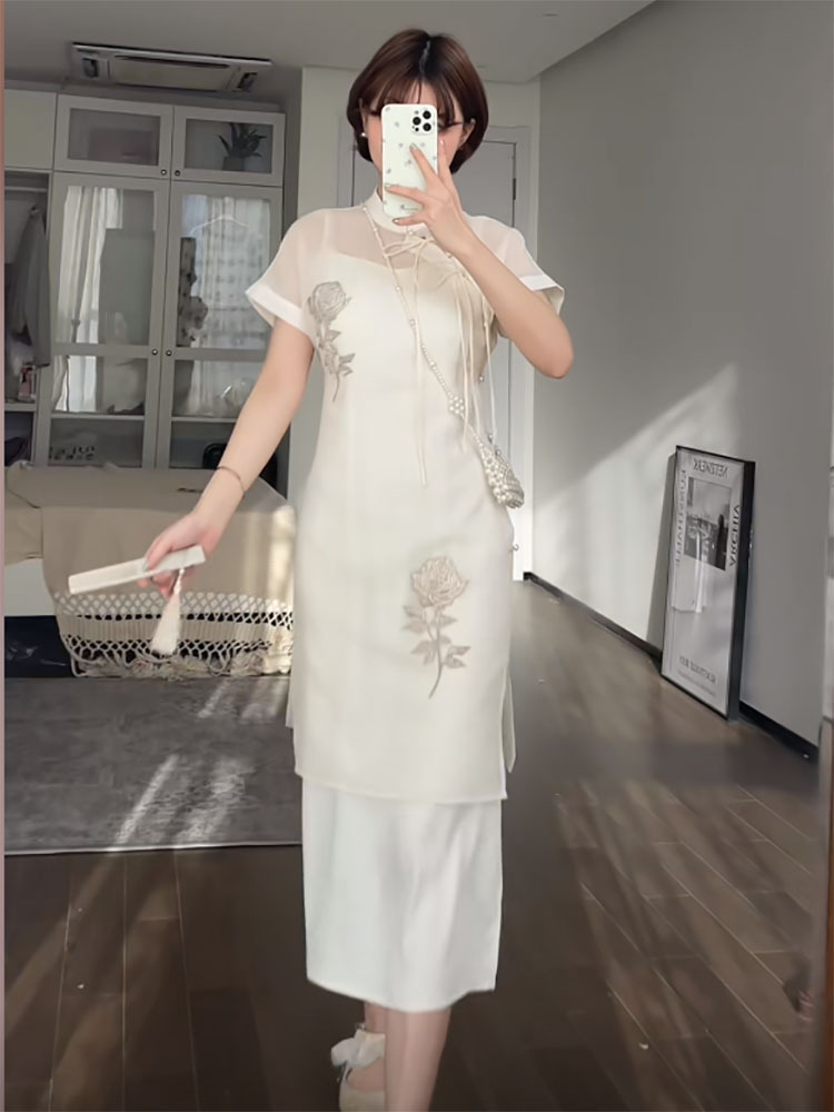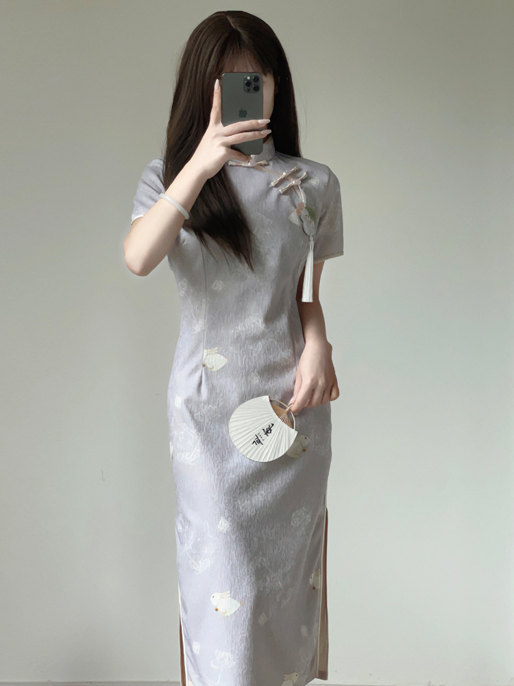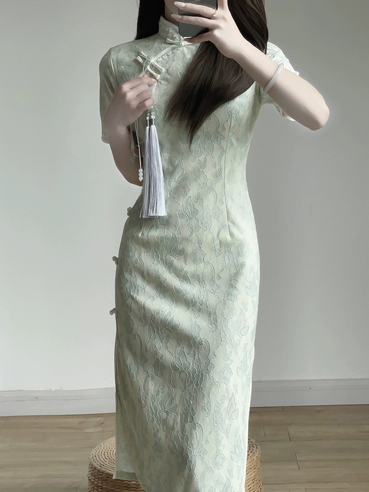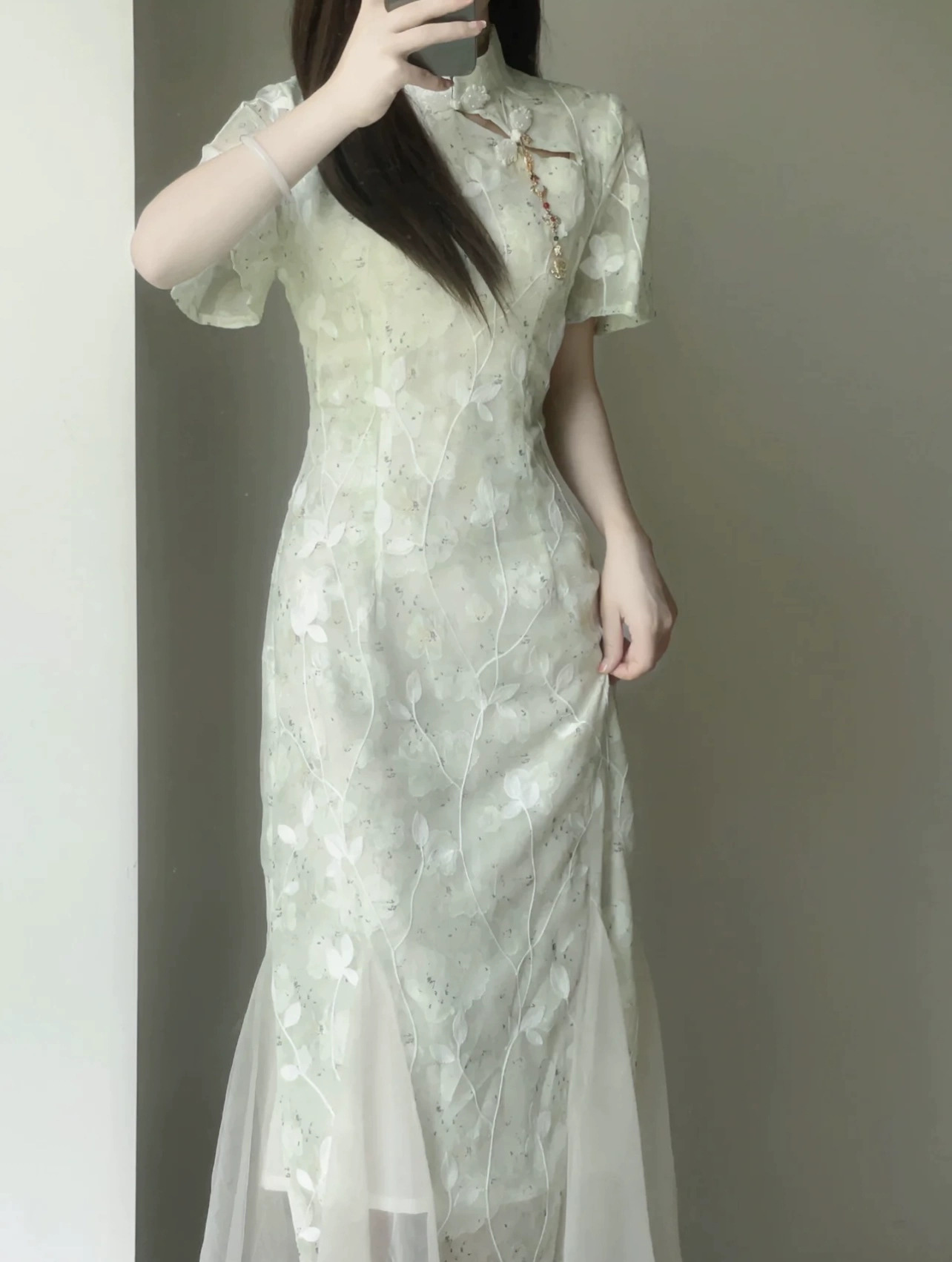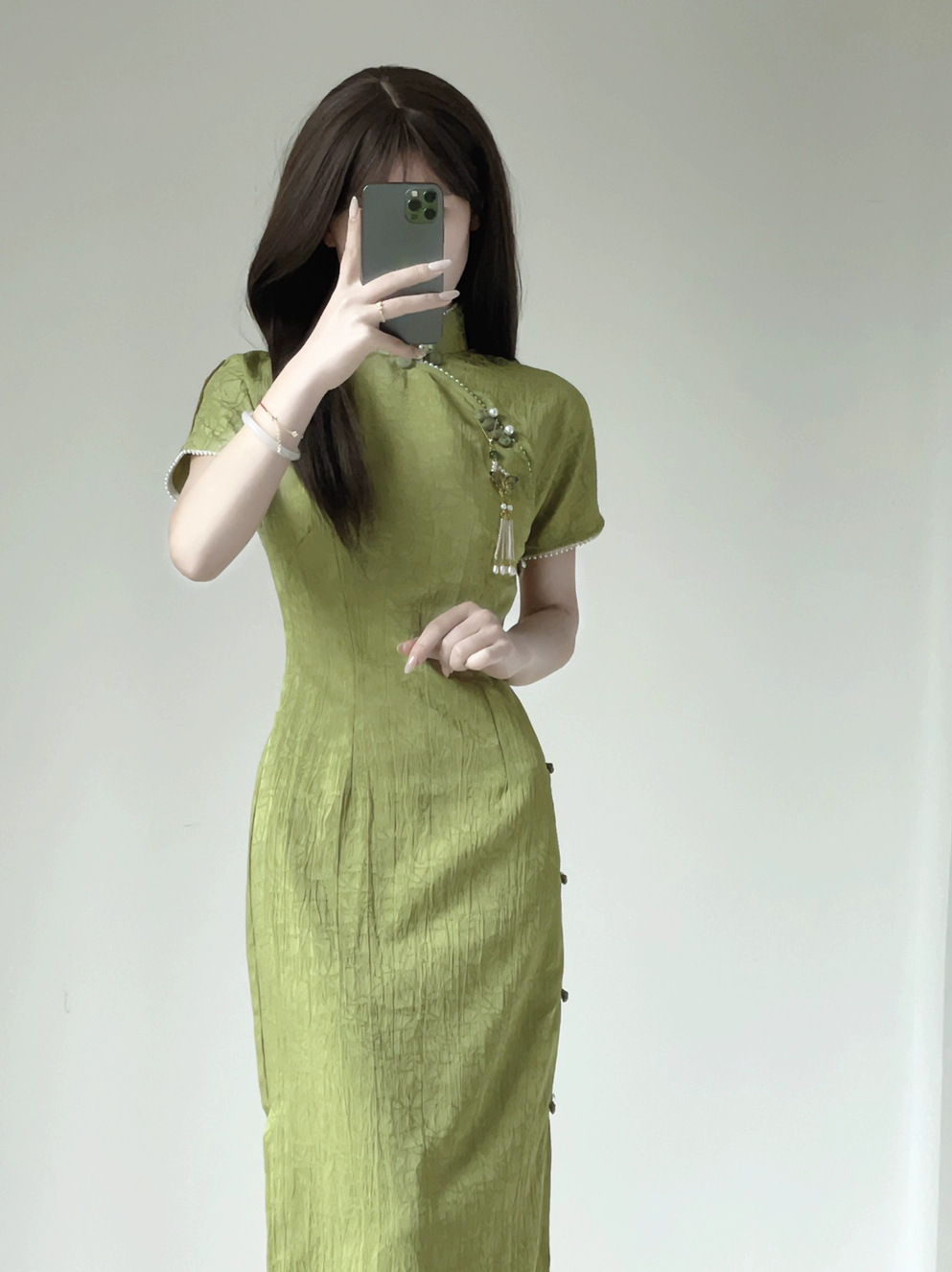 温婉复古民国风素雅旗袍2024年夏季新款年轻款少女改良连衣裙长款