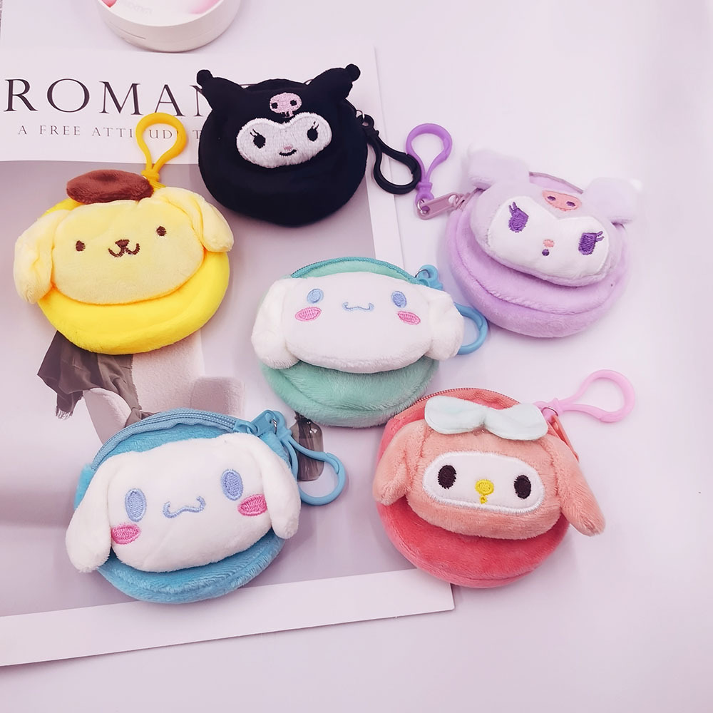 日系三丽鸥毛绒零钱包ins风可爱小钱包耳机包钥匙包女士包包挂件