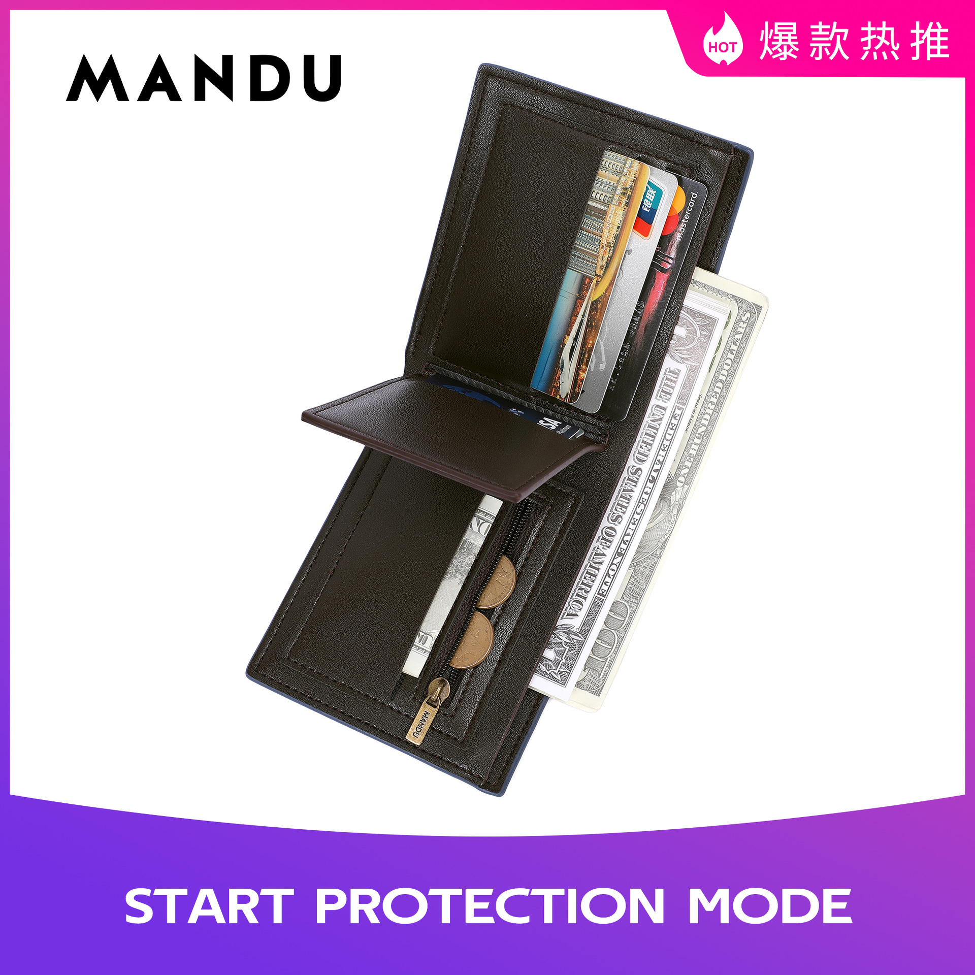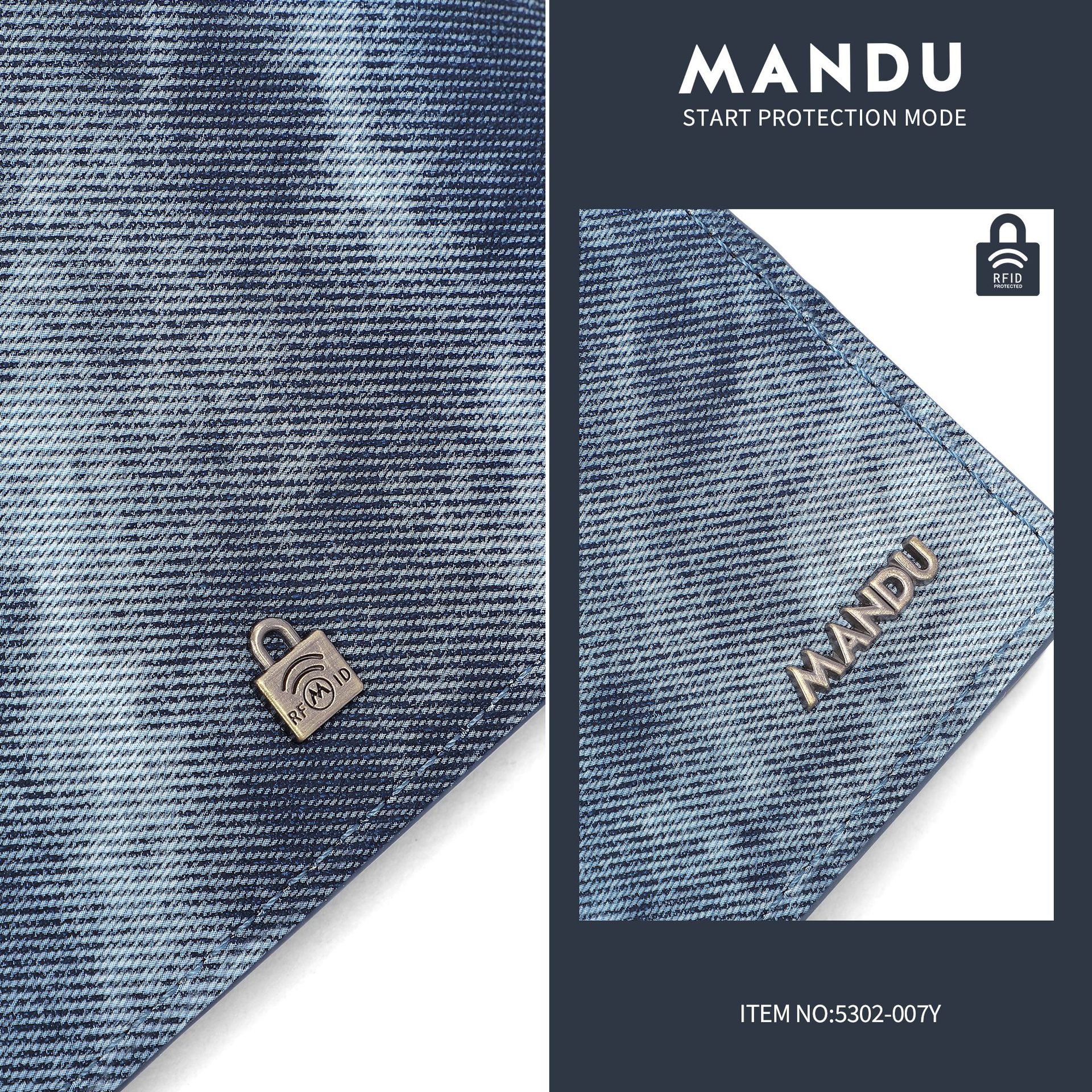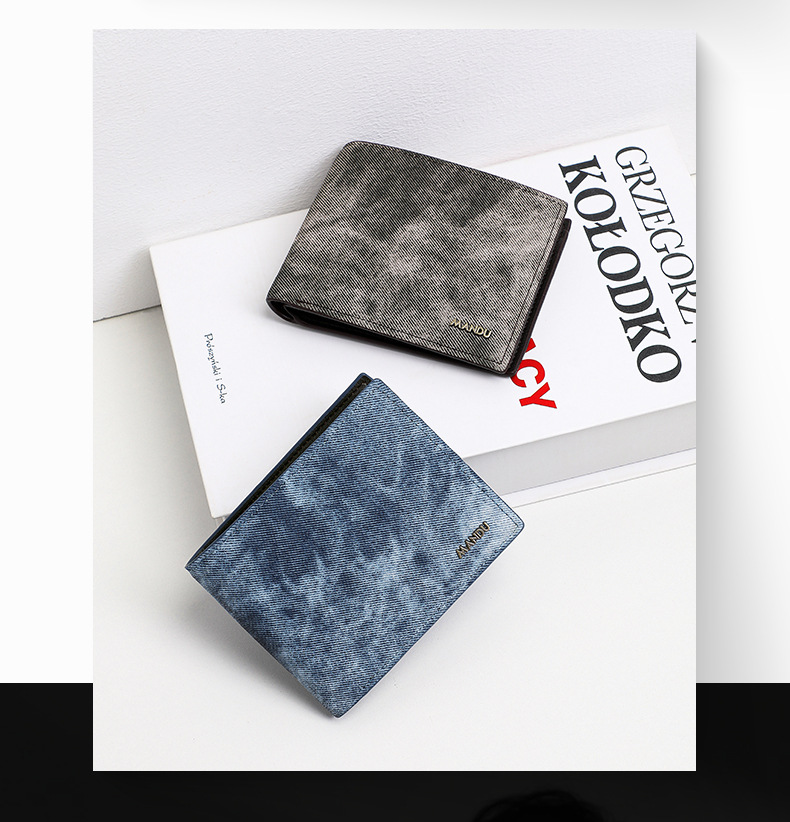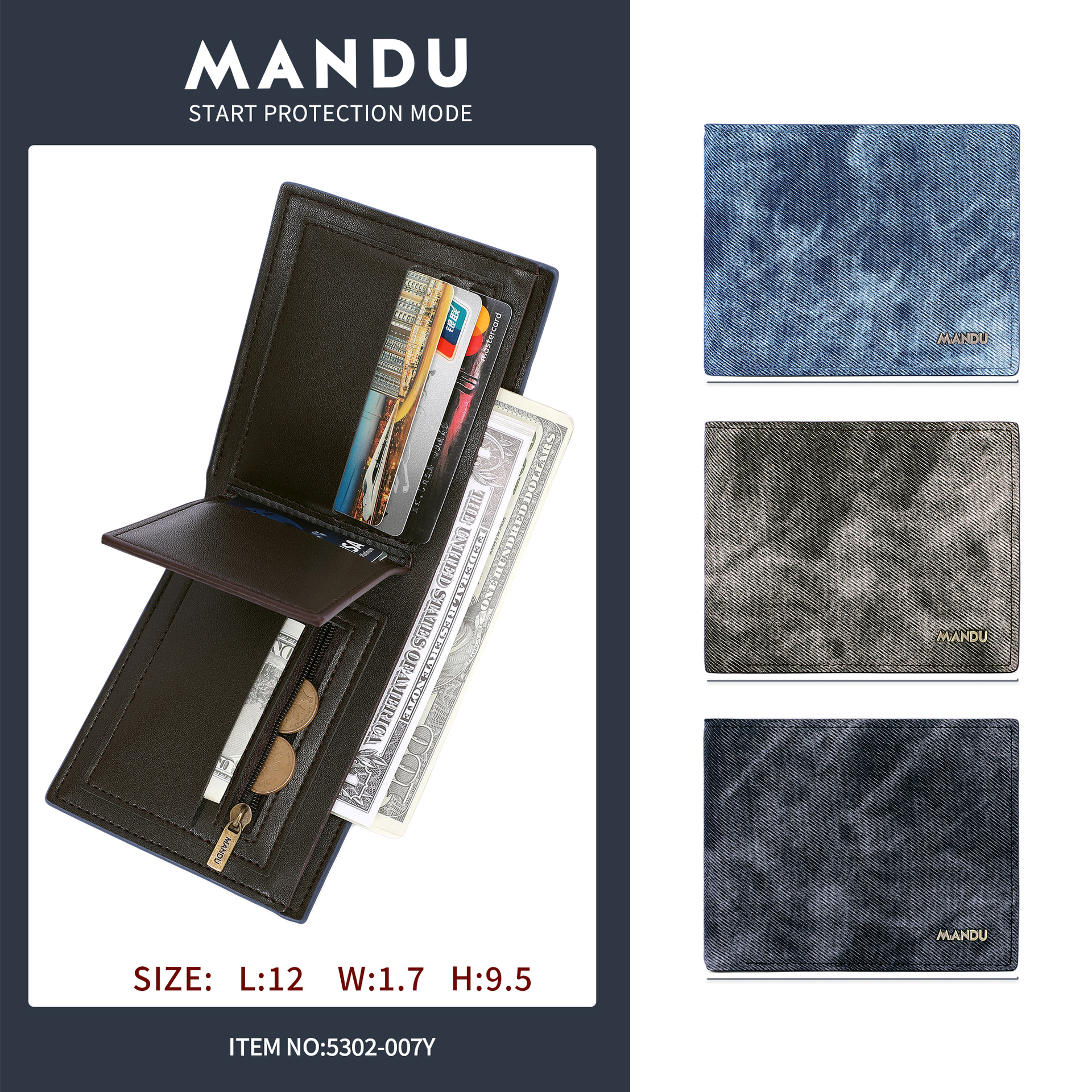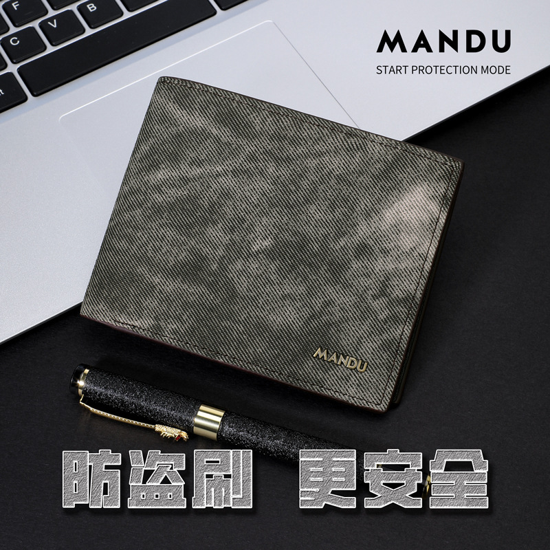 MANDU漫度跨境热销RFID男士钱包时尚牛仔布零钱包大容量PU卡包男
