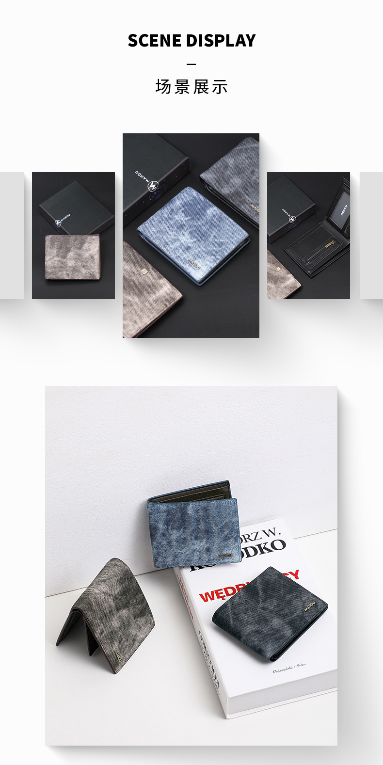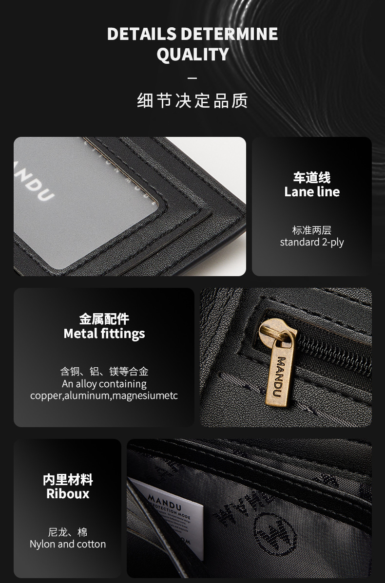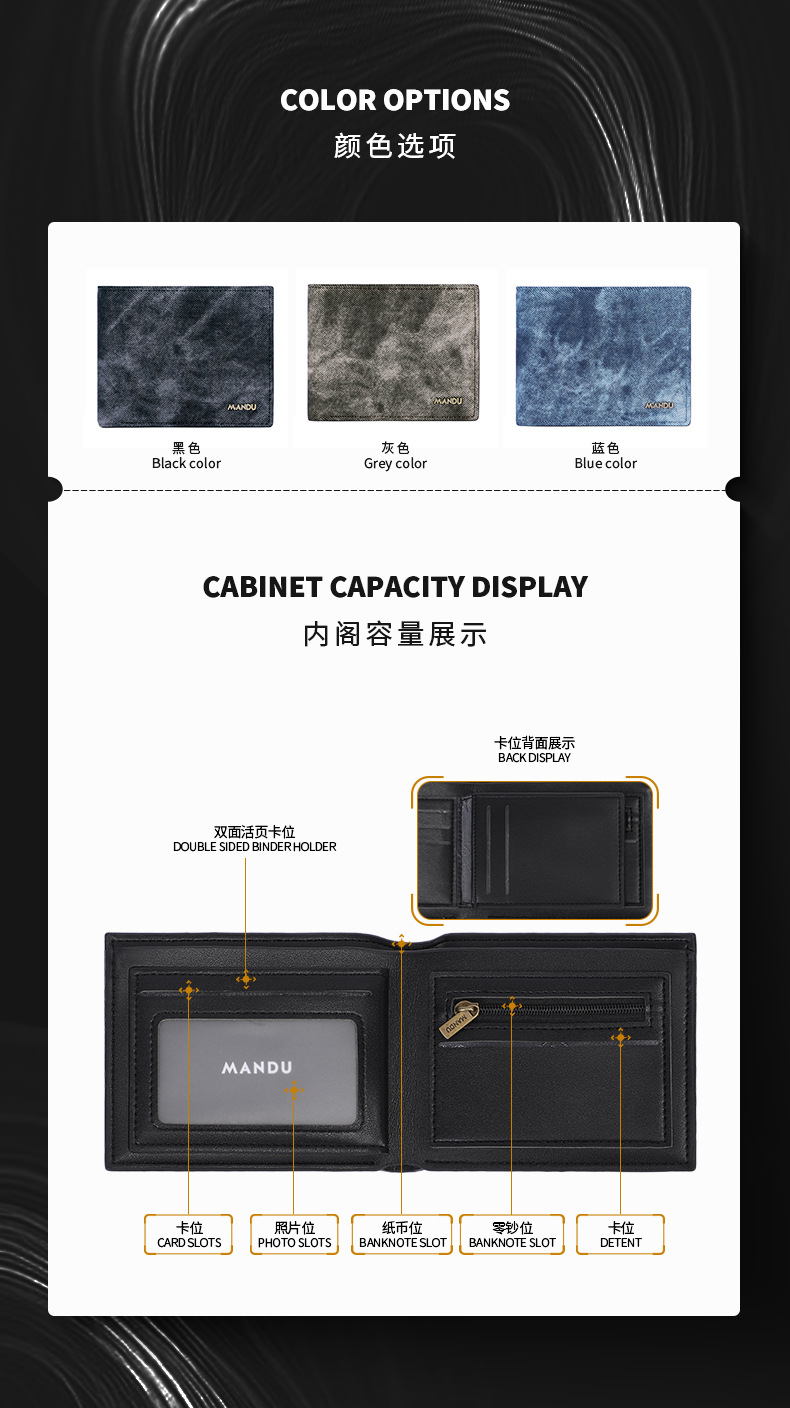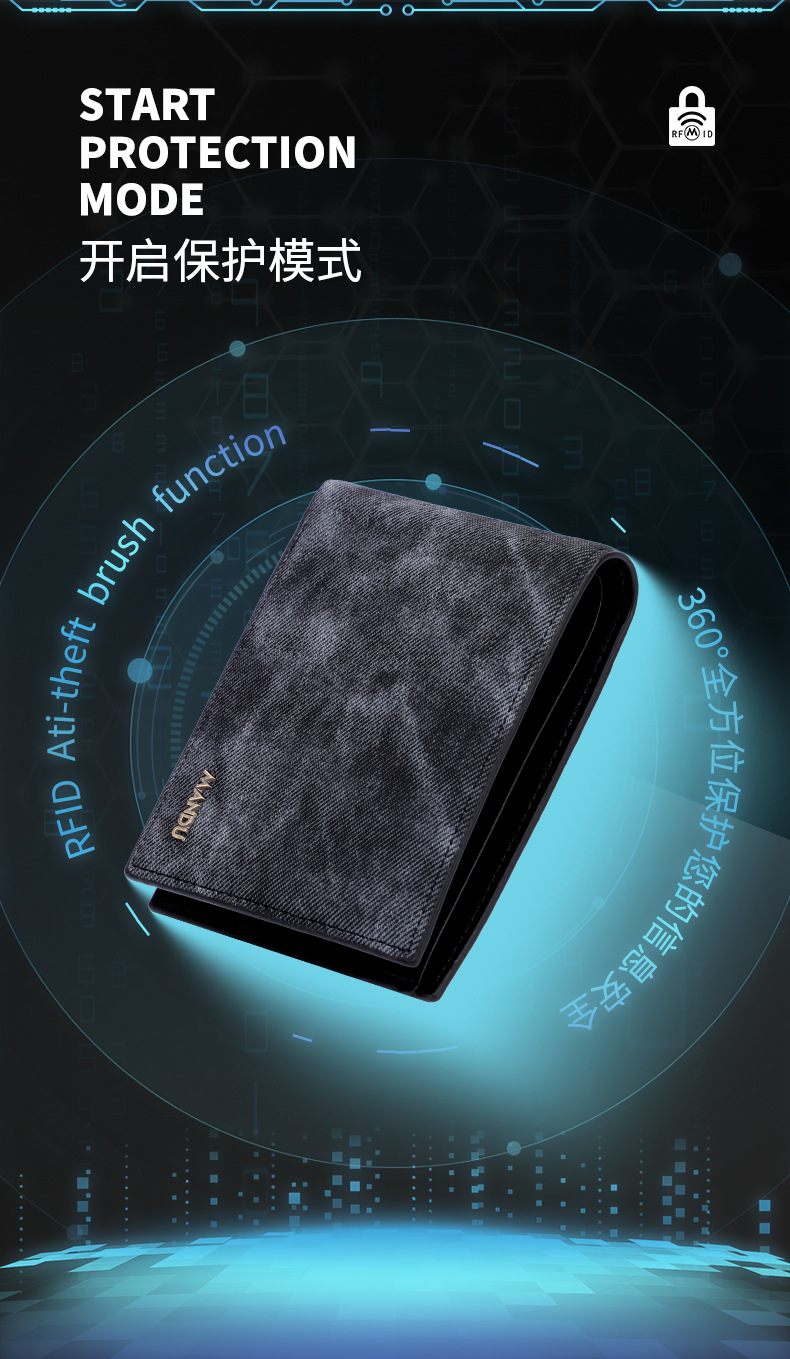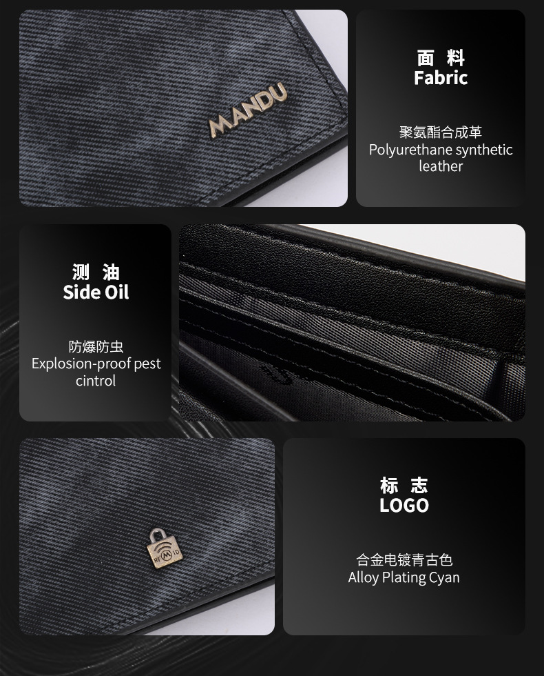 MANDU漫度跨境热销RFID男士钱包时尚牛仔布零钱包大容量PU卡包男