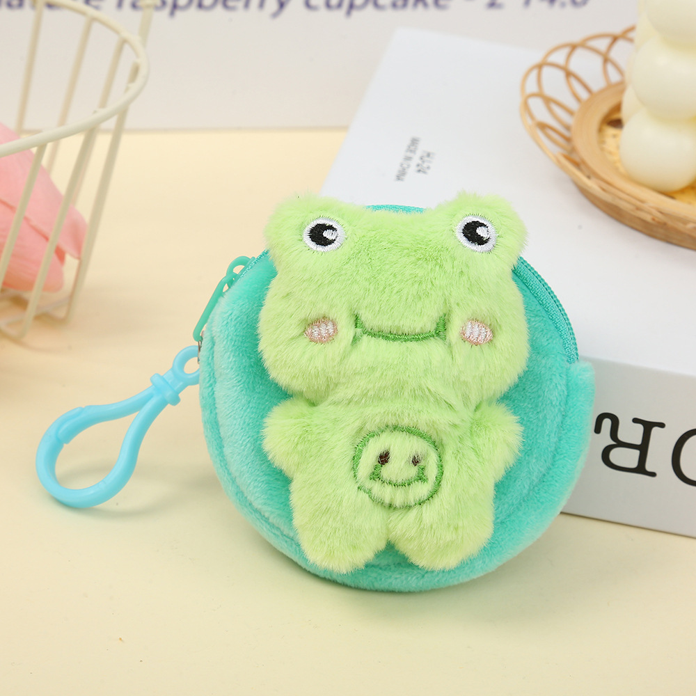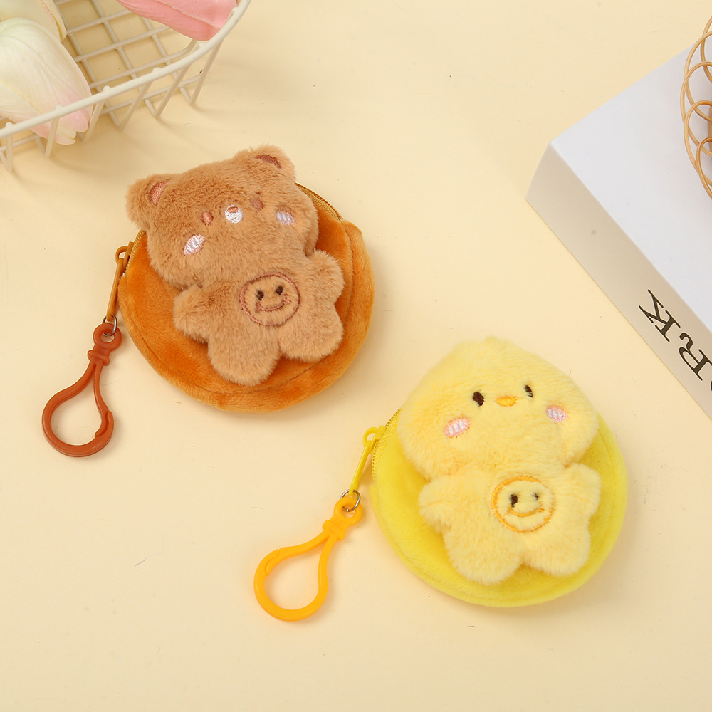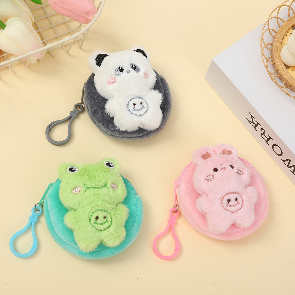 卡通笑脸动物零钱包圆形硬币包耳机包学生书包挂件抓娃娃机小礼品